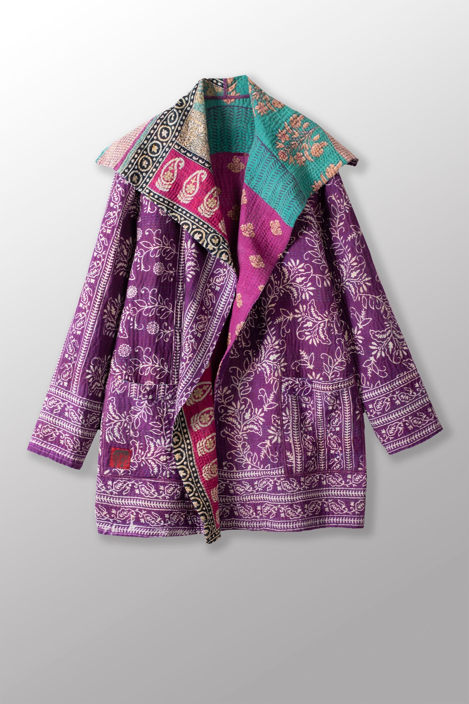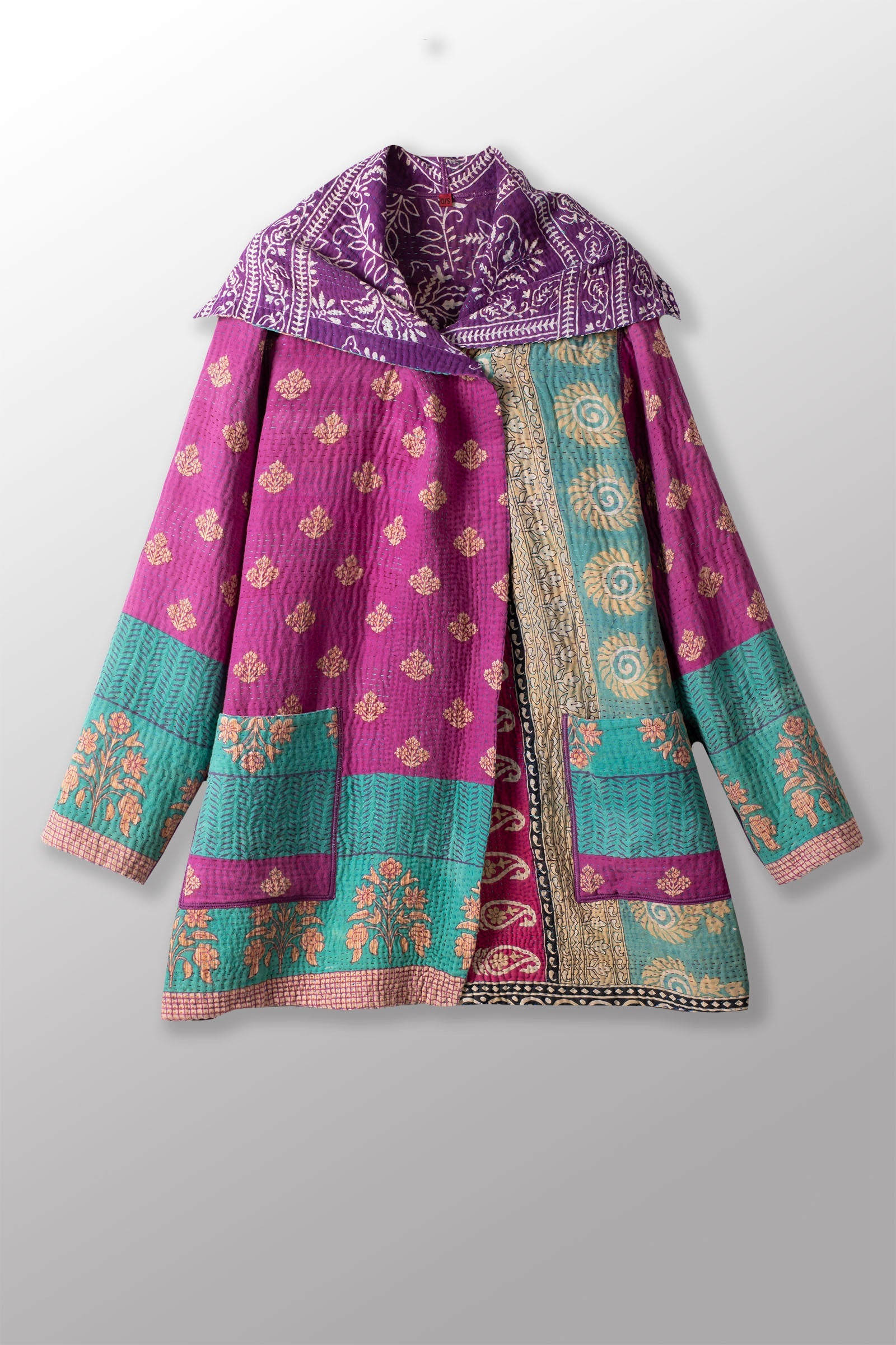 4 Layer Vintage Saris with Hand Stitches on Entire Garment - Reversible