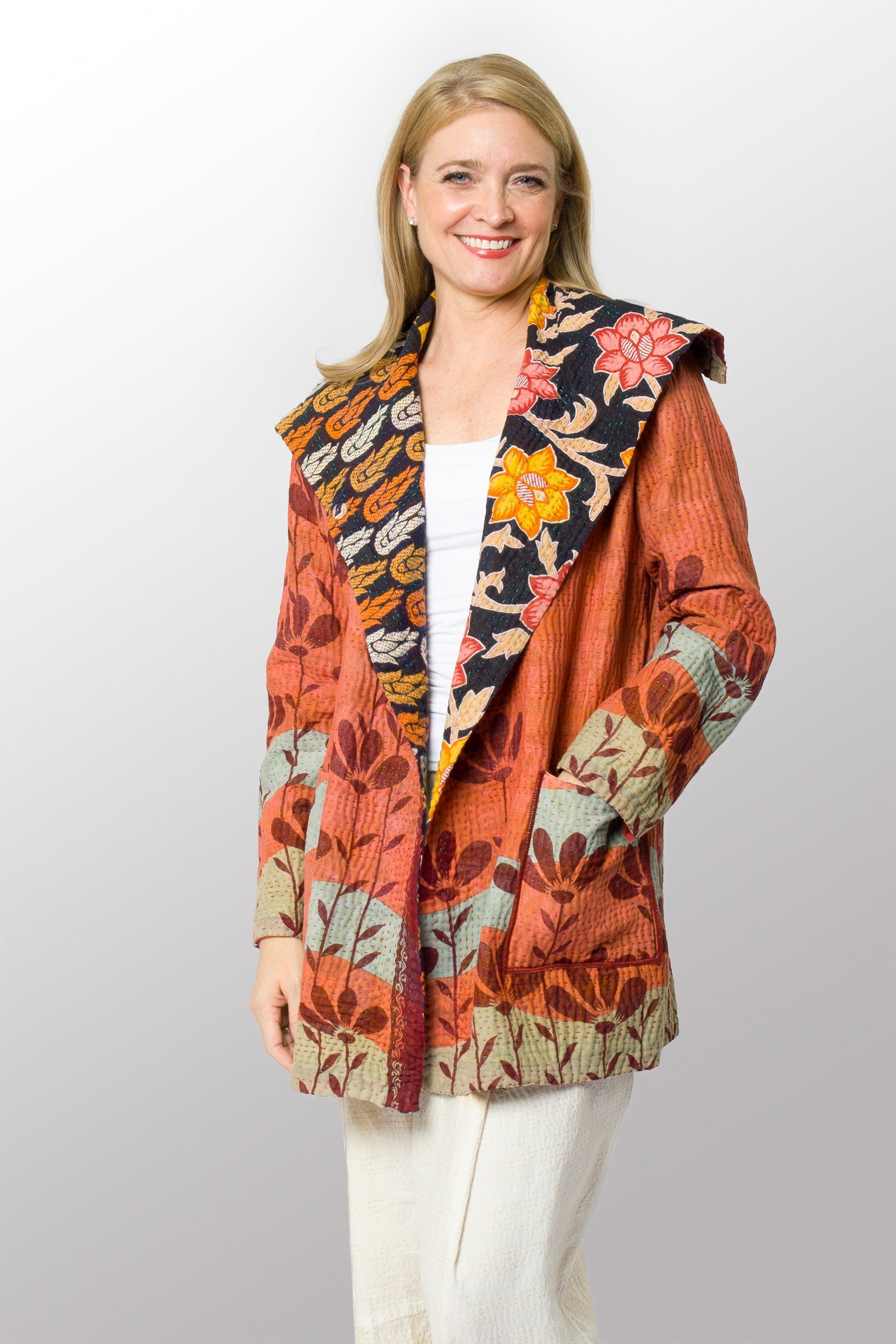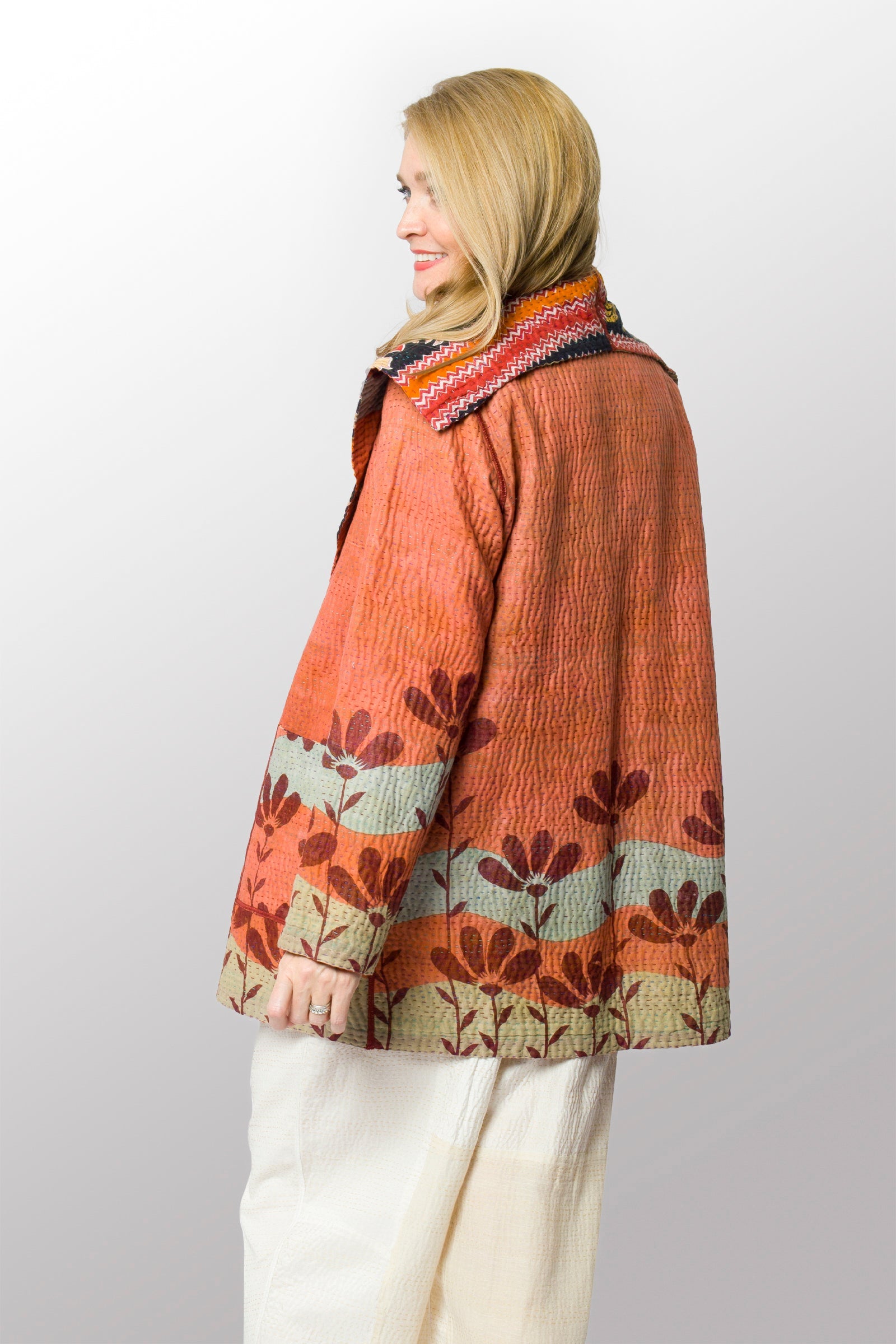 4 Layer Vintage Saris with Hand Stitches on Entire Garment - Reversible