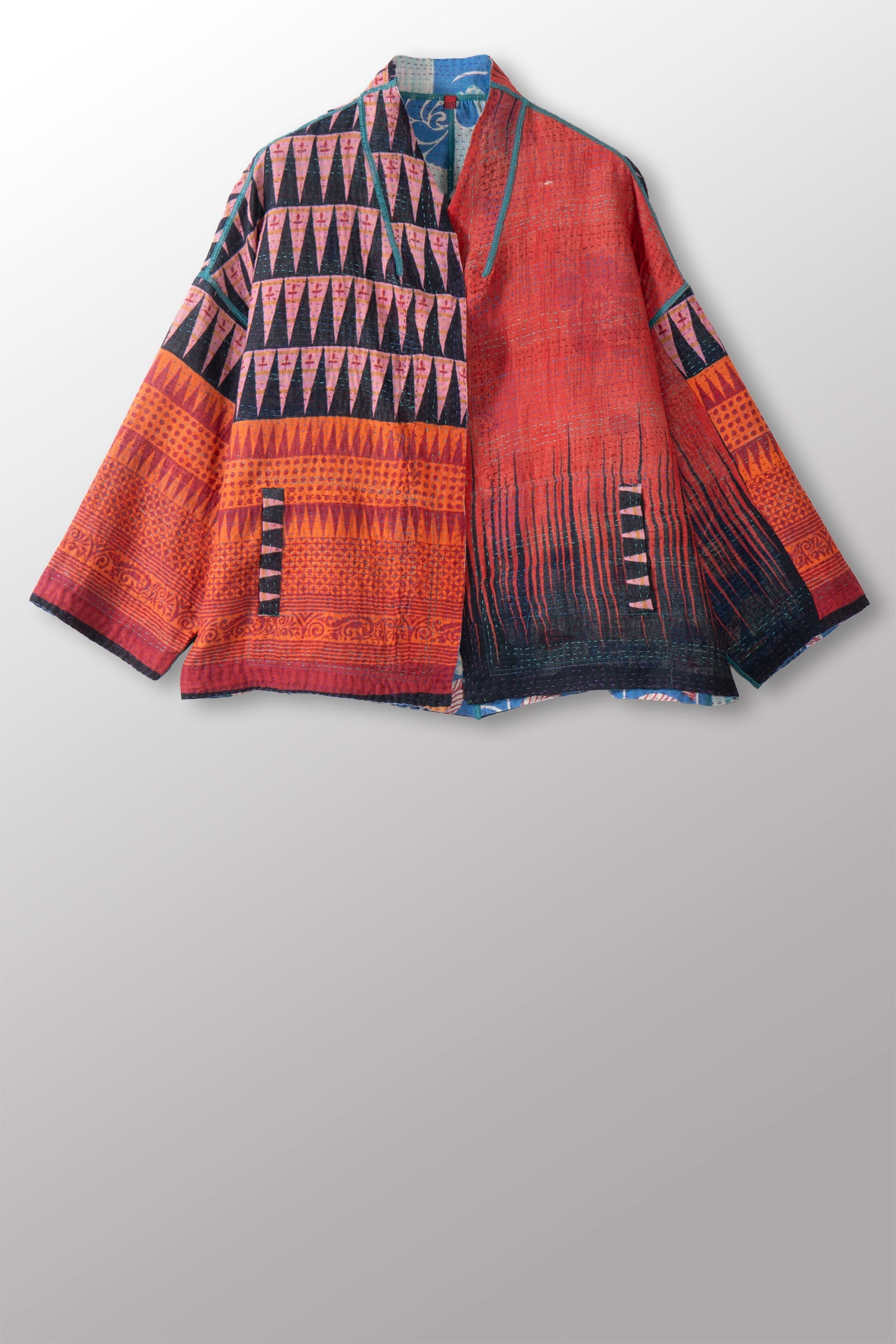 2 Layer Vintage Saris with Hand Stitches on Entire Garment - Reversible