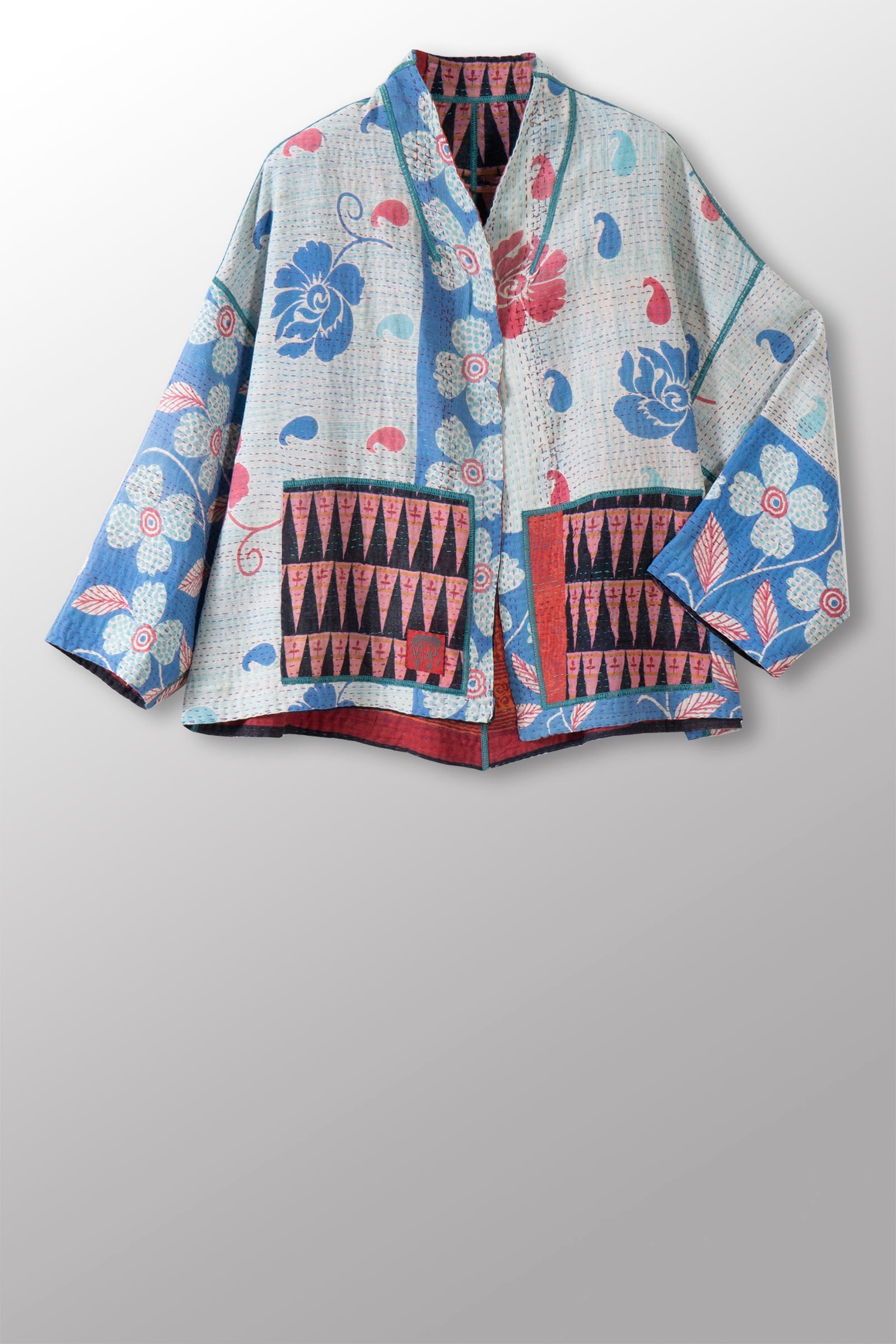 VINTAGE COTTON KANTHA STAND COLLAR CROPPED JKT - cv2034-0072a -