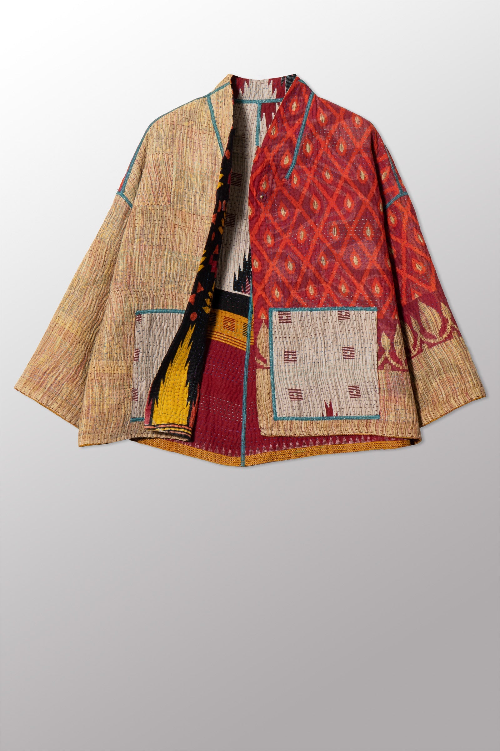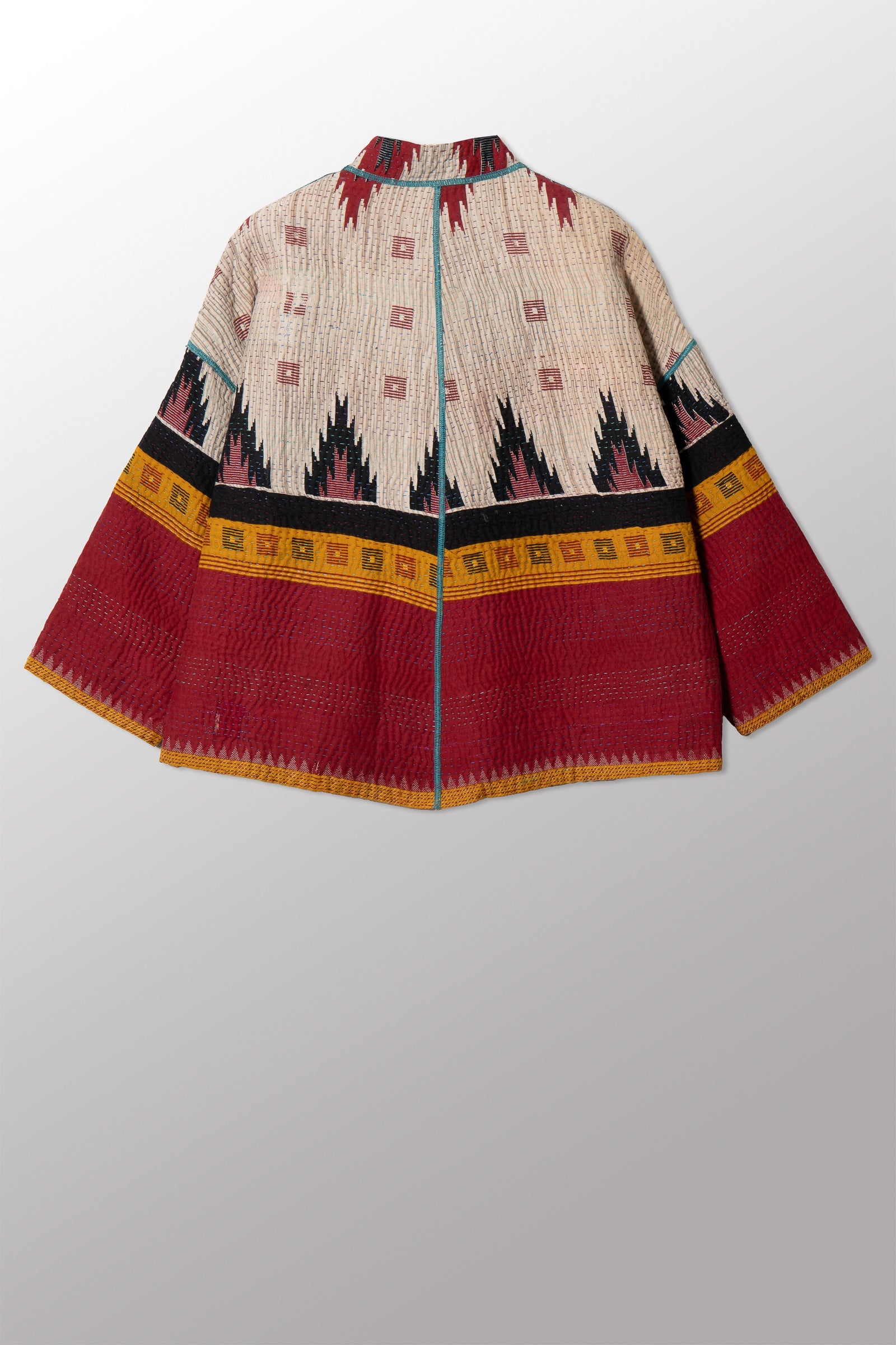 VINTAGE COTTON KANTHA STAND COLLAR CROPPED JKT - cv4034-0154a -