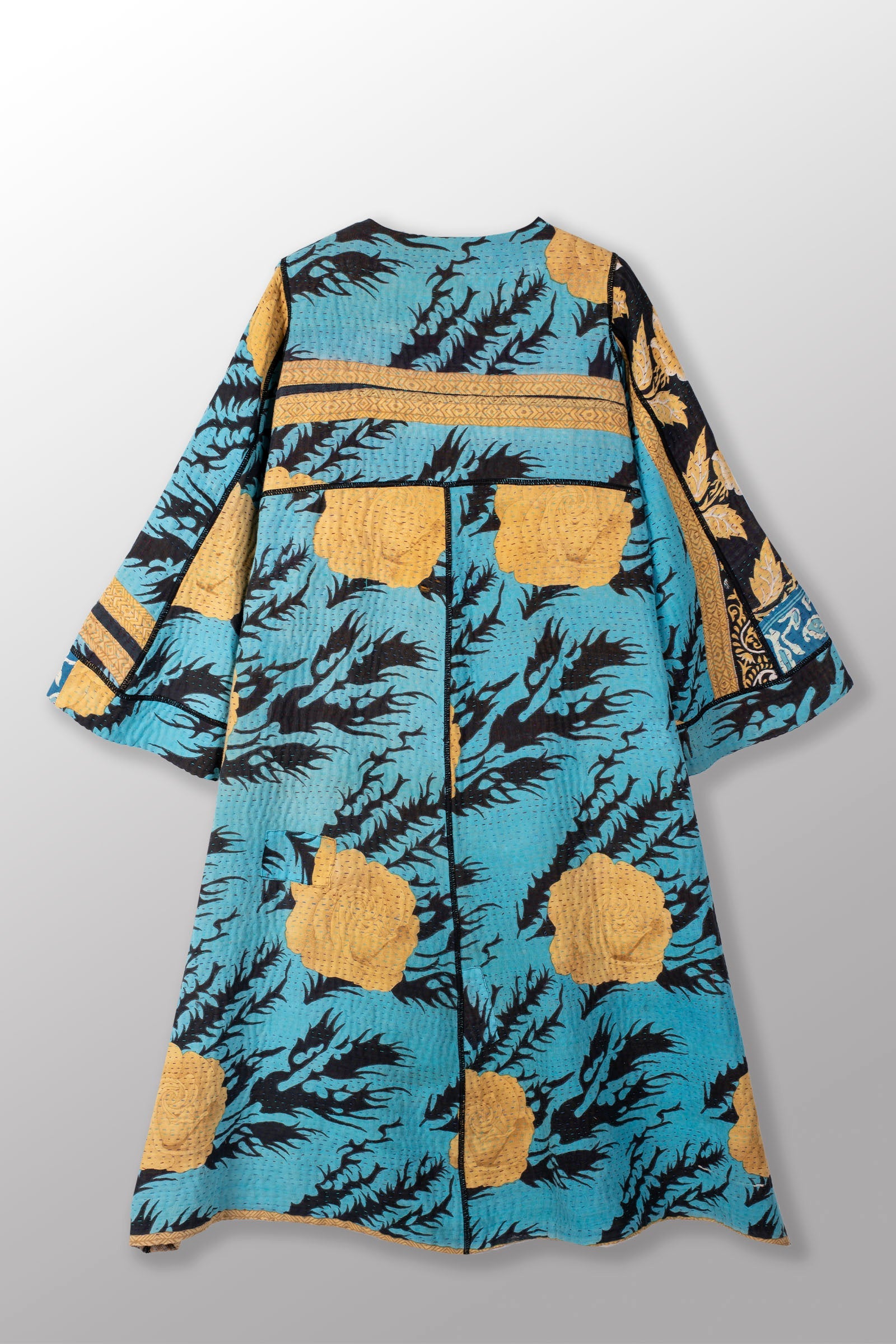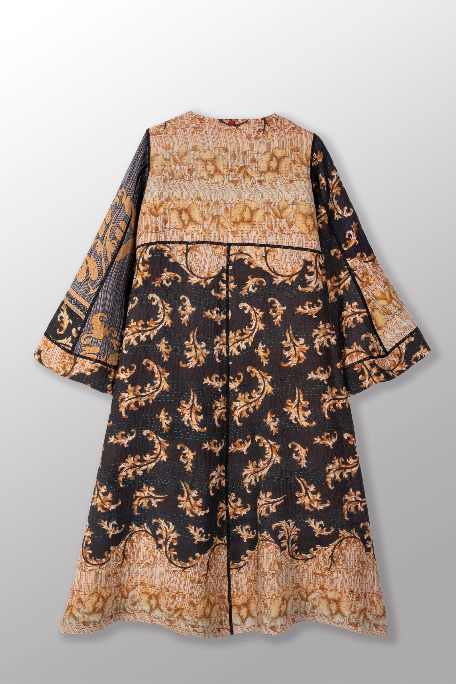 VINTAGE COTTON KANTHA WRAP FLARE COAT - cv4330-0018a -