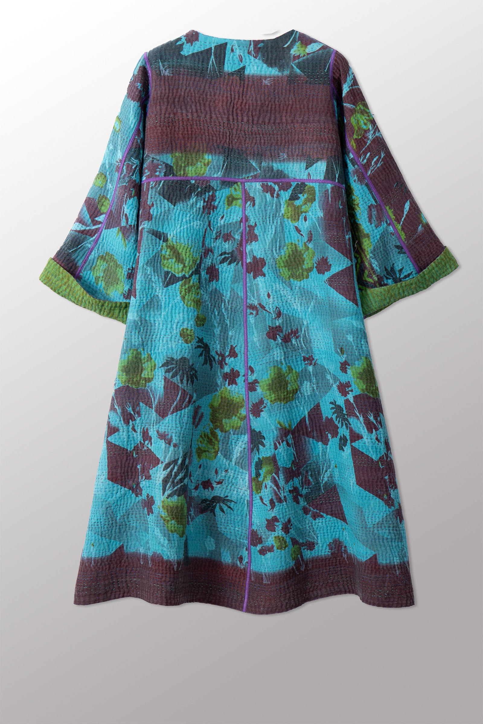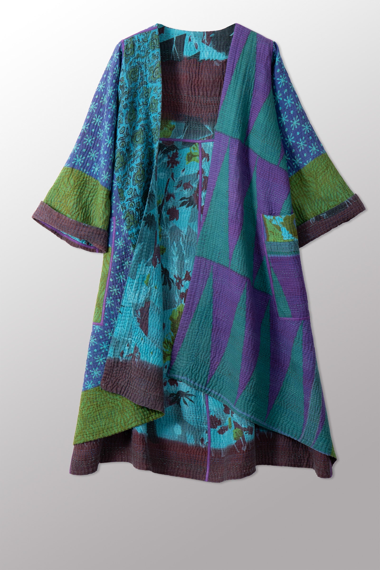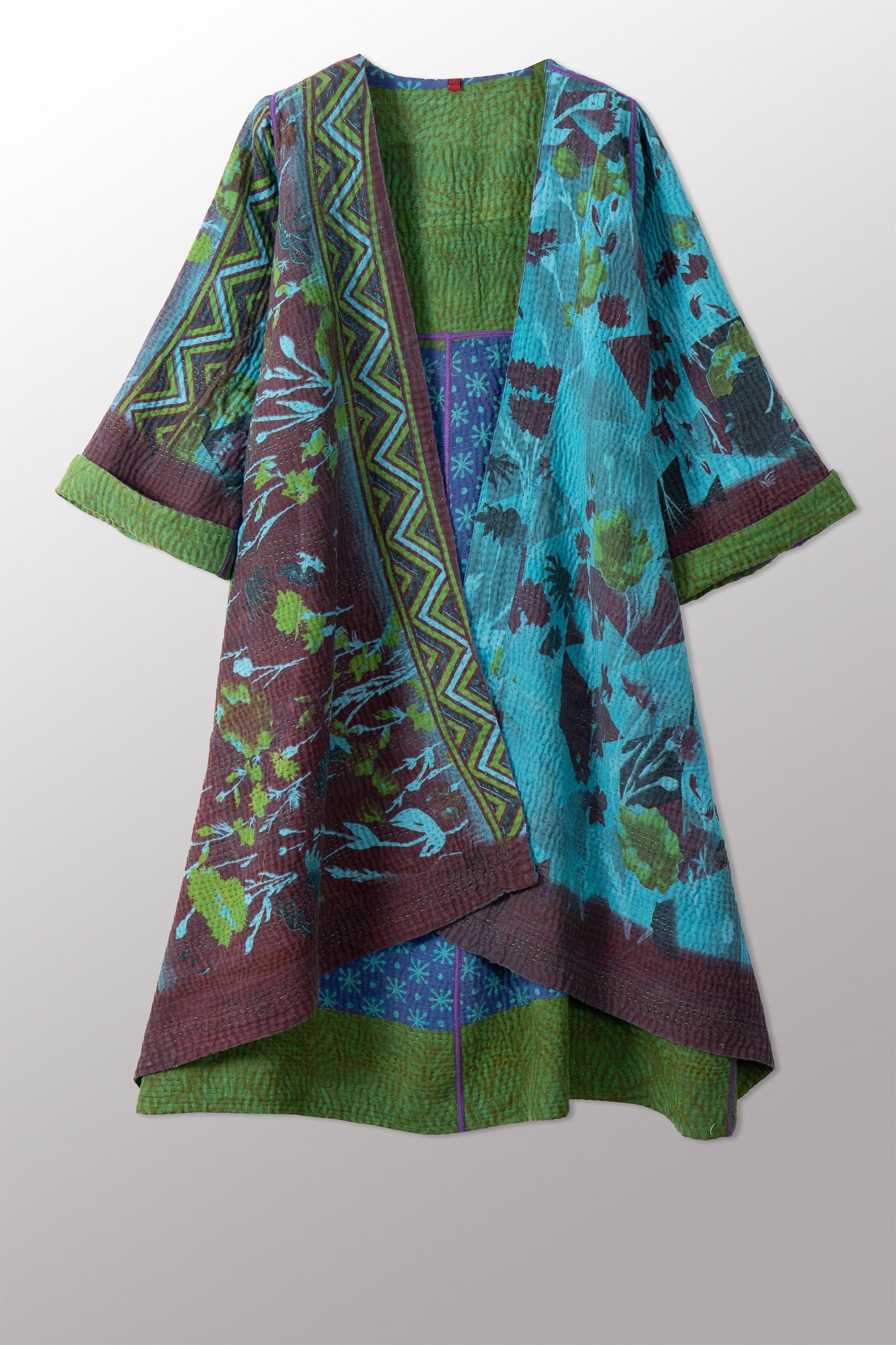 VINTAGE COTTON KANTHA WRAP FLARE COAT - cv4330-0023a -