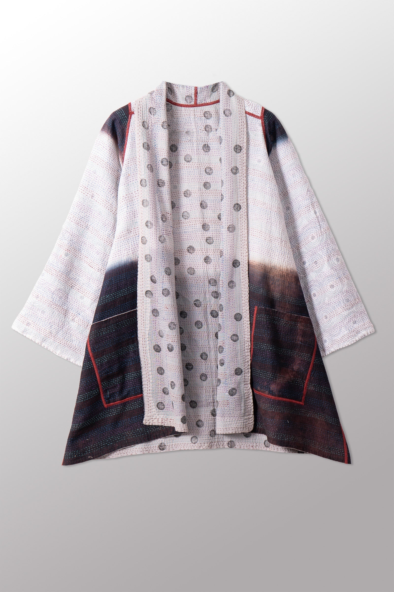 VINTAGE COTTON & NEW VOILE KANTHA A-LINE JKT - cn2003-0004a -