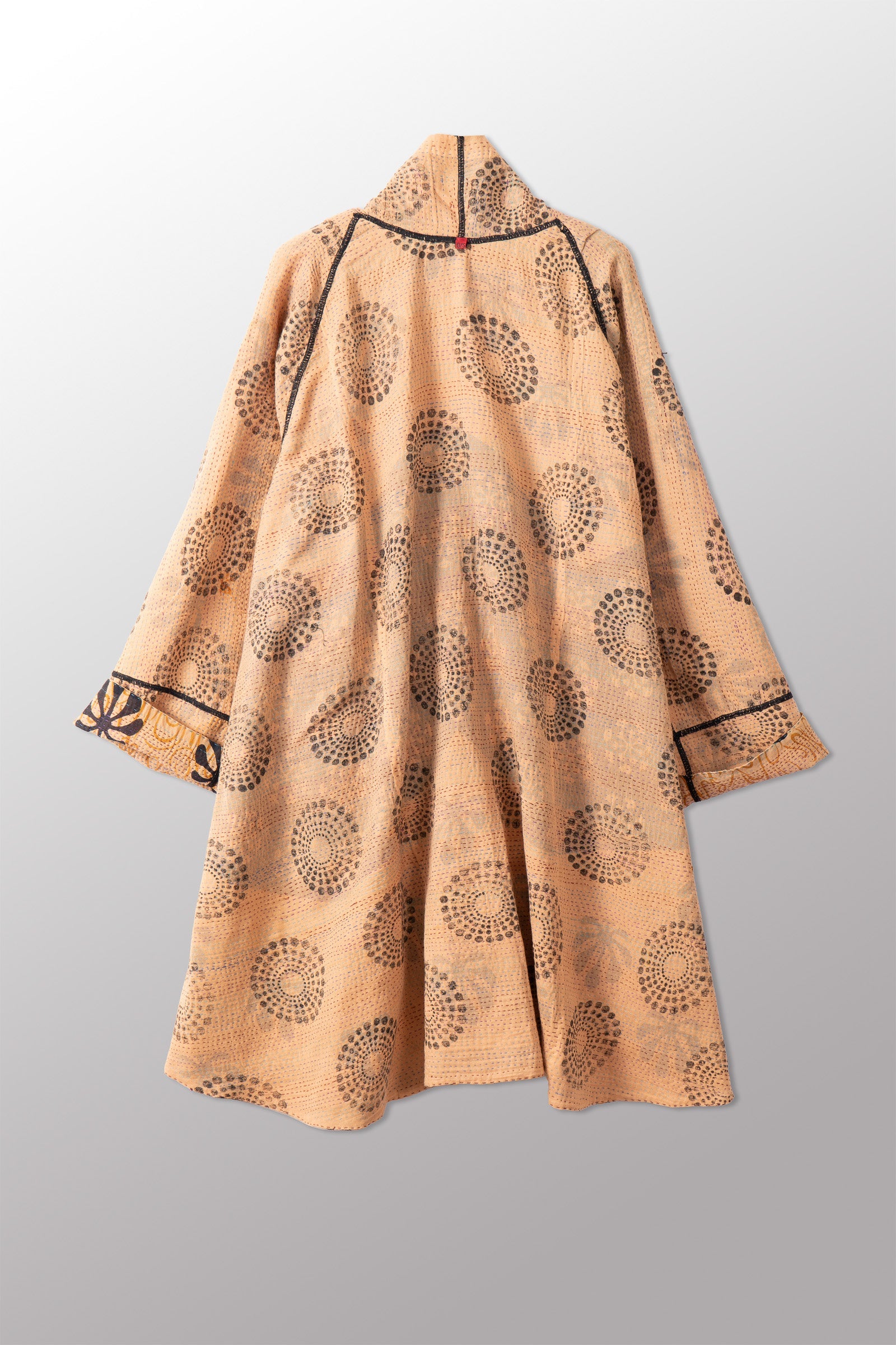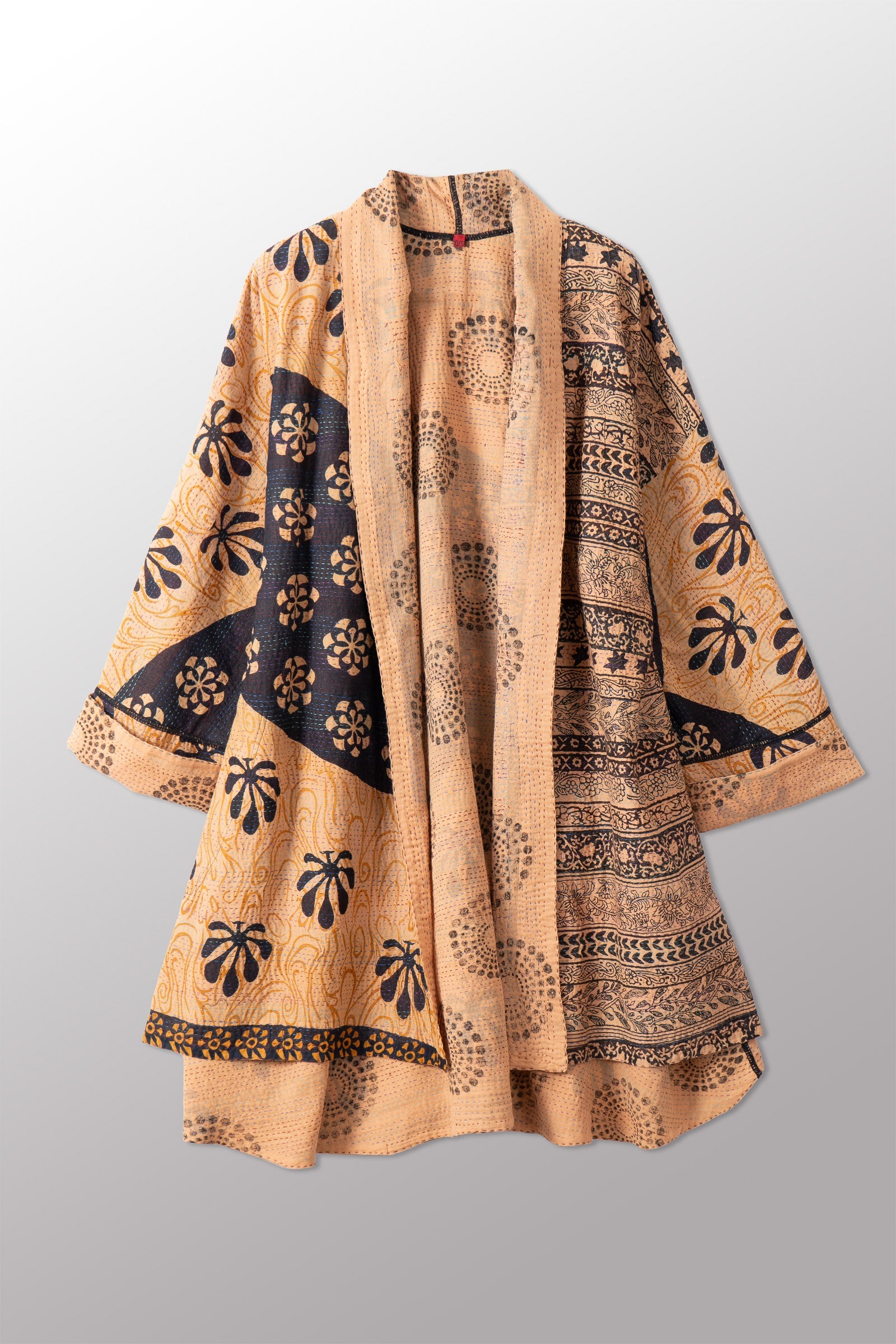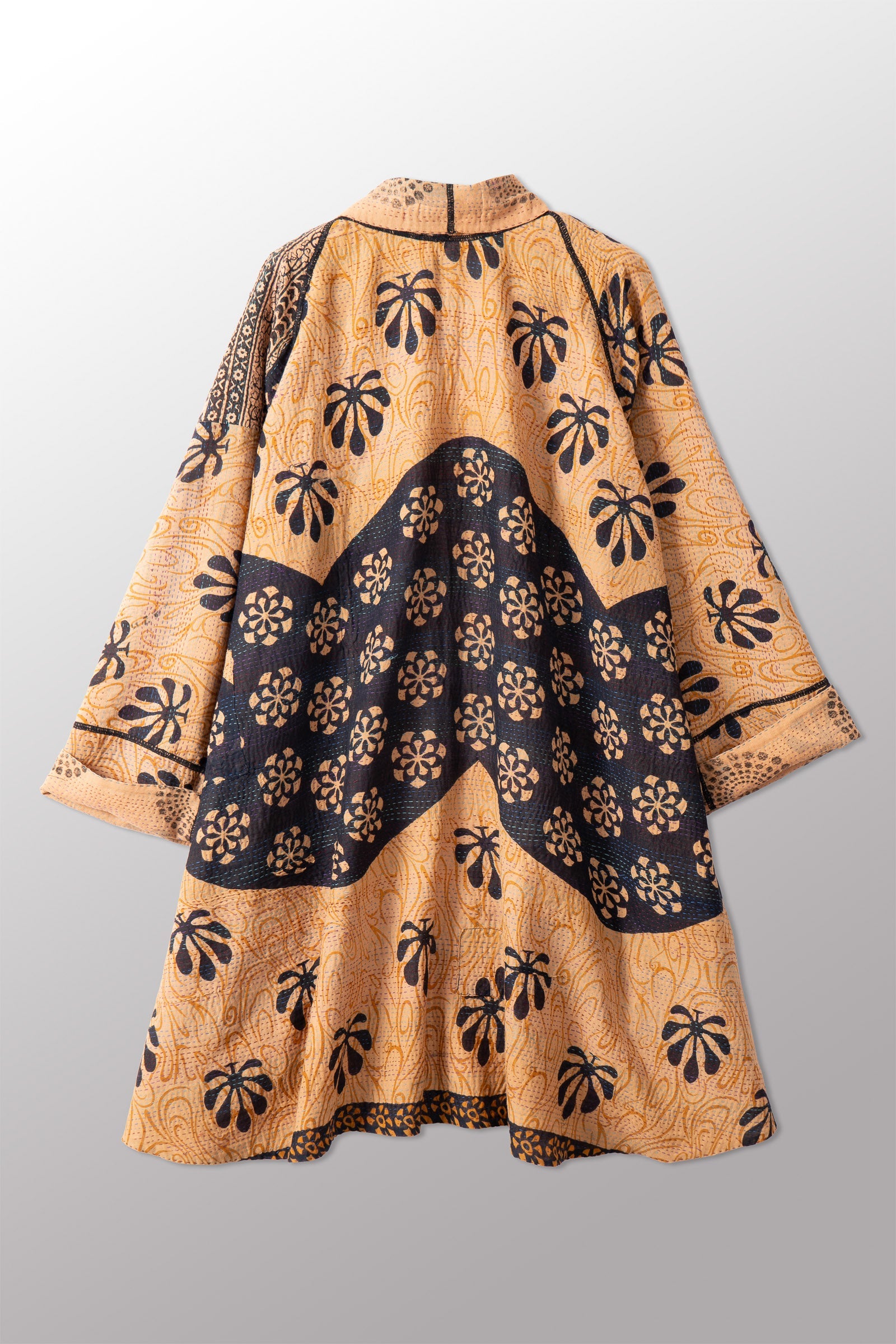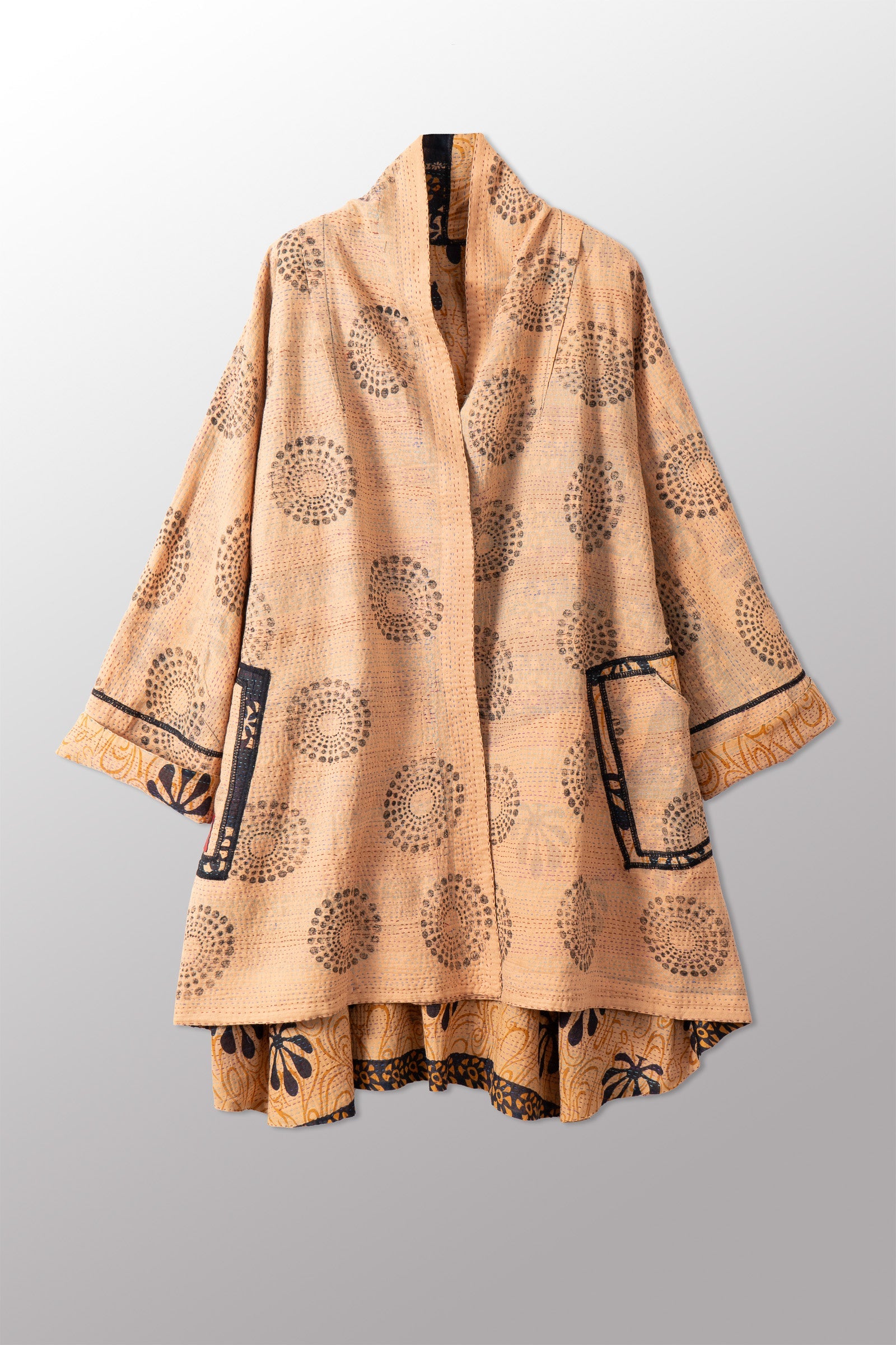 VINTAGE COTTON & NEW VOILE KANTHA KIMONO LONG JACKET - cn2005-0001a -