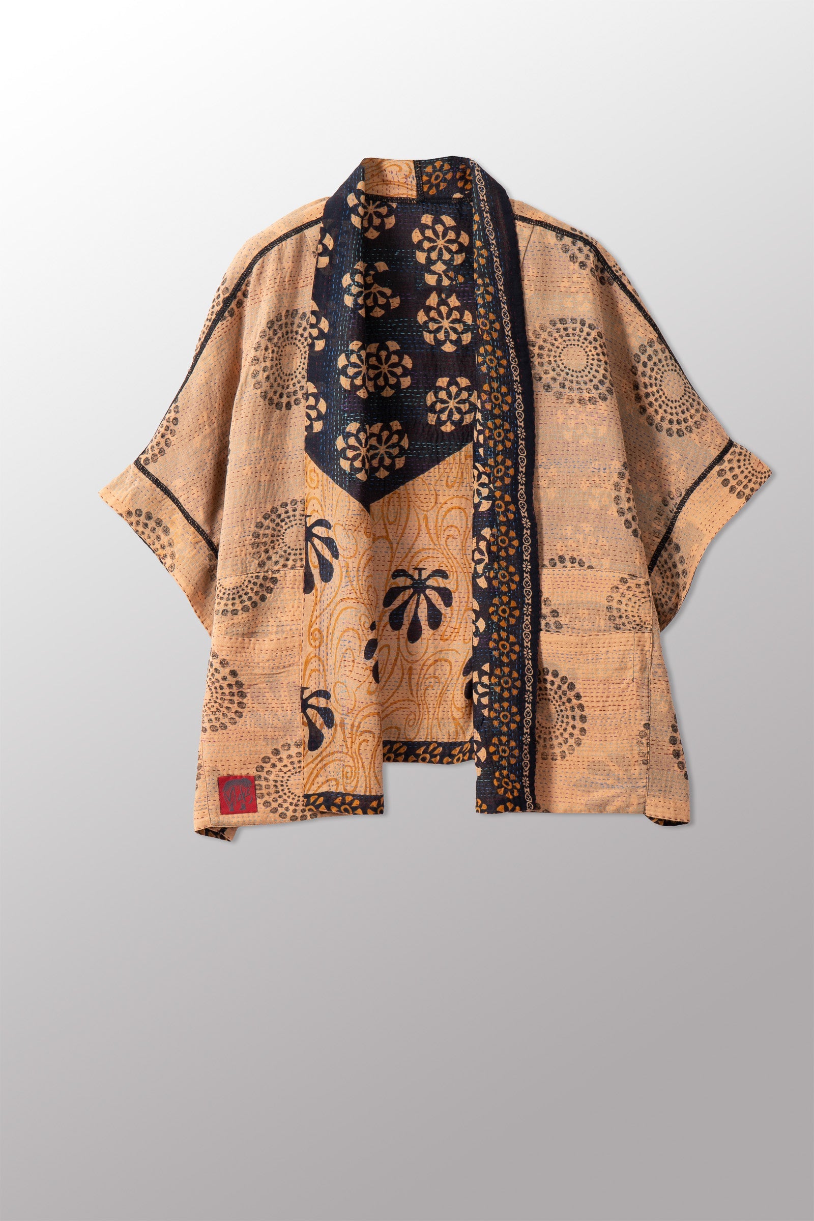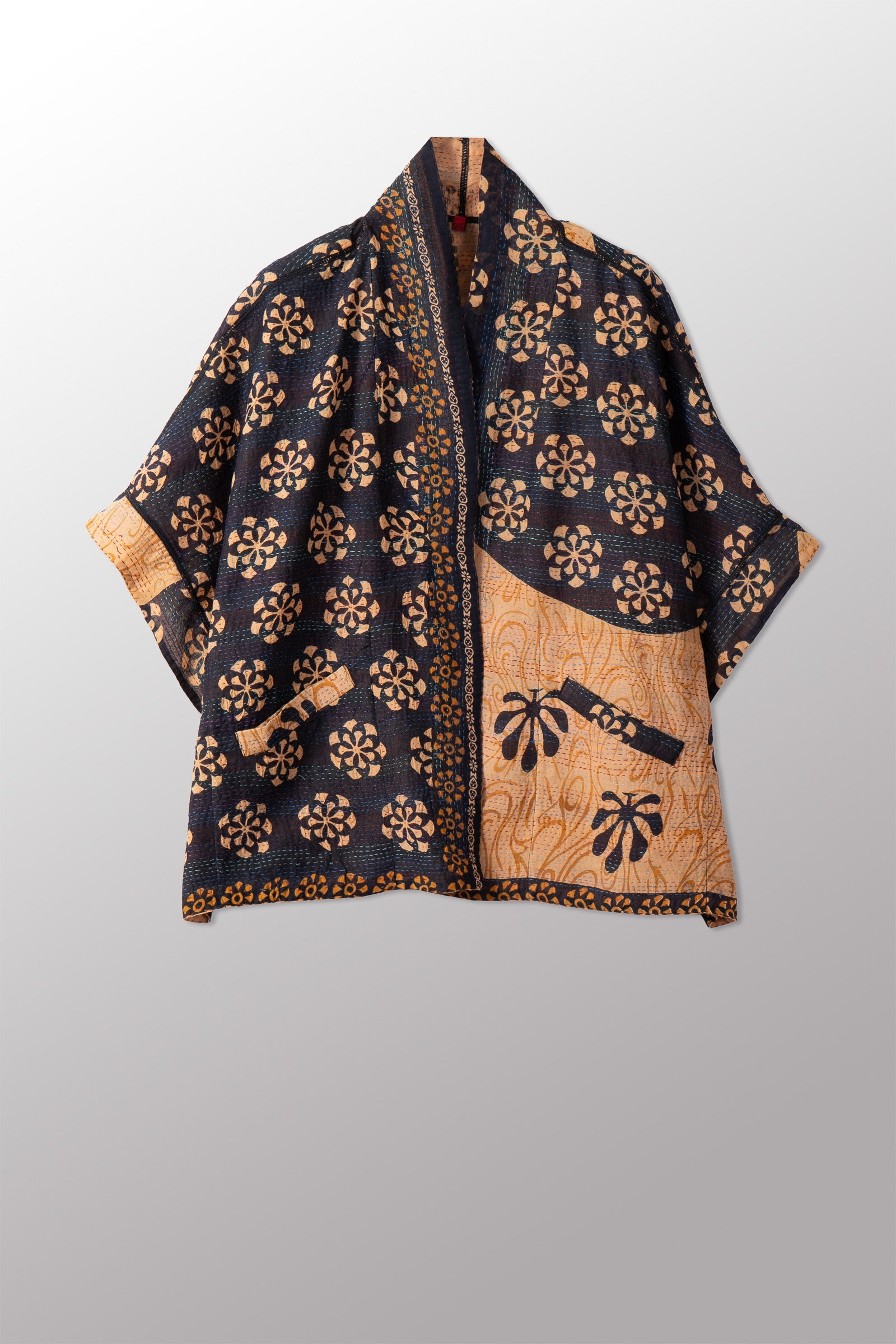 VINTAGE COTTON & NEW VOILE KANTHA MINI PONCHO - cn2060-0001a -