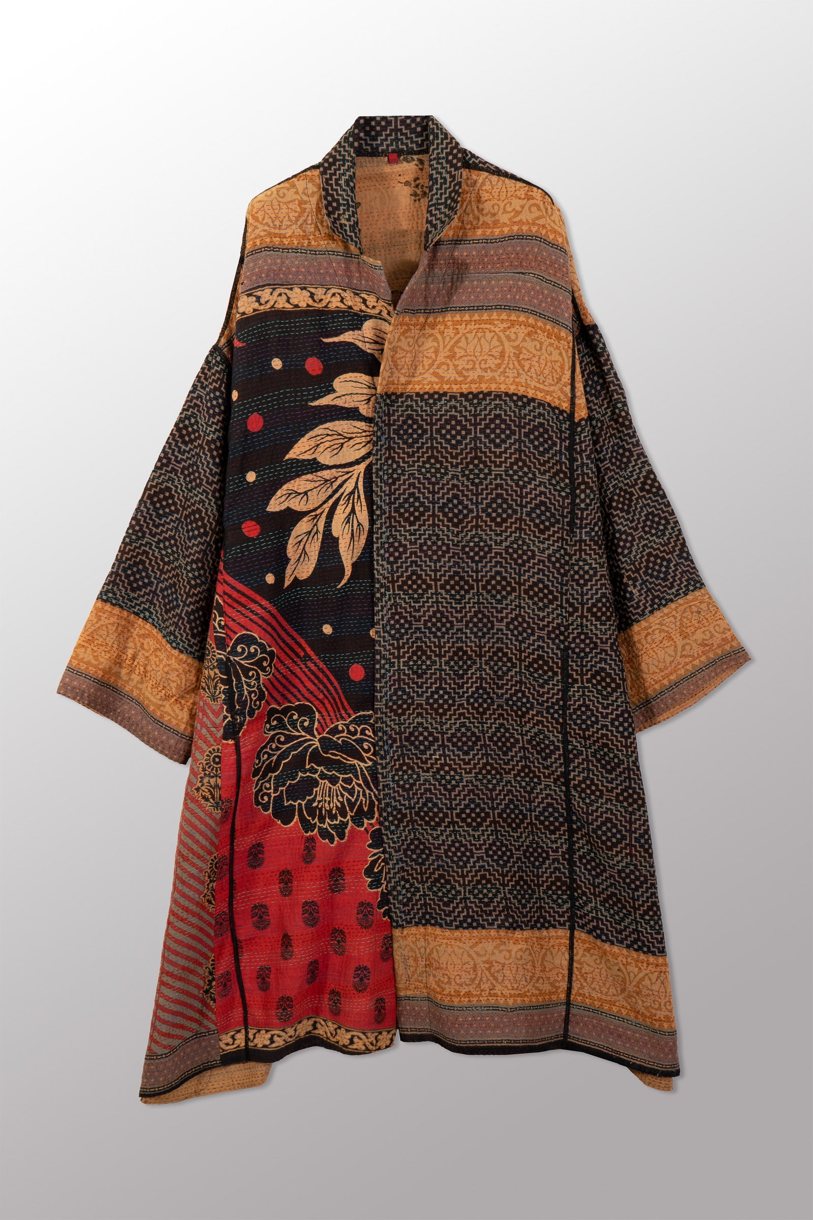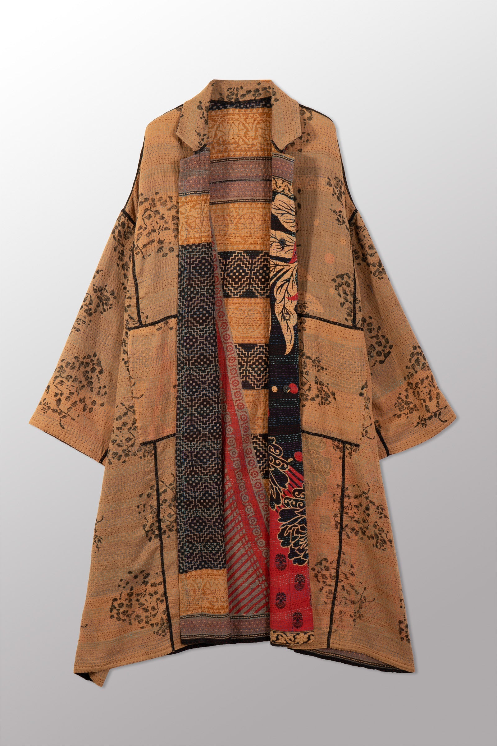 VINTAGE COTTON & NEW VOILE KANTHA NEW OVERSIZED COAT - cn2342-0001a -