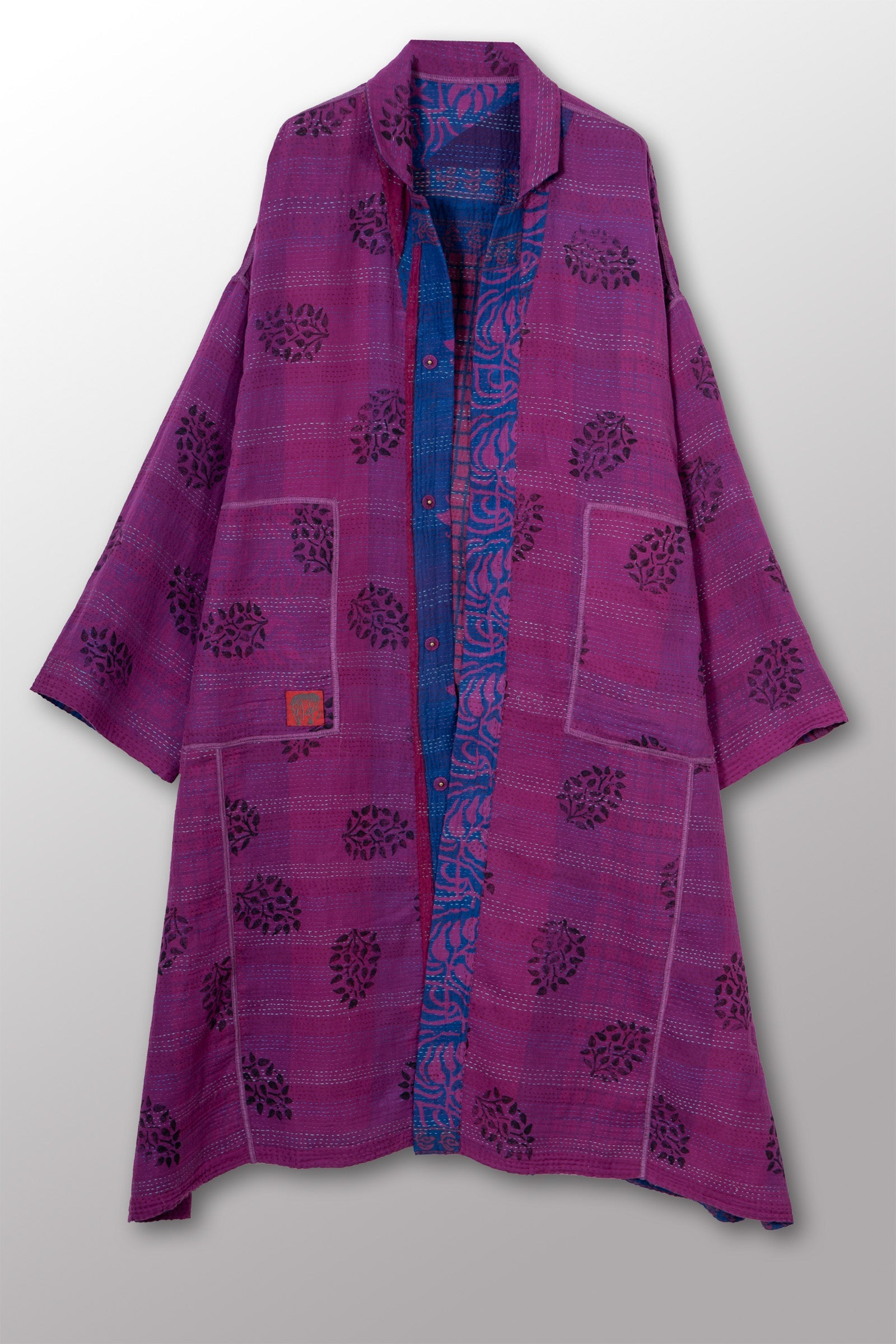 VINTAGE COTTON & NEW VOILE KANTHA NEW OVERSIZED COAT - cn2342-0004a -