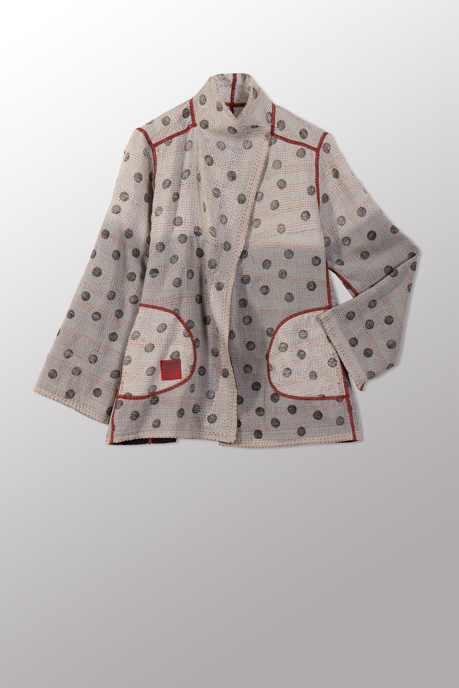 VINTAGE COTTON & NEW VOILE KANTHA SHORT JKT - cn2007-0007m -