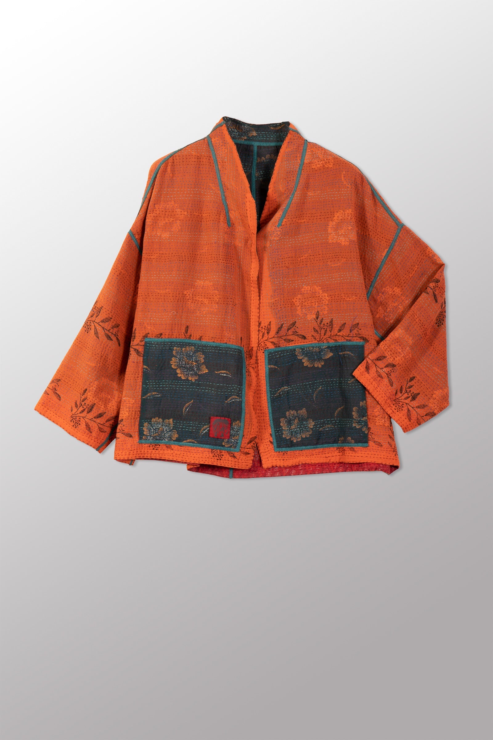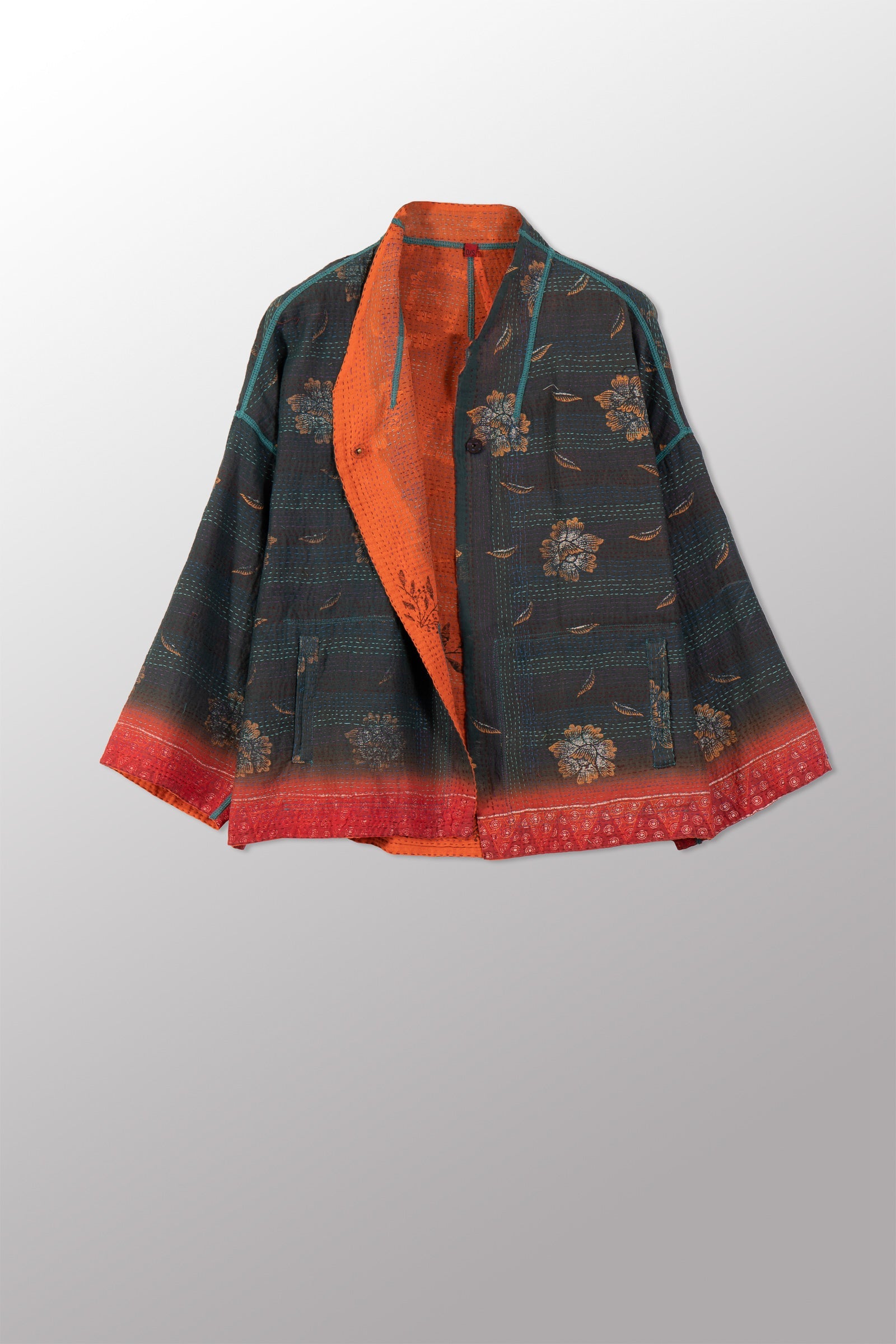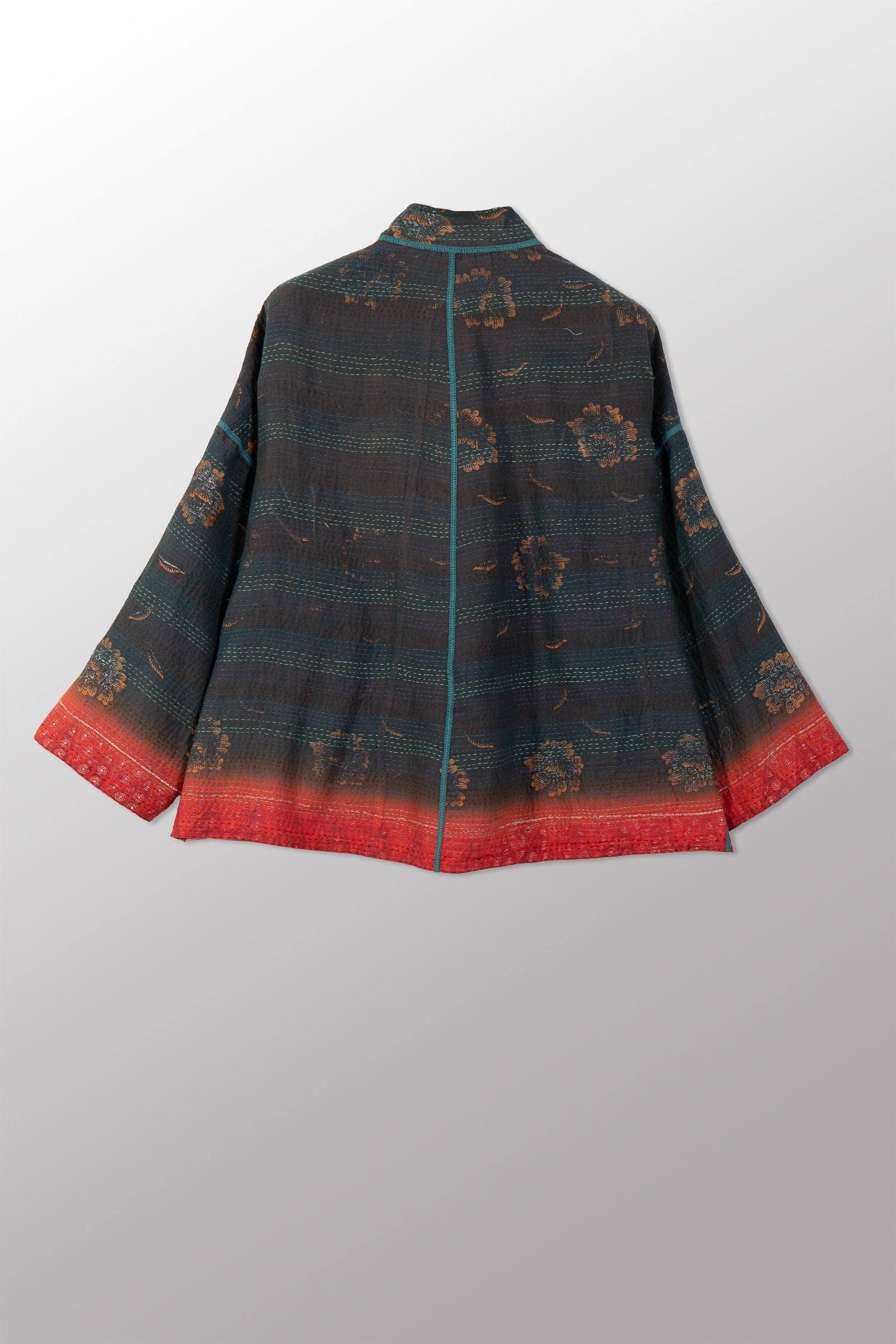 VINTAGE COTTON & NEW VOILE KANTHA STAND COLLAR CROPPED JACKET - cn2034-0001a -