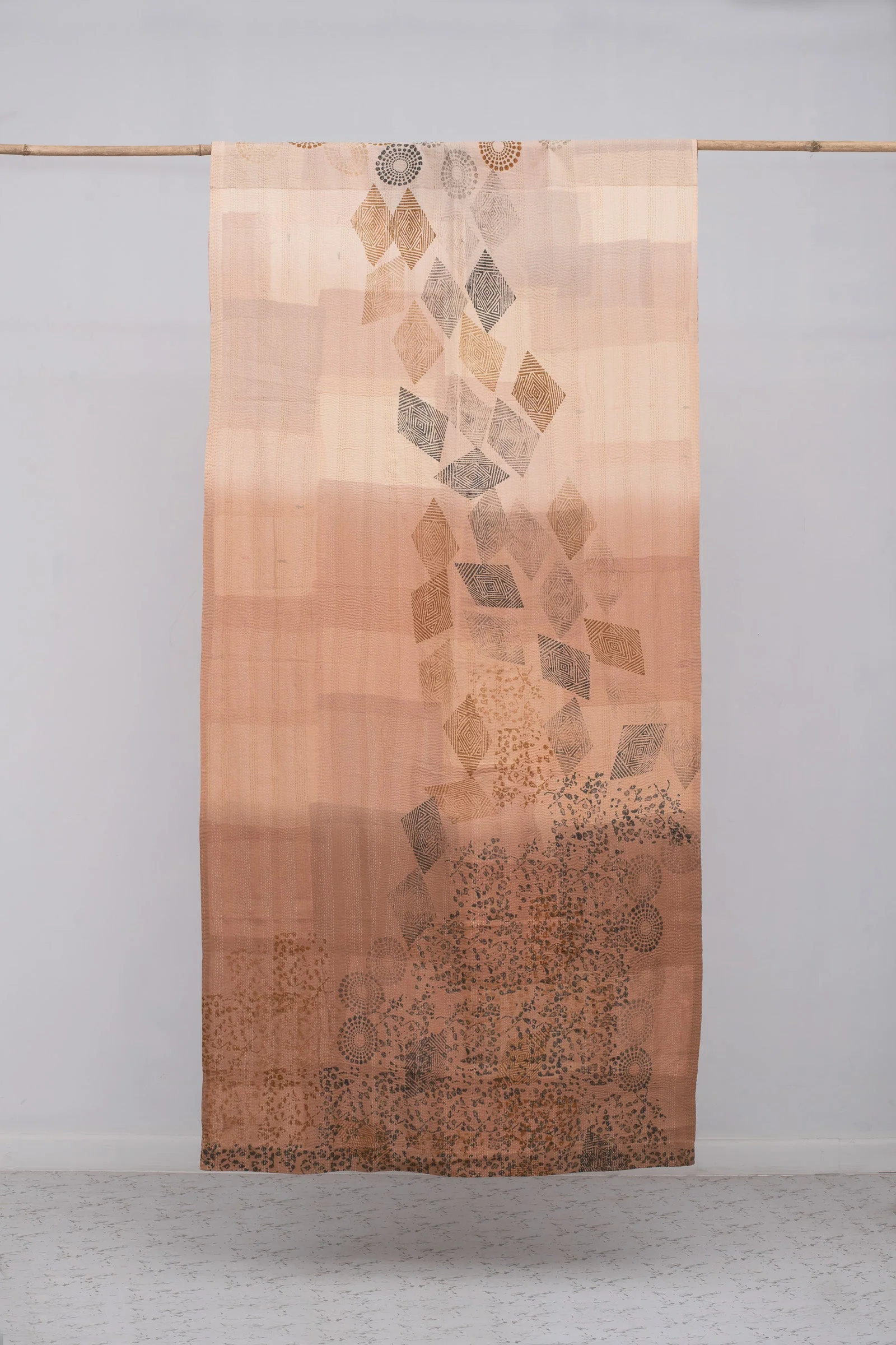 Vintage Fray Patch & Ombre Kantha Curtain -Rose Water -