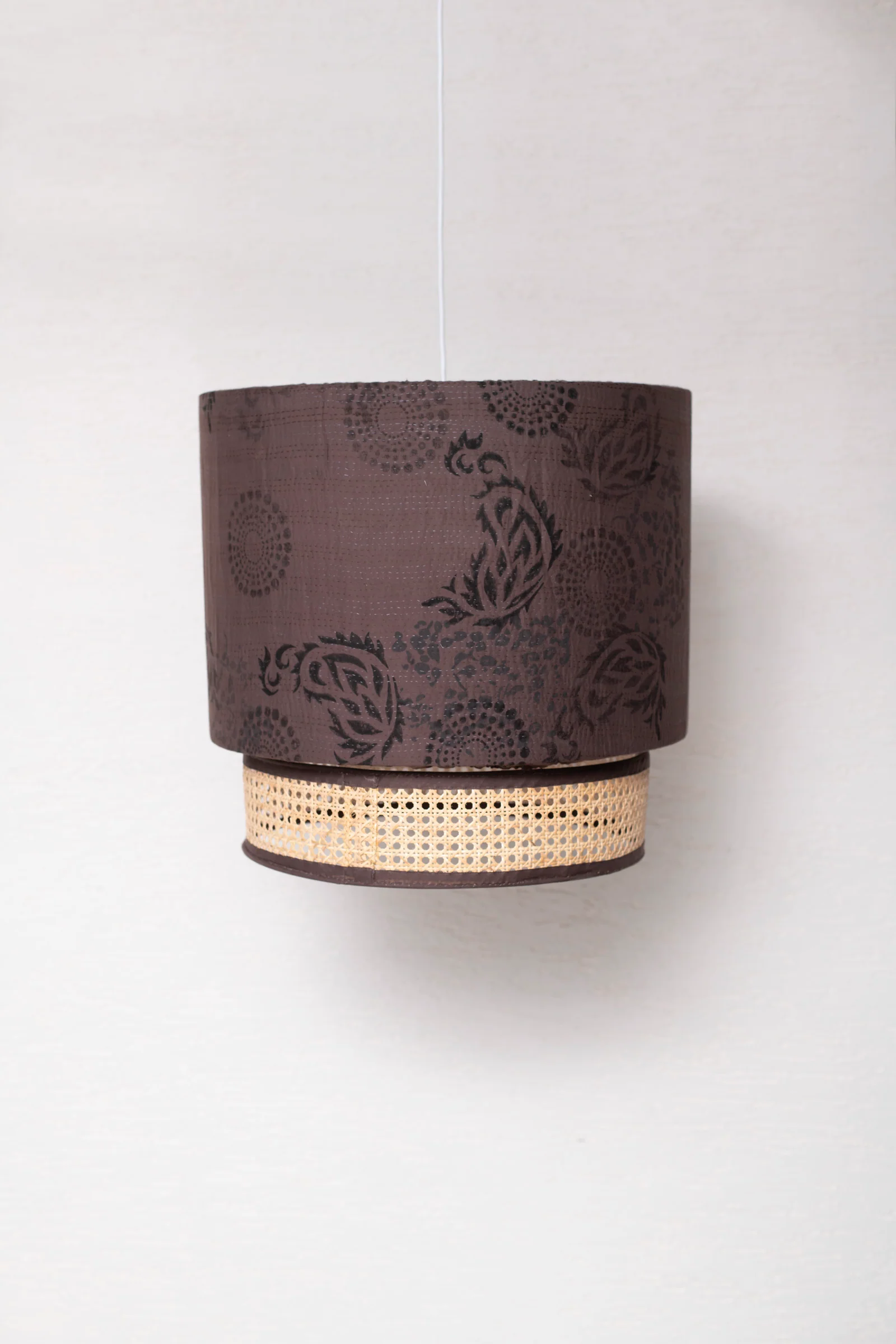 Vintage Fray Patch & Ombre Kantha Hanging Lamp -Chocolate -