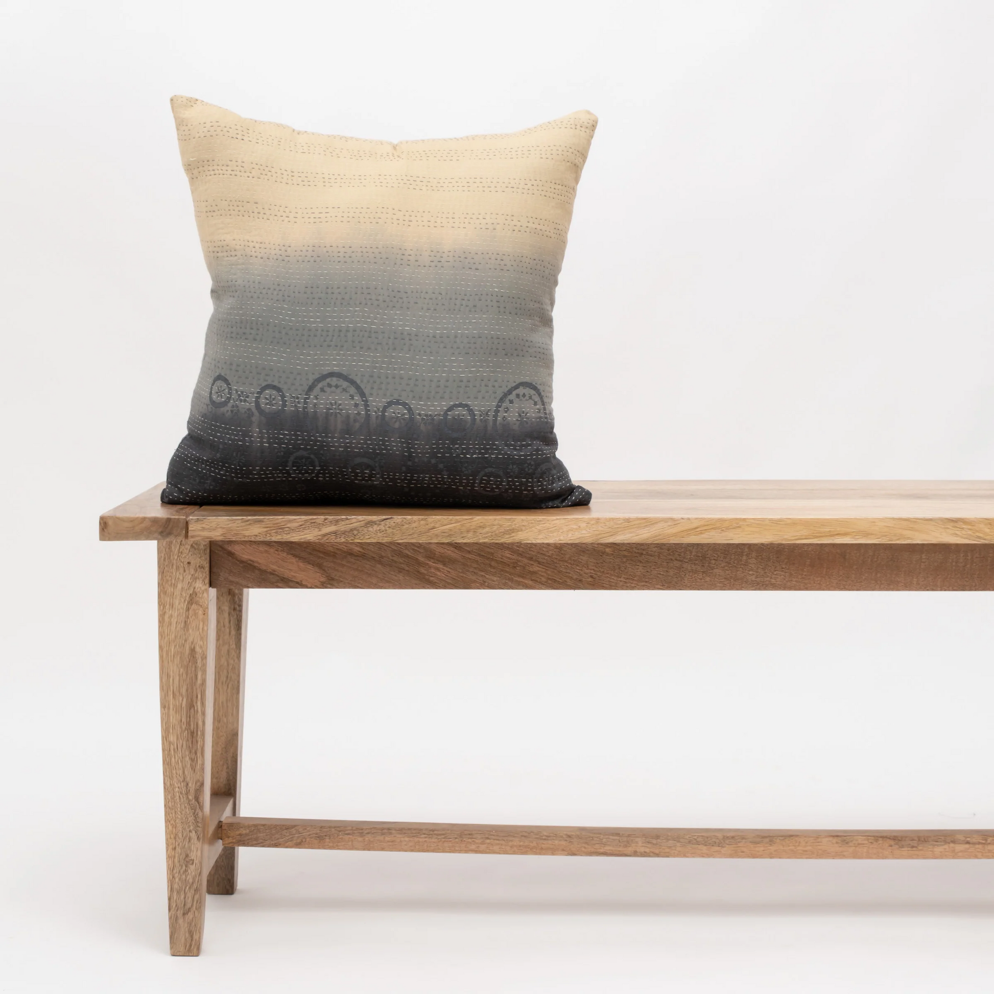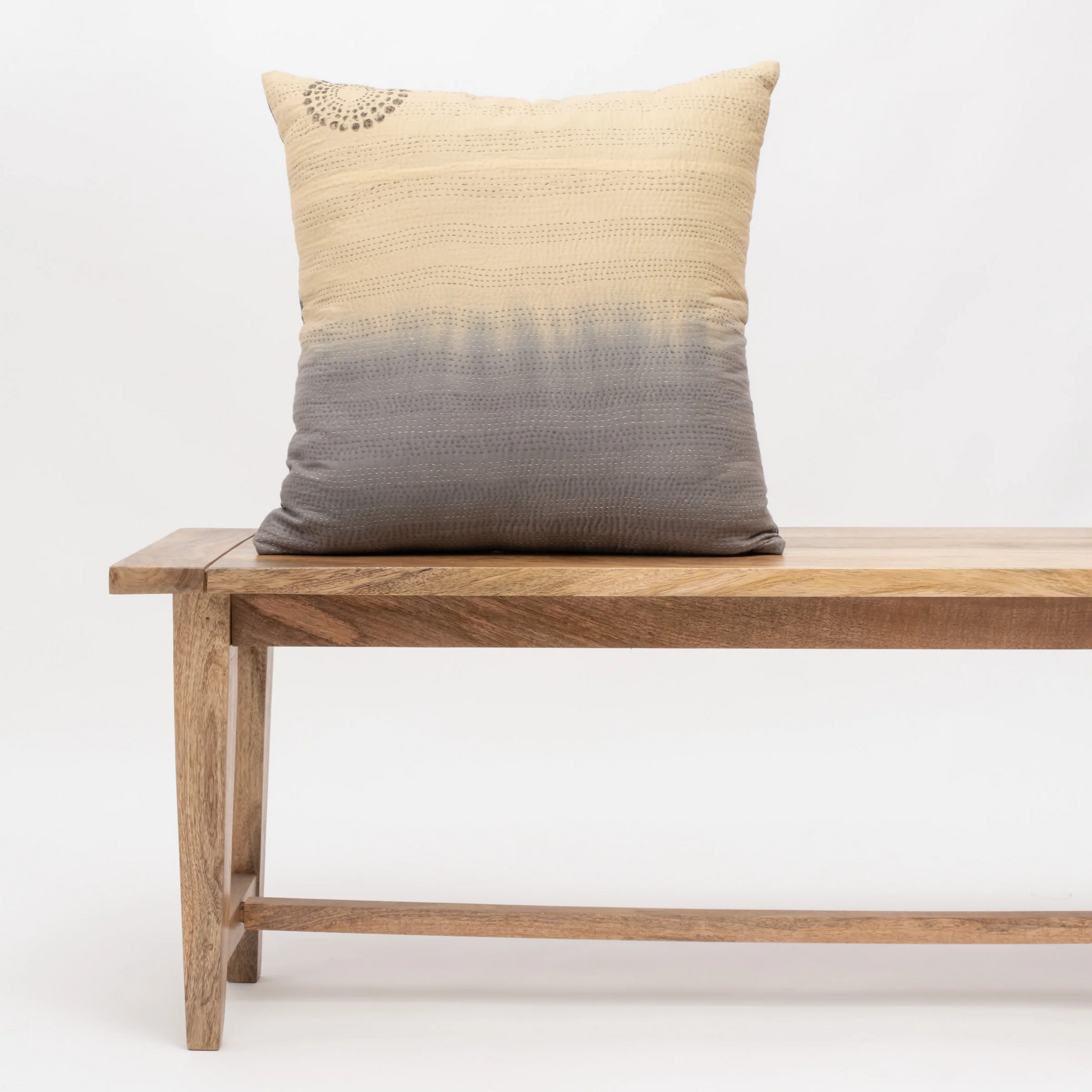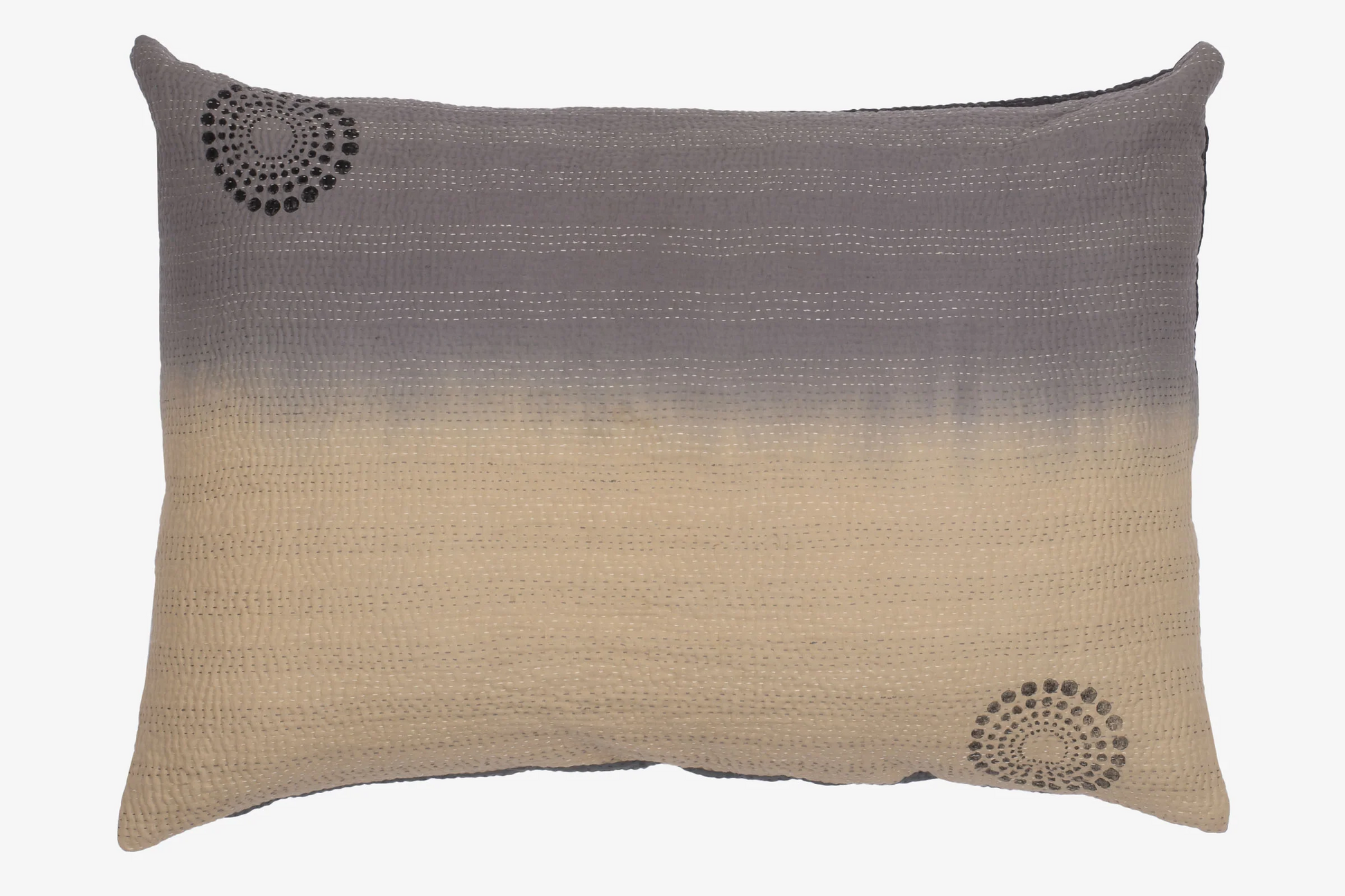 Vintage Fray Patch & Ombre Kantha Pillow Sham -Yellow Stone -