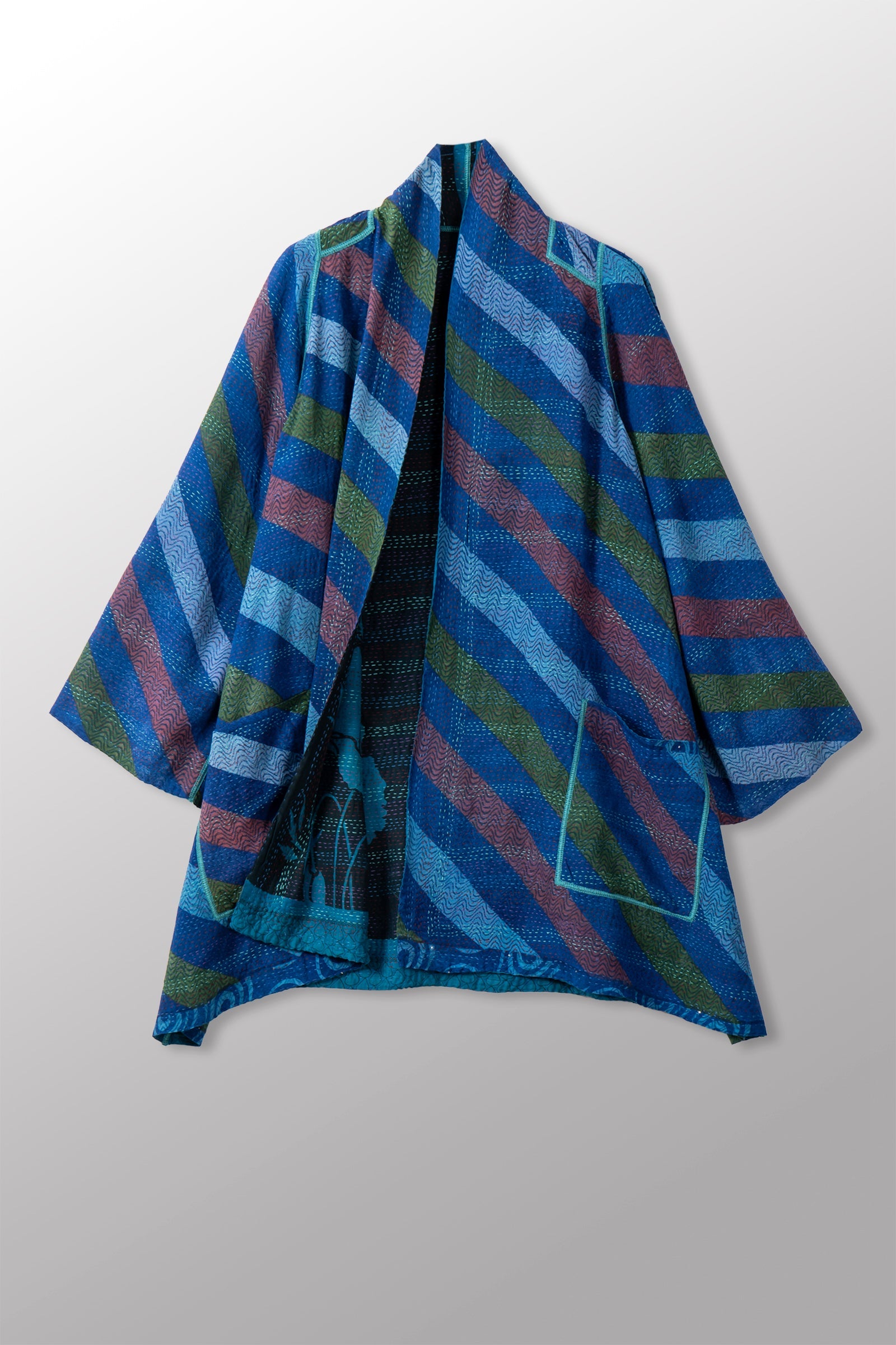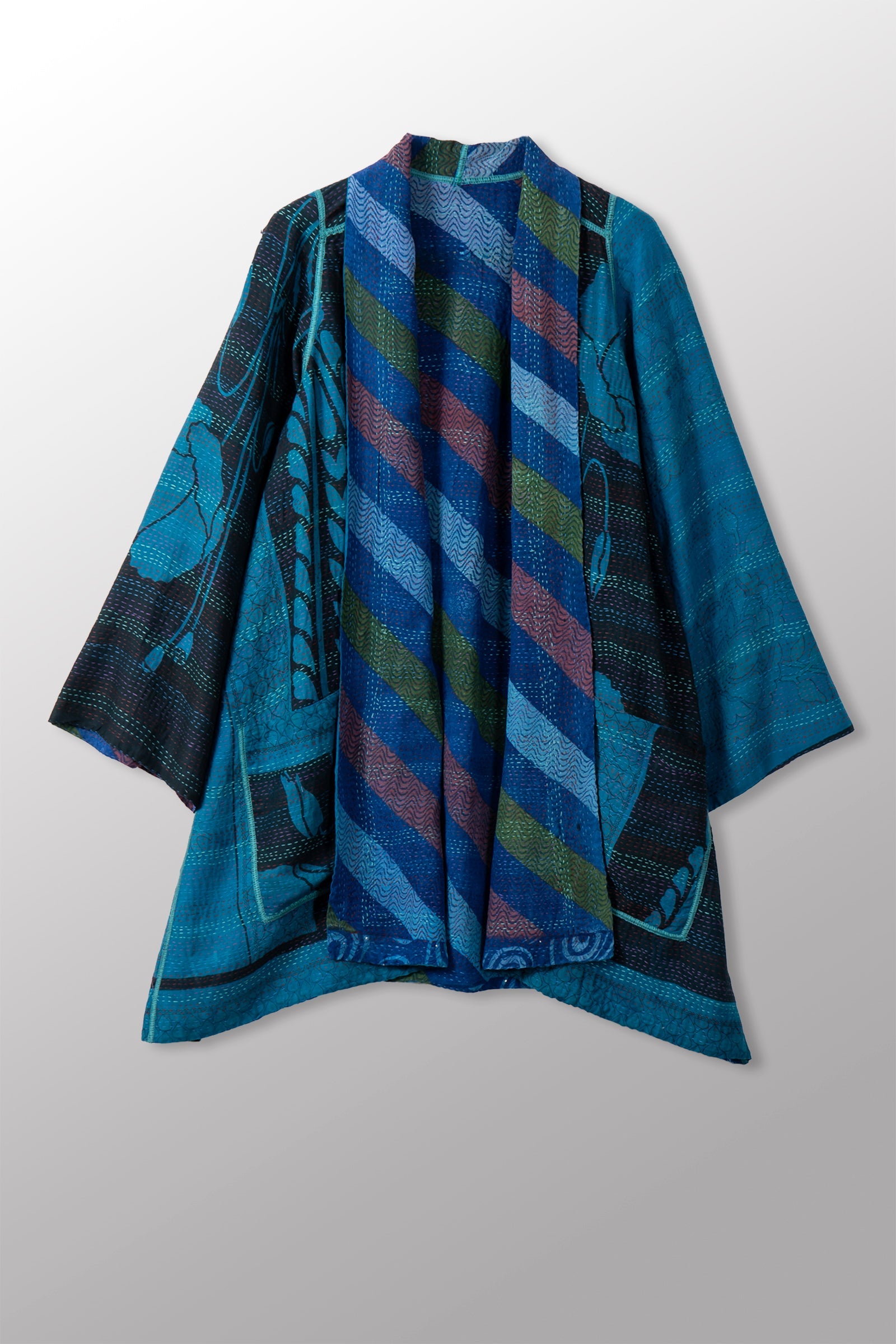 2 Layer Vintage Saris with Hand Stitches on Entire Garment - Reversible