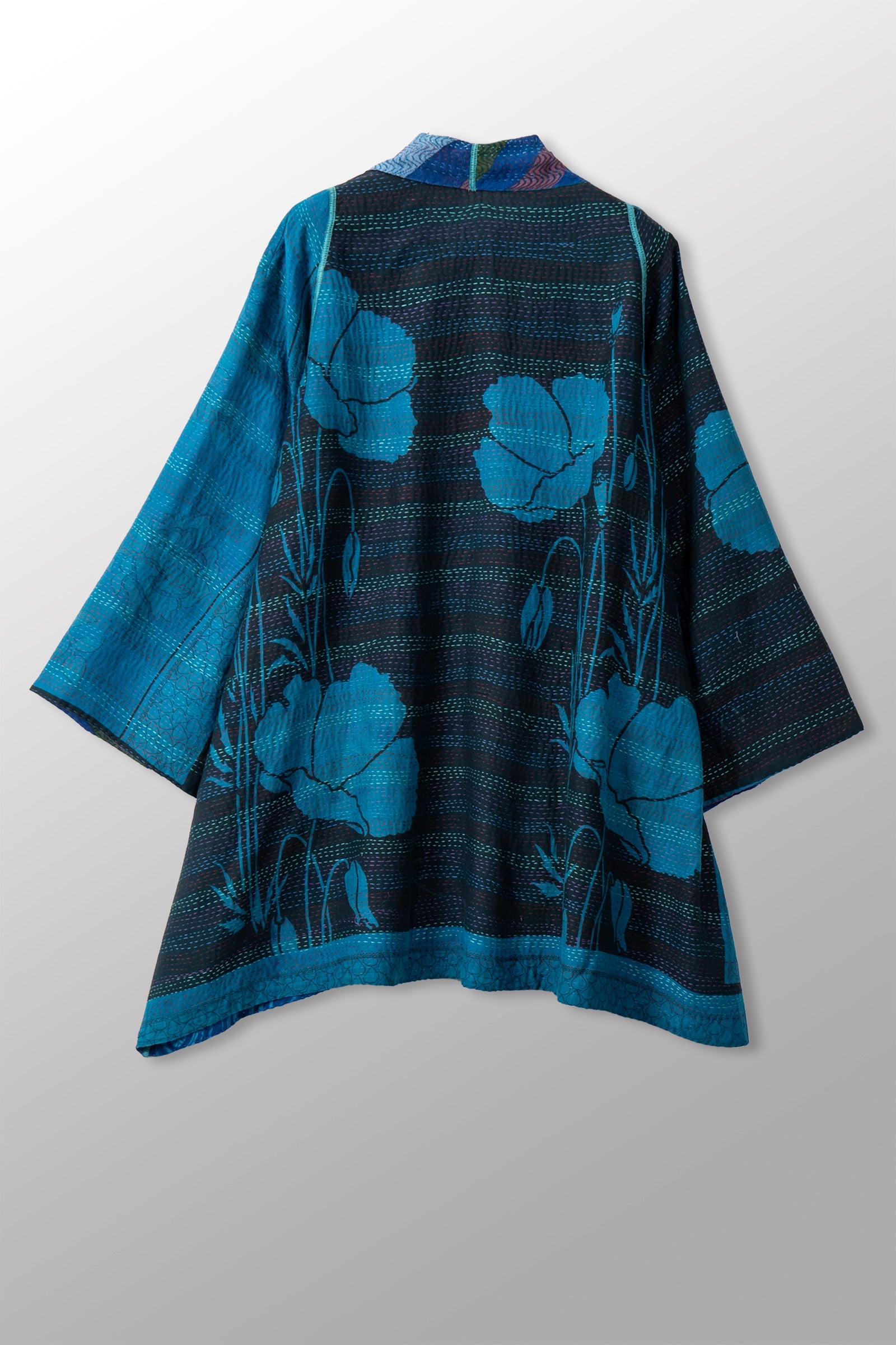 VINTAGE SILK GEORGETTE COTTON KANTHA A-LINE JKT - gc2003-0033a -