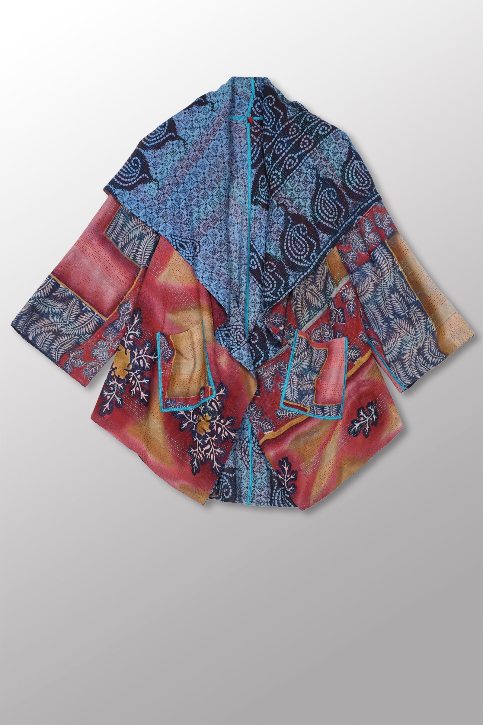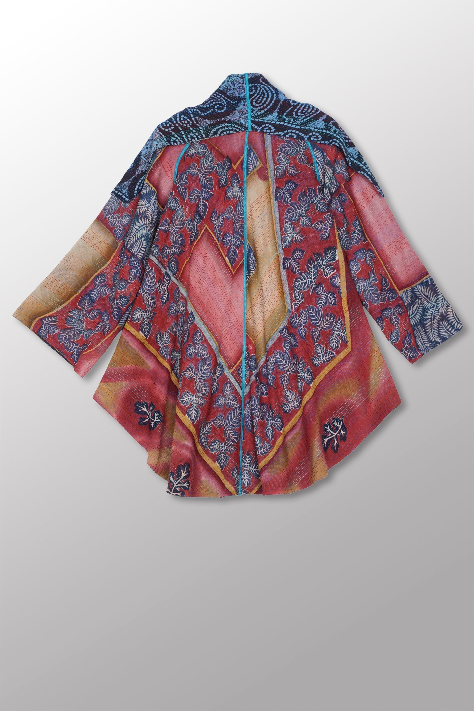 2 Layer Vintage Saris with Hand Stitches on Entire Garment - Reversible
