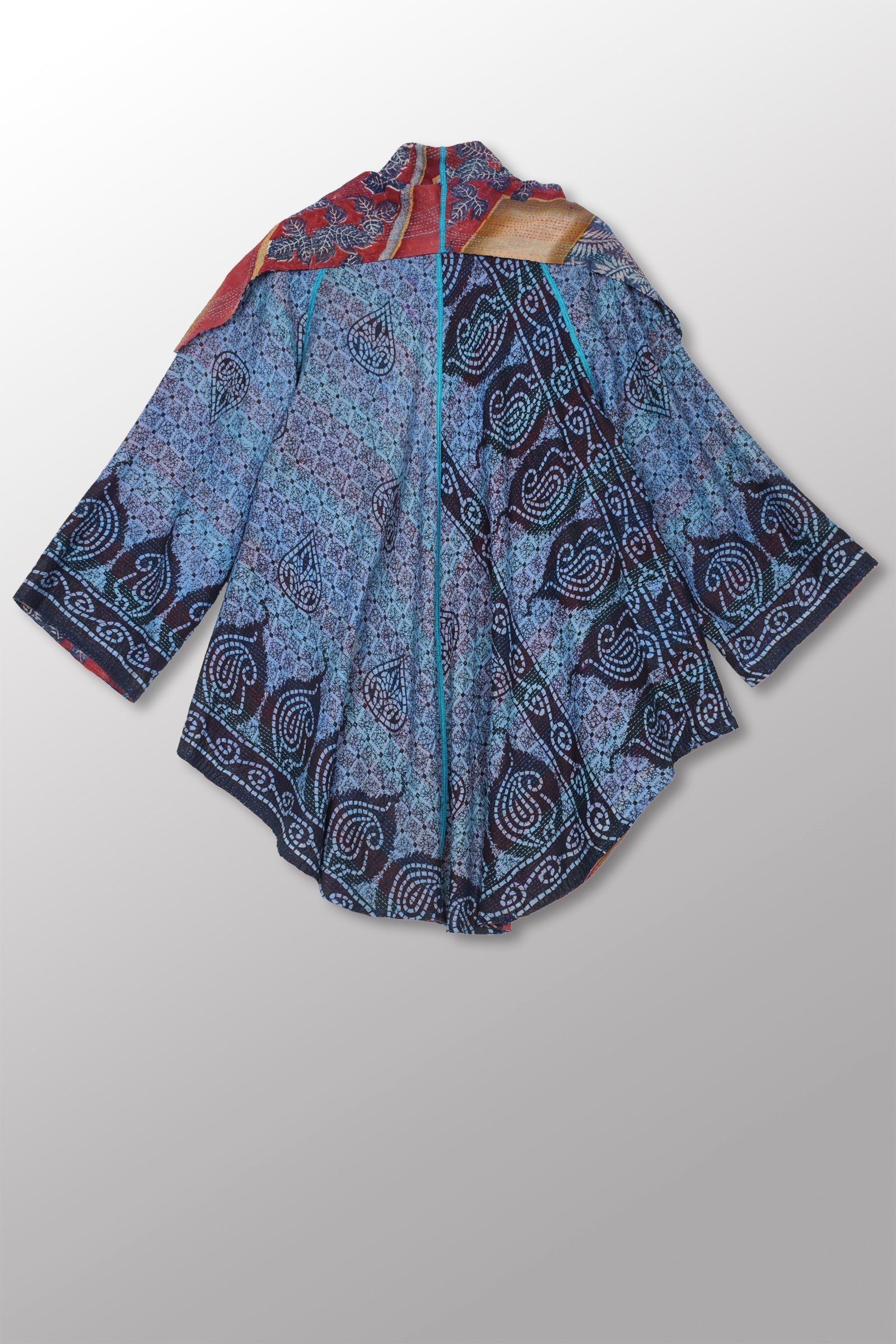 VINTAGE SILK GEORGETTE COTTON KANTHA CIRCULAR LONG JKT - gc2009-9001a -