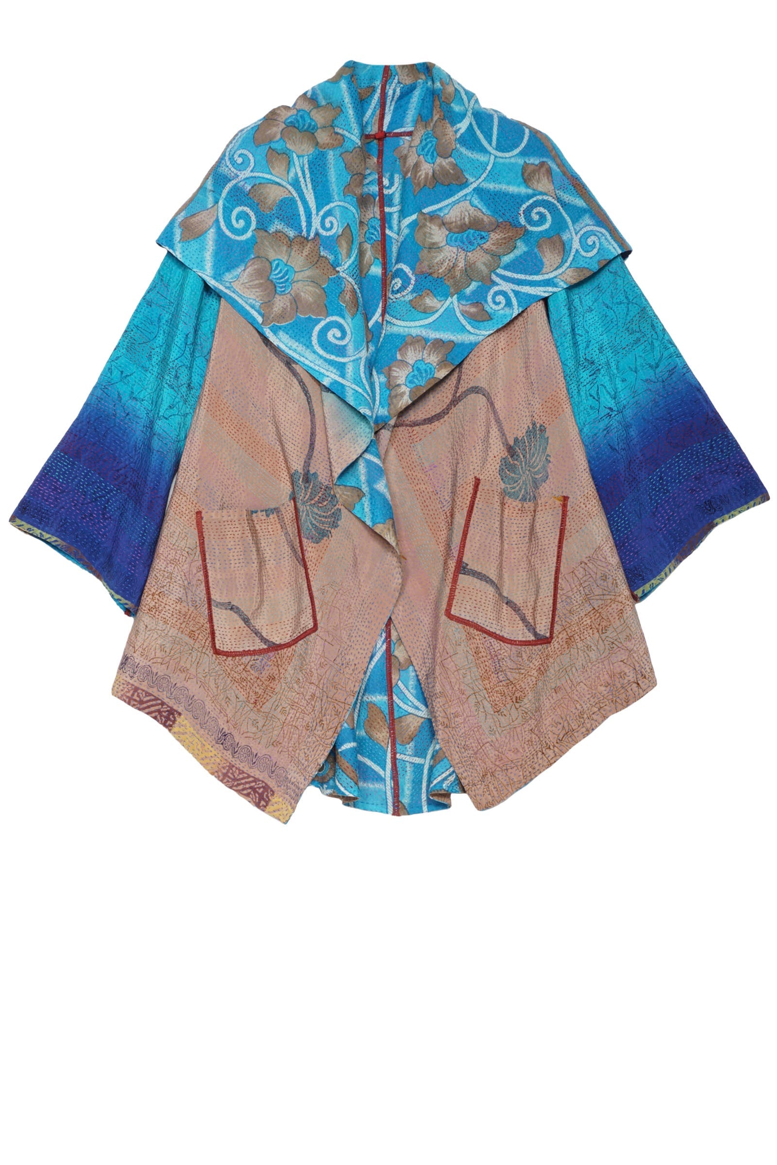 2 Layer Vintage Saris with Hand Stitches on Entire Garment - Reversible