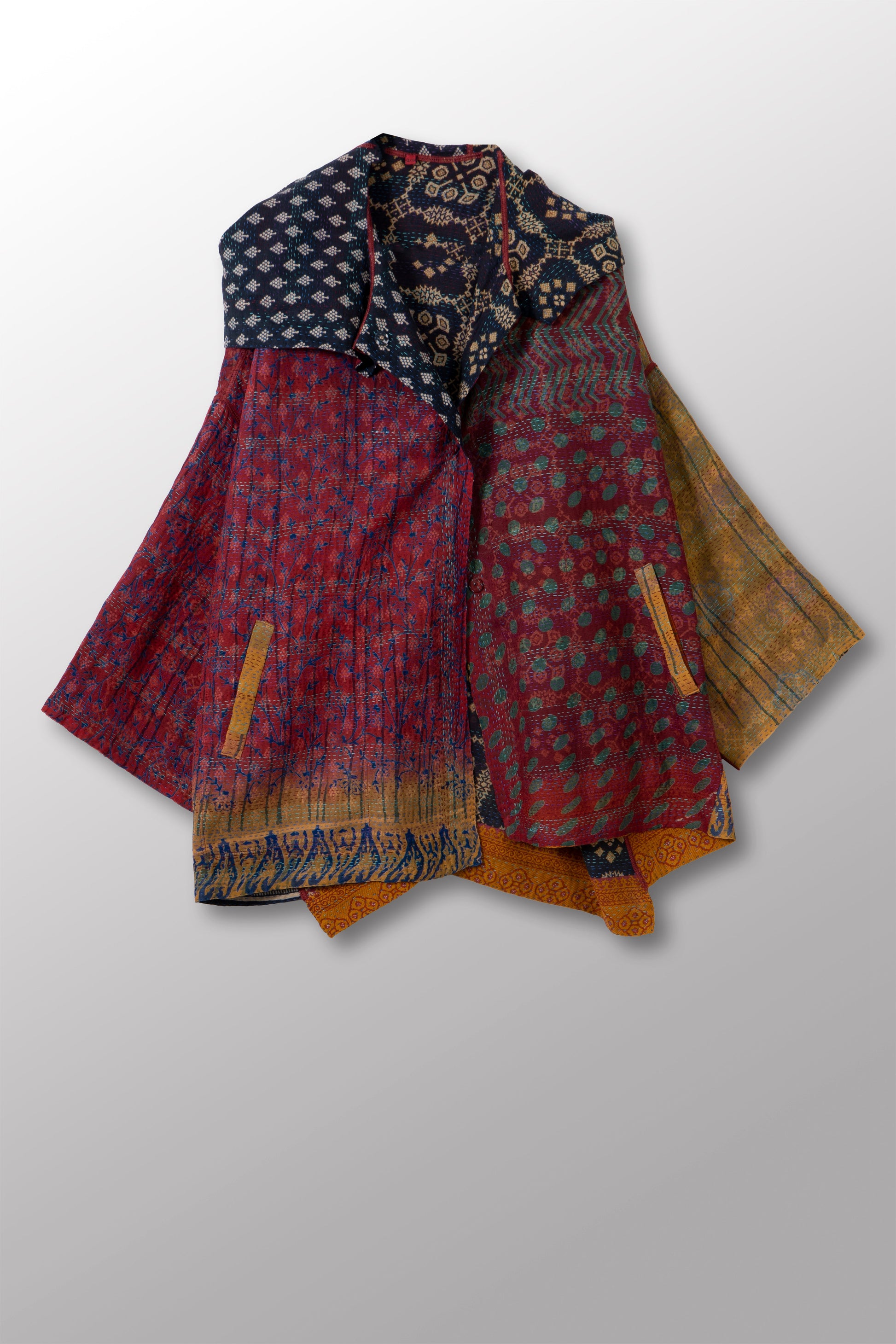 2 Layer Vintage Saris with Hand Stitches on Entire Garment - Reversible