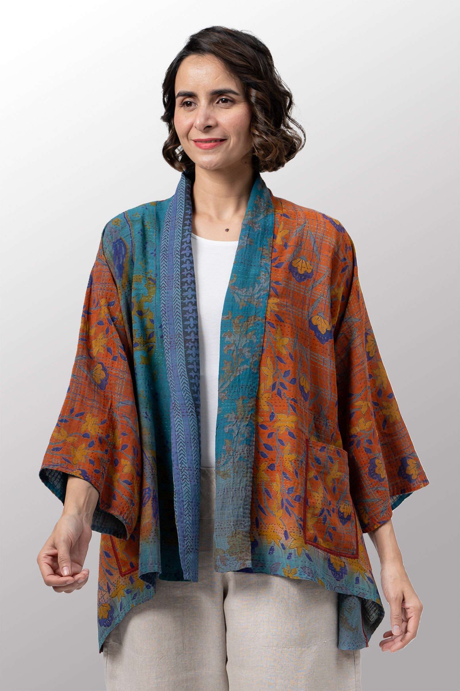 2 Layer Vintage Saris with Hand Stitches on Entire Garment