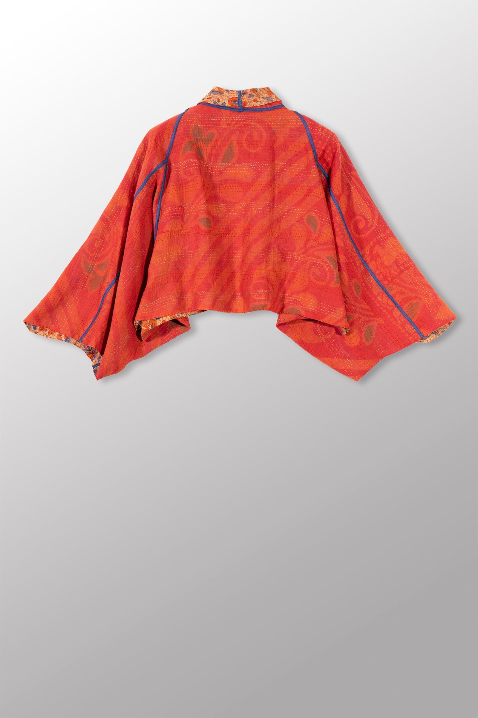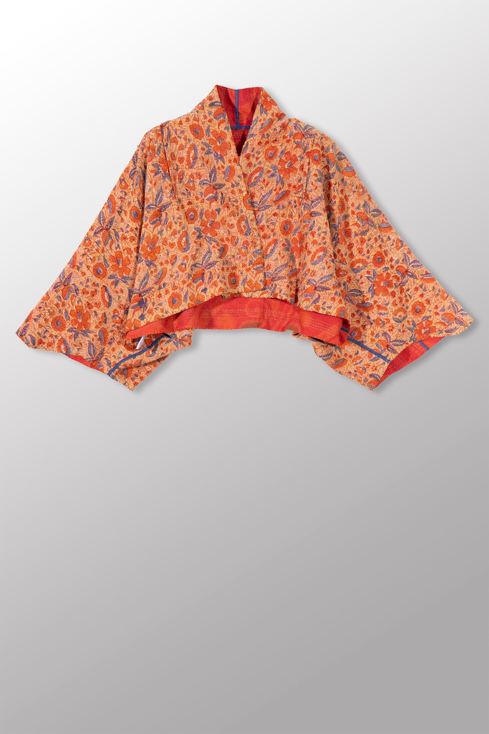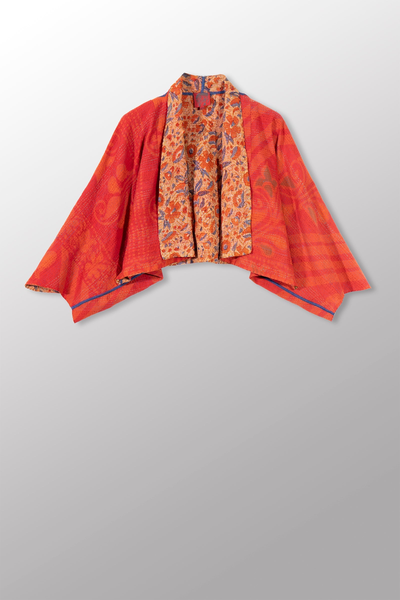 VINTAGE SILK GEORGETTE COTTON KANTHA PUFF SLV. SHRUG - gc2062-0003a -