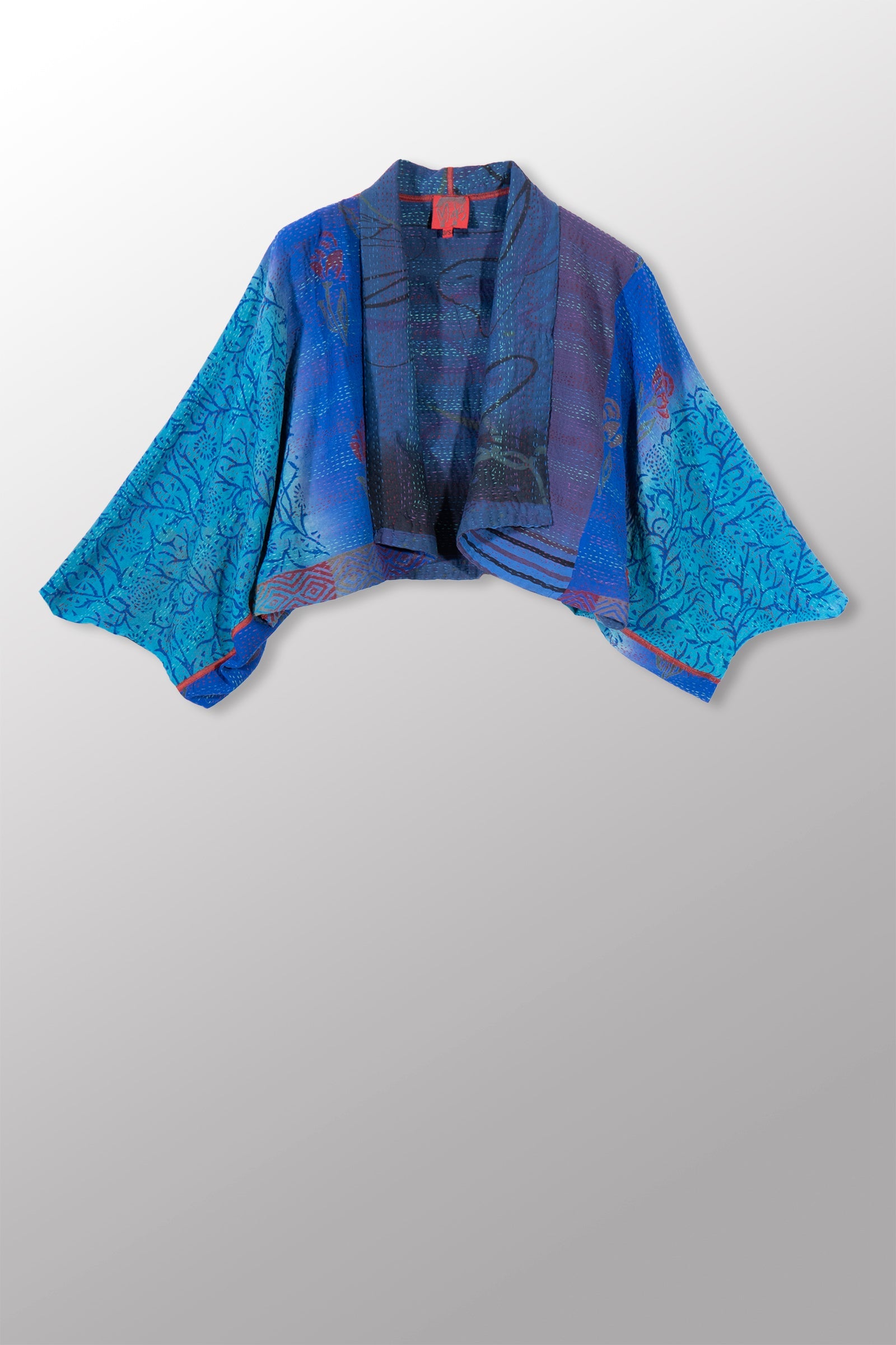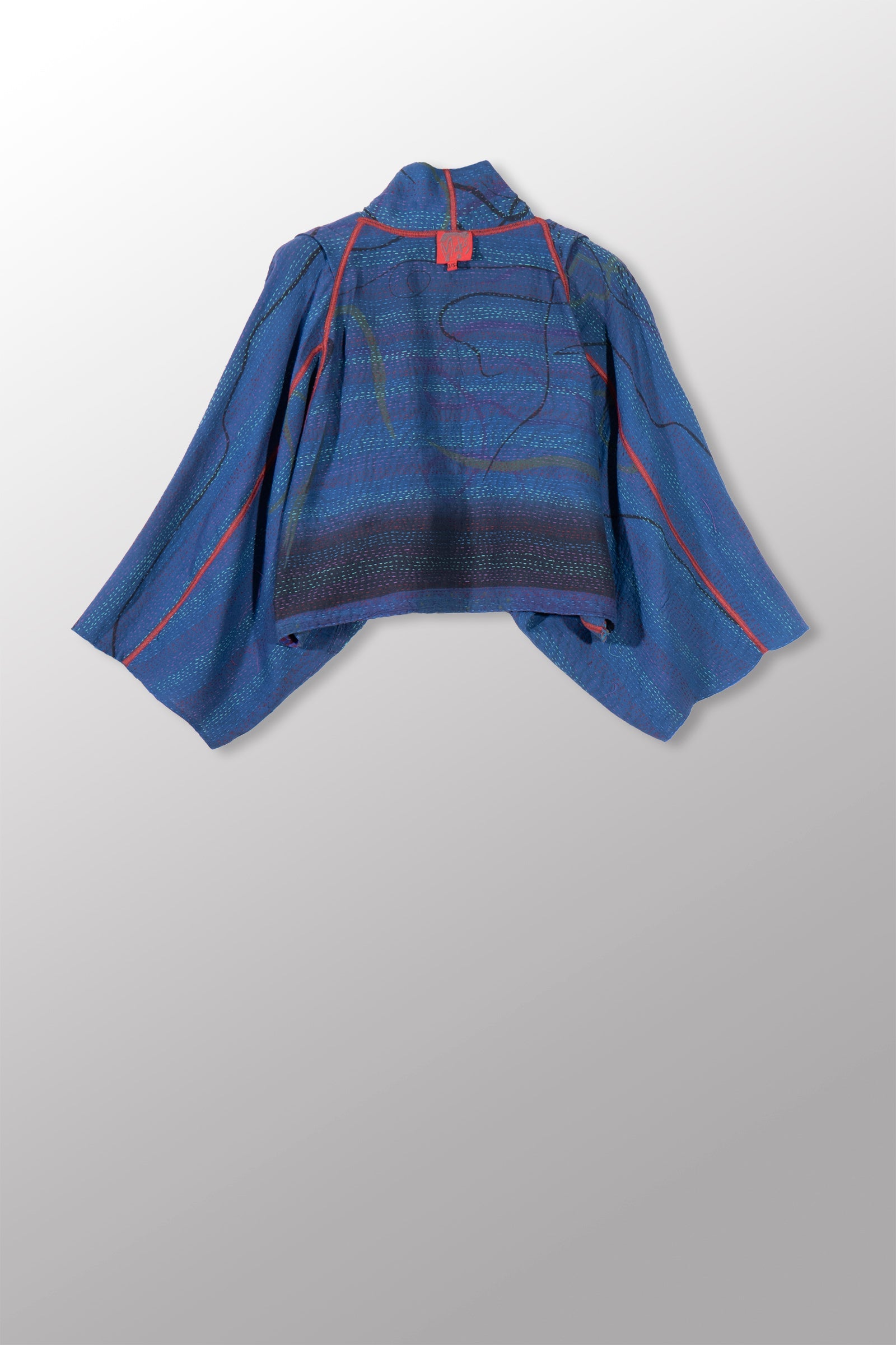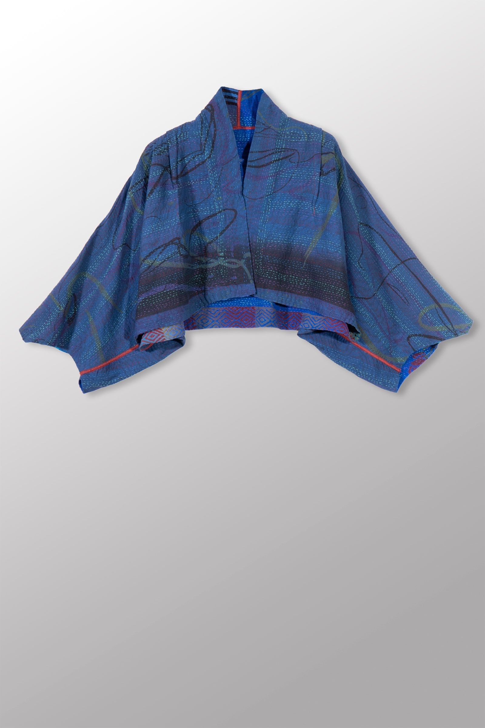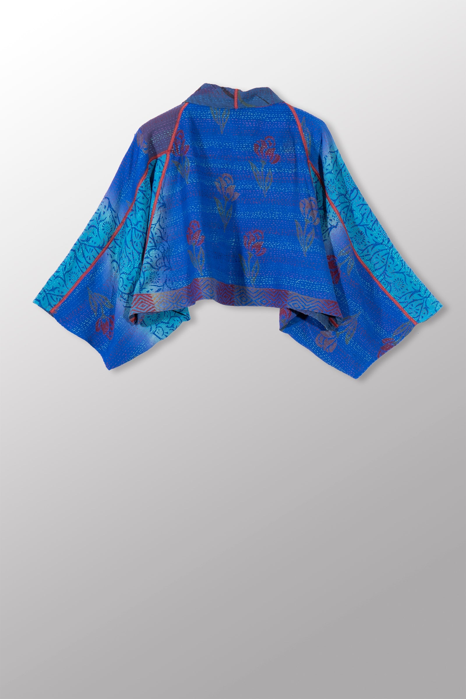 VINTAGE SILK GEORGETTE COTTON KANTHA PUFF SLV. SHRUG - gc2062-0004a -