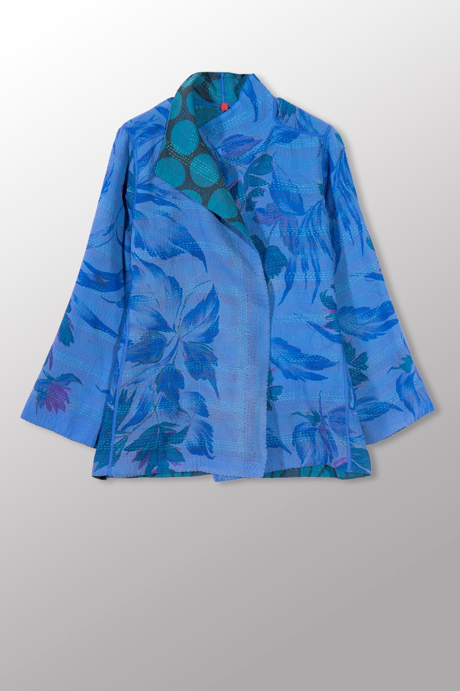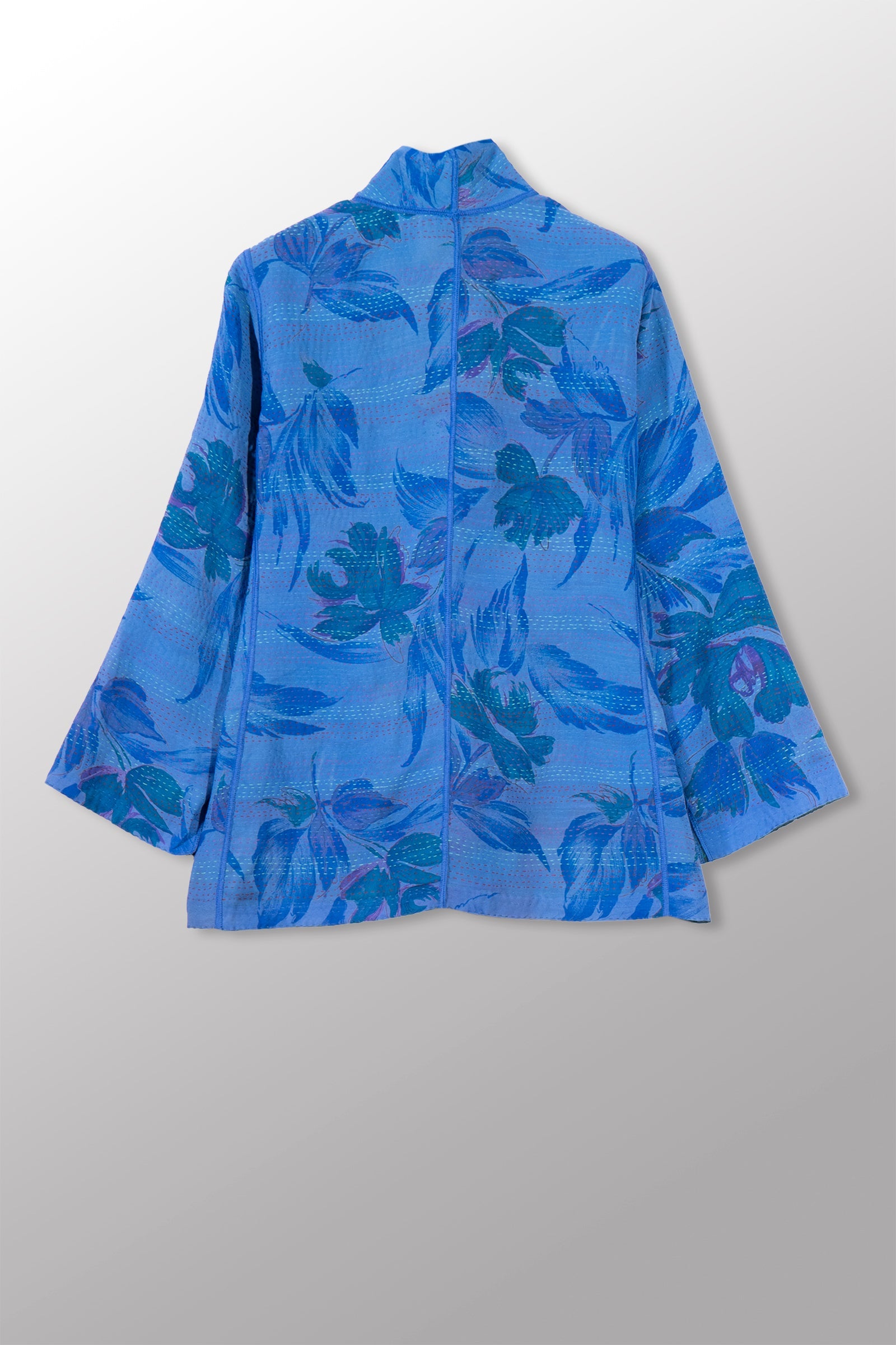 VINTAGE SILK GEORGETTE COTTON KANTHA SHORT JKT - gc2007-0001l -