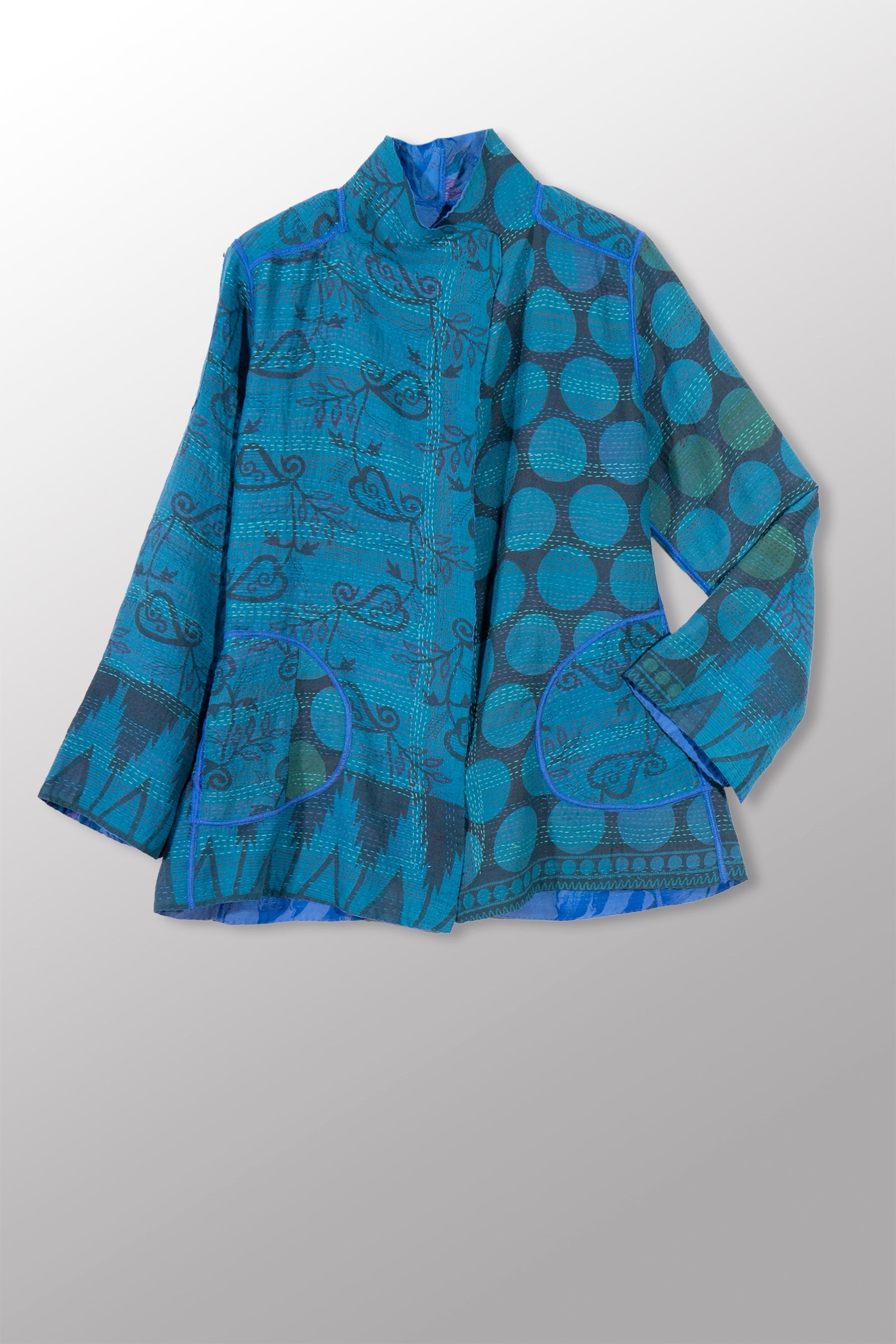 2 Layer Vintage Saris with Hand Stitches on Entire Garment - Reversible