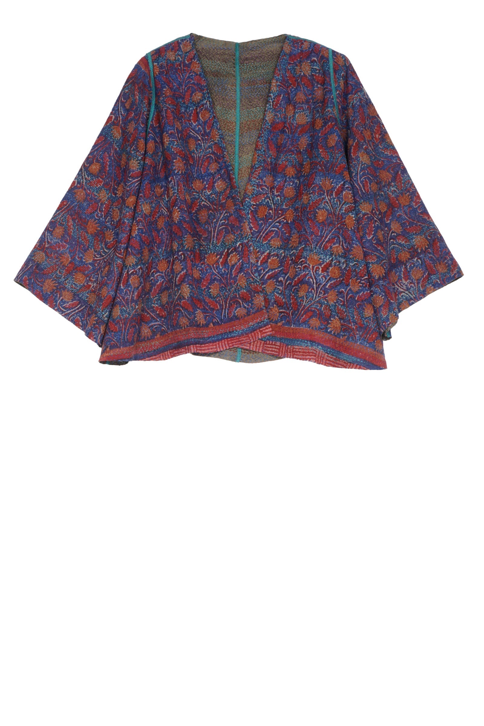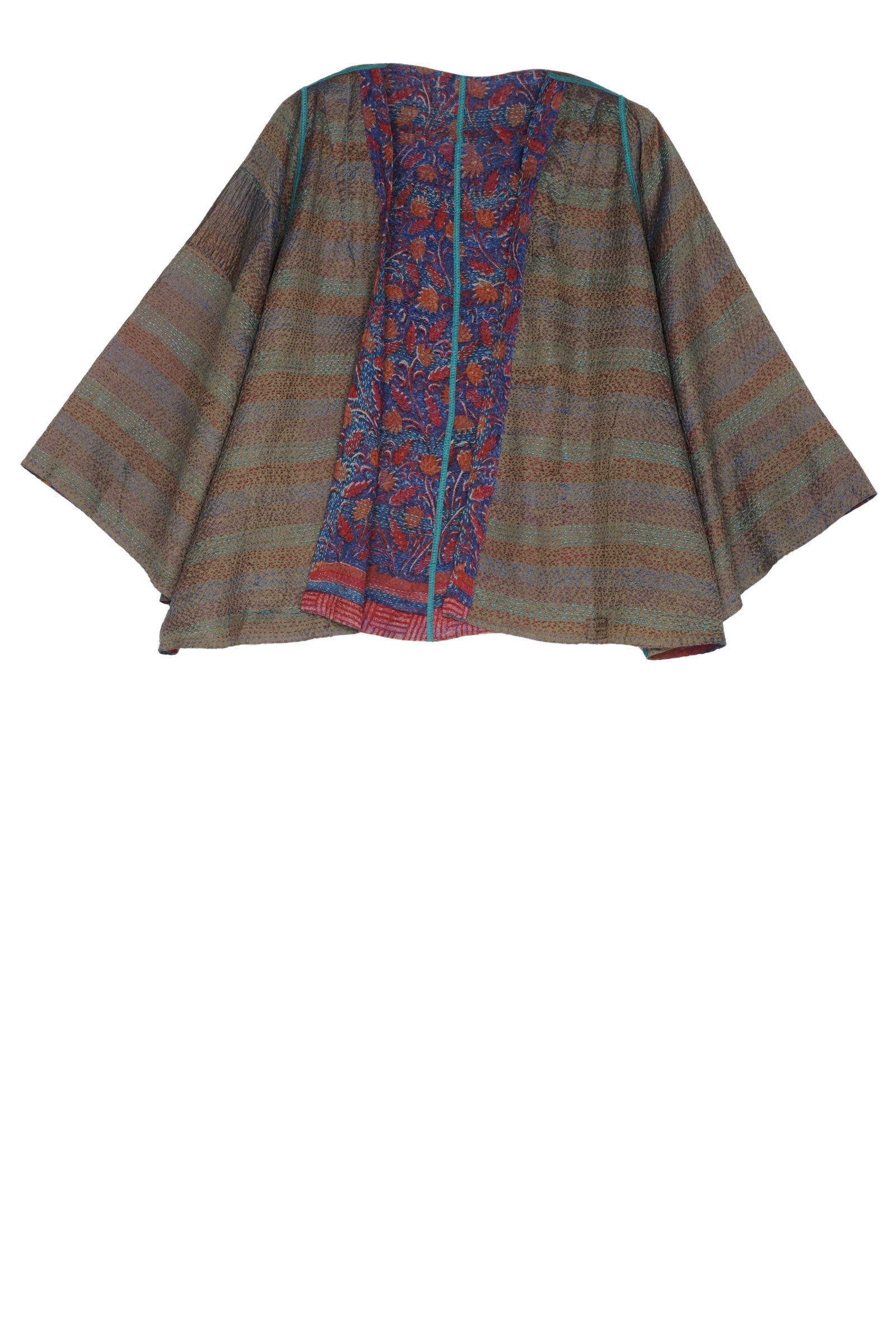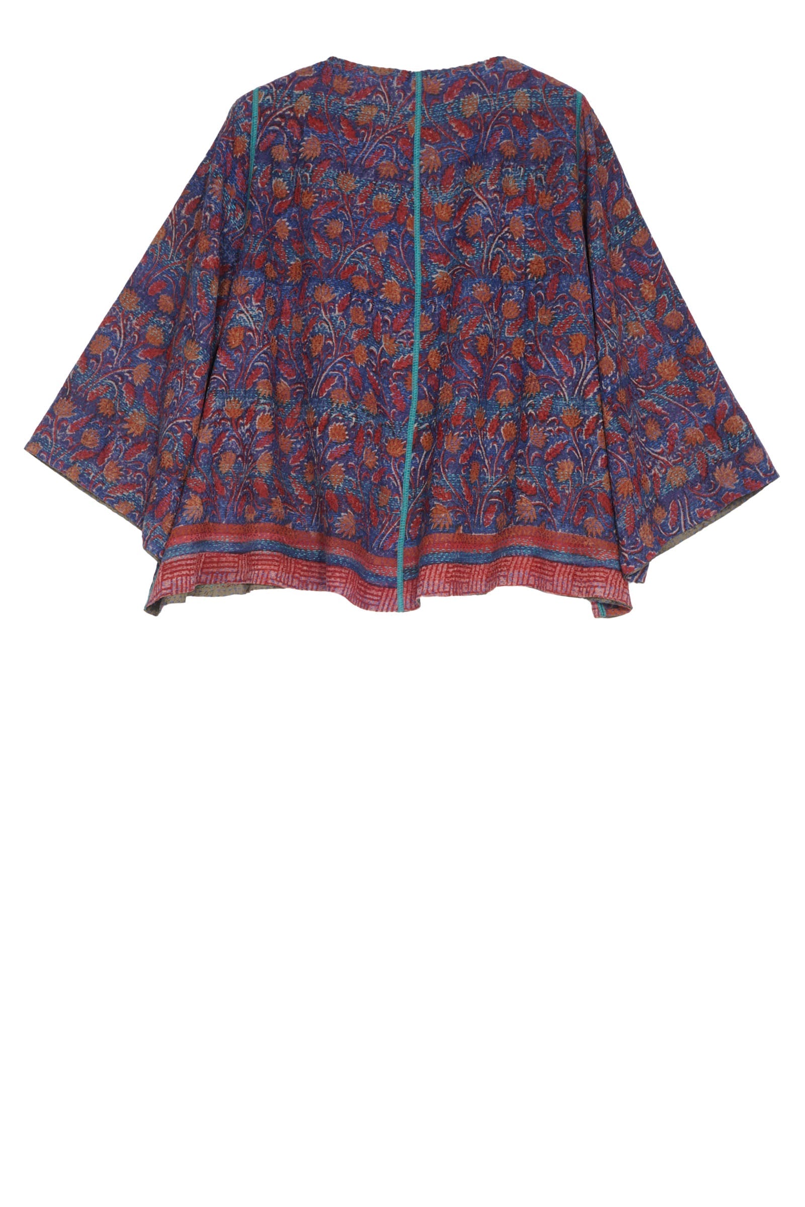 VINTAGE SILK GEORGETTE KANTHA BELL SHAPE JACKET - sg2048-0001a -