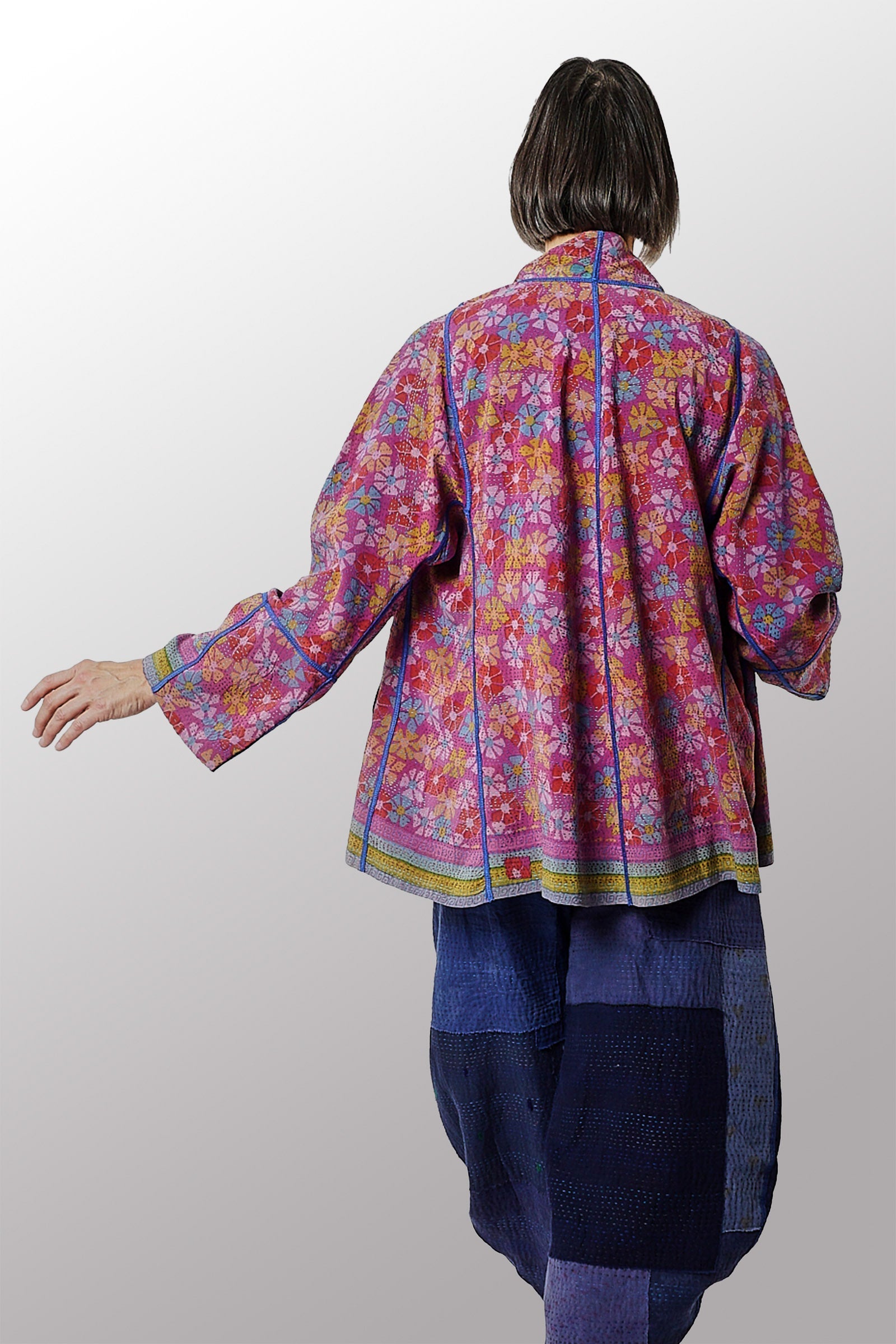VINTAGE SILK GEORGETTE KANTHA FLARE SHORT JKT - sg2011-0001m -