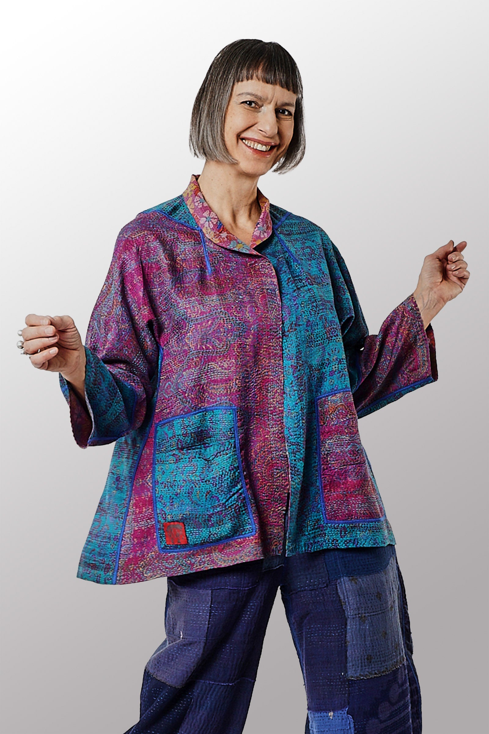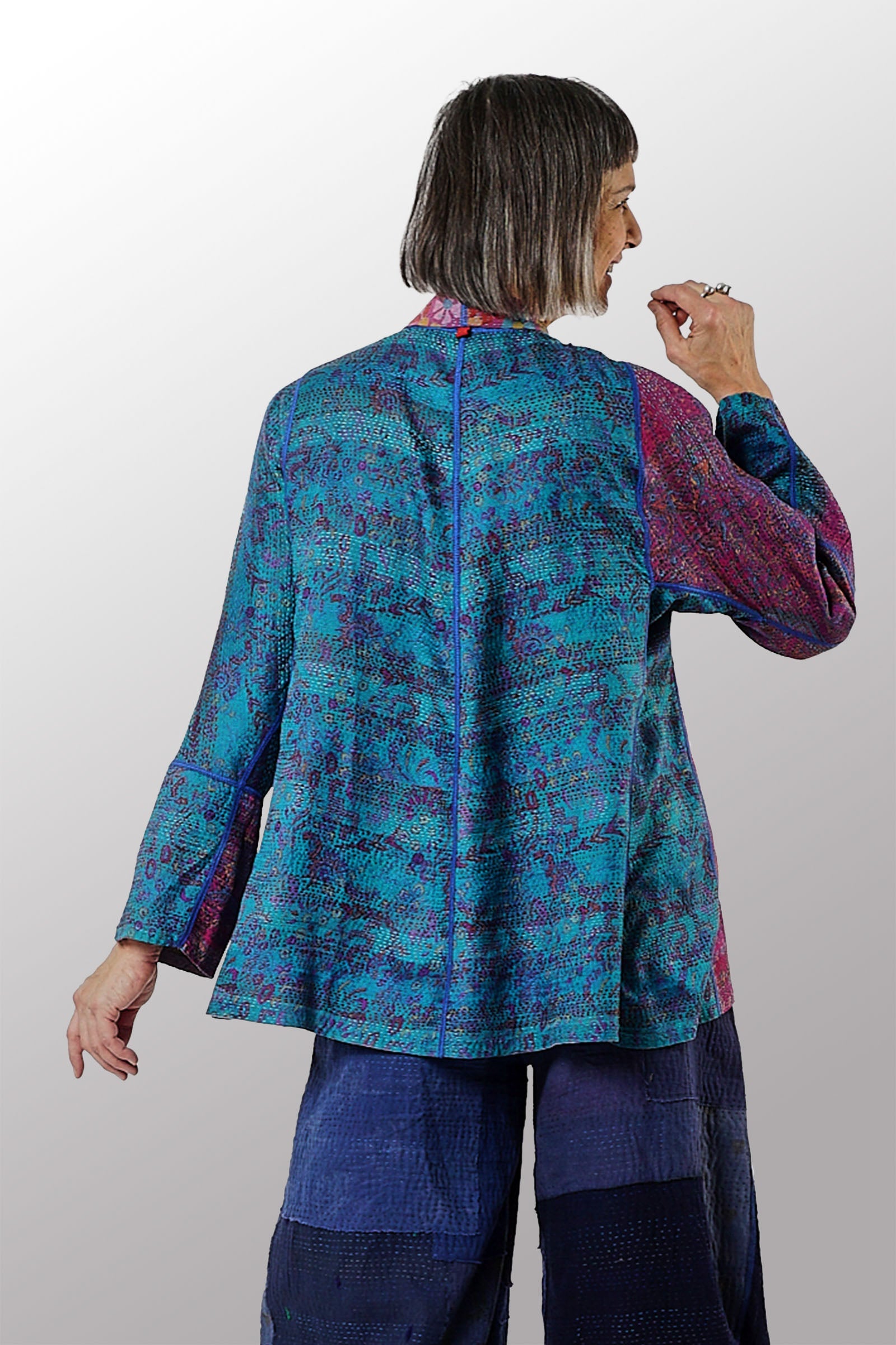 2 Layer Vintage Saris with Hand Stitches on Entire Garment - Reversible