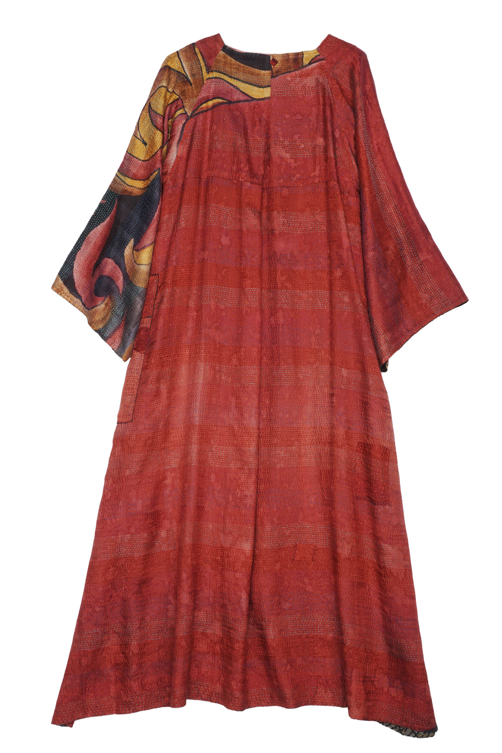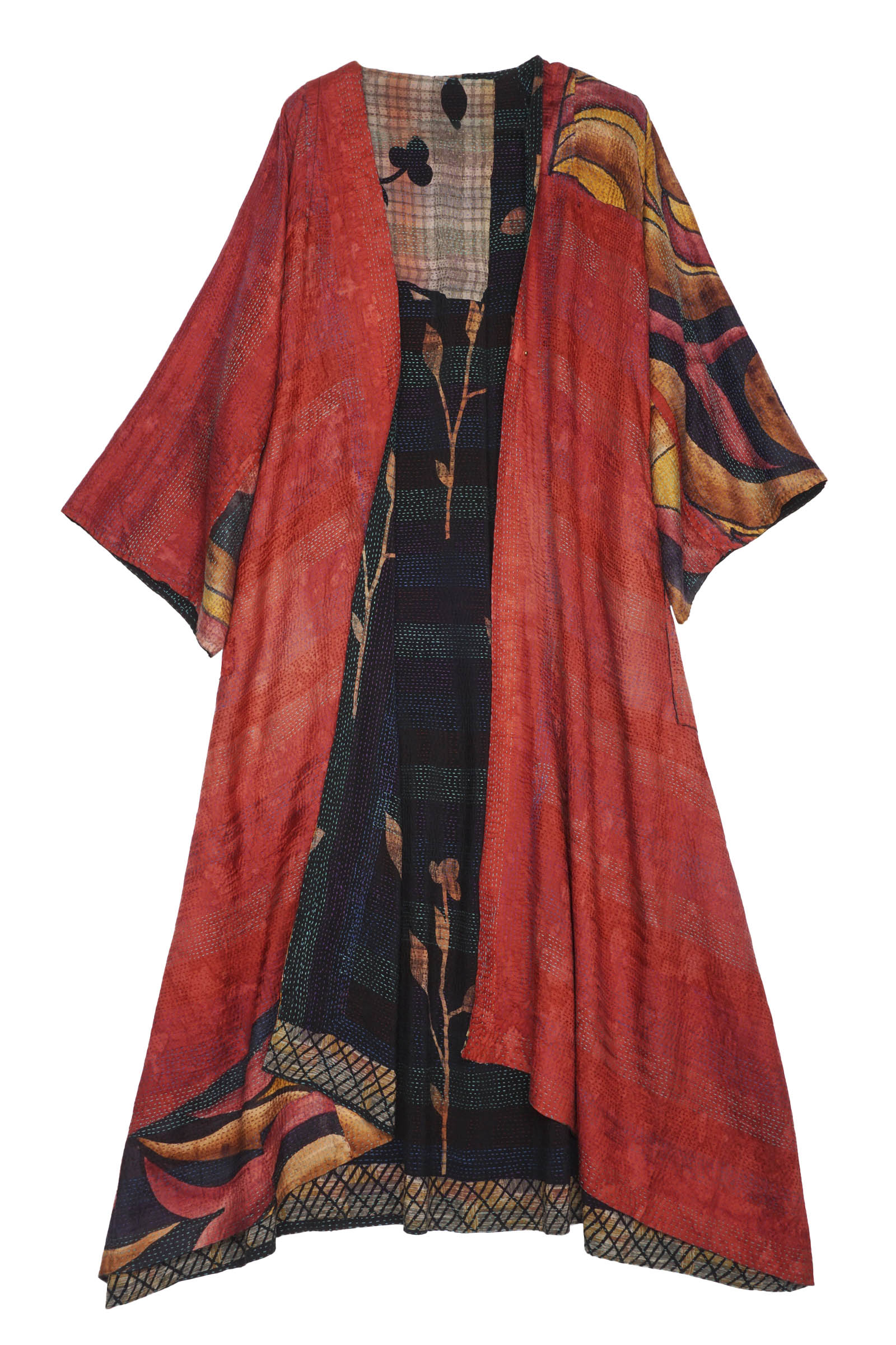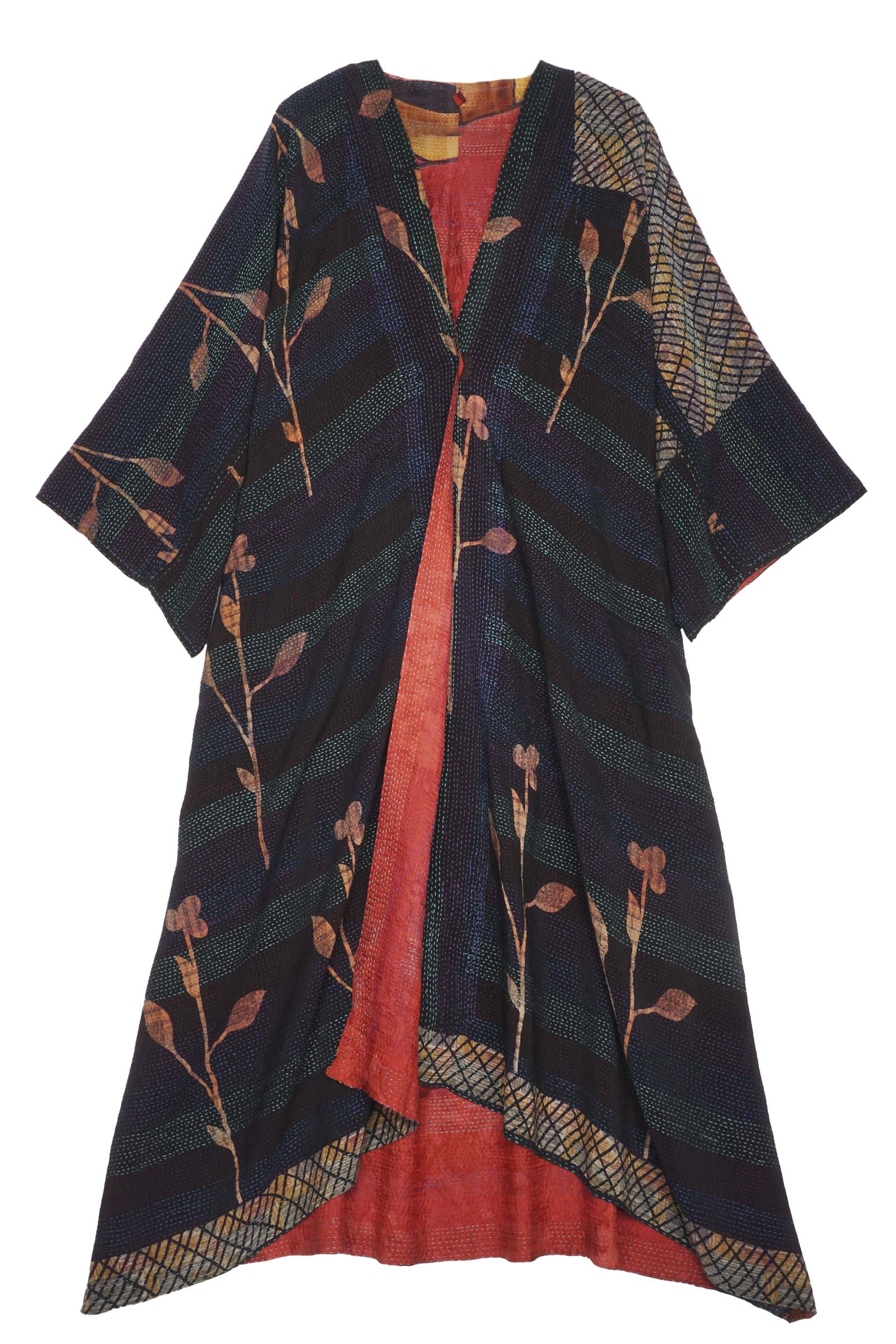 2 Layer Vintage Saris with Hand Stitches on Entire Garment - Reversible