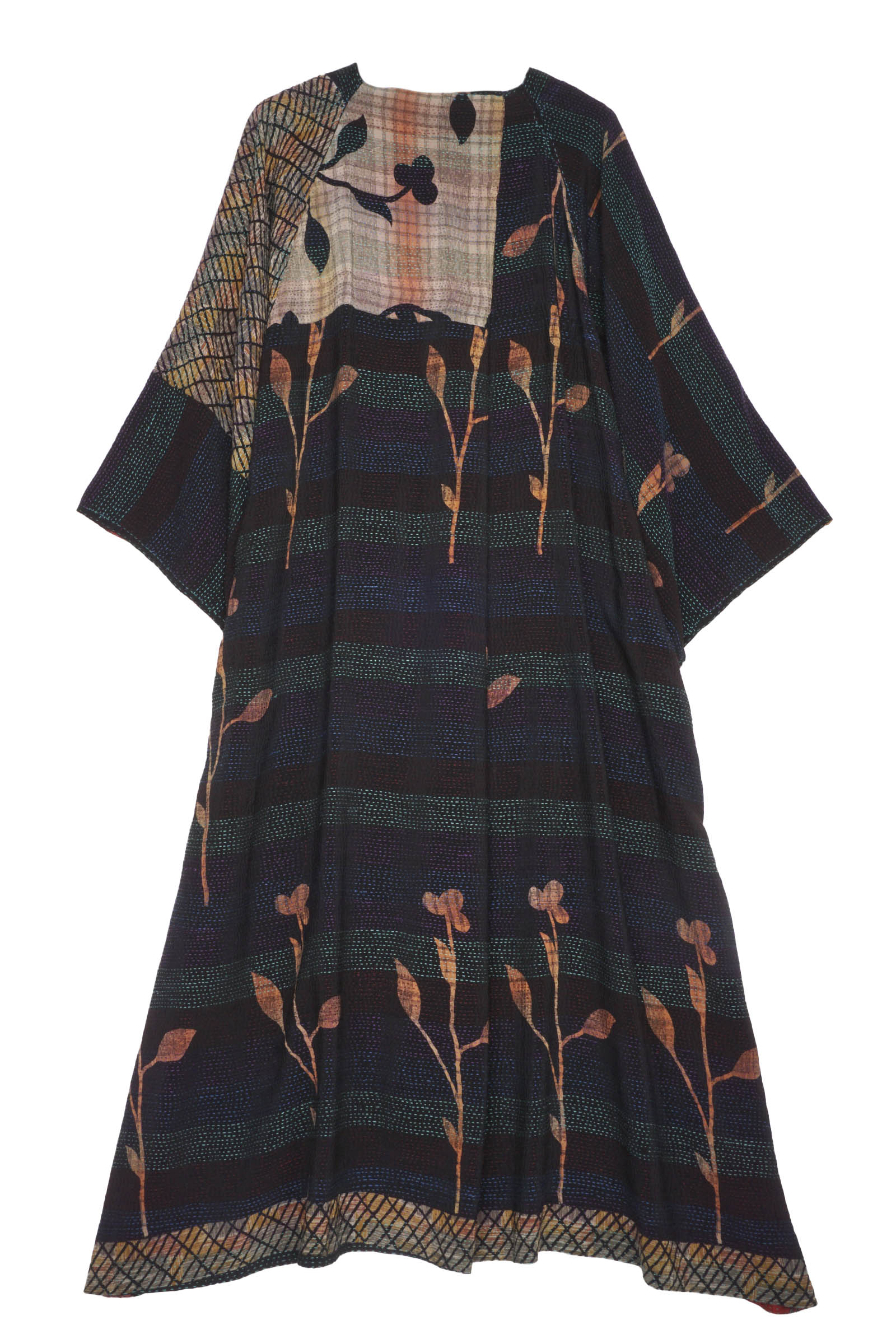 VINTAGE SILK GEORGETTE KANTHA KIMONO MAXI - sg2318-0002a -