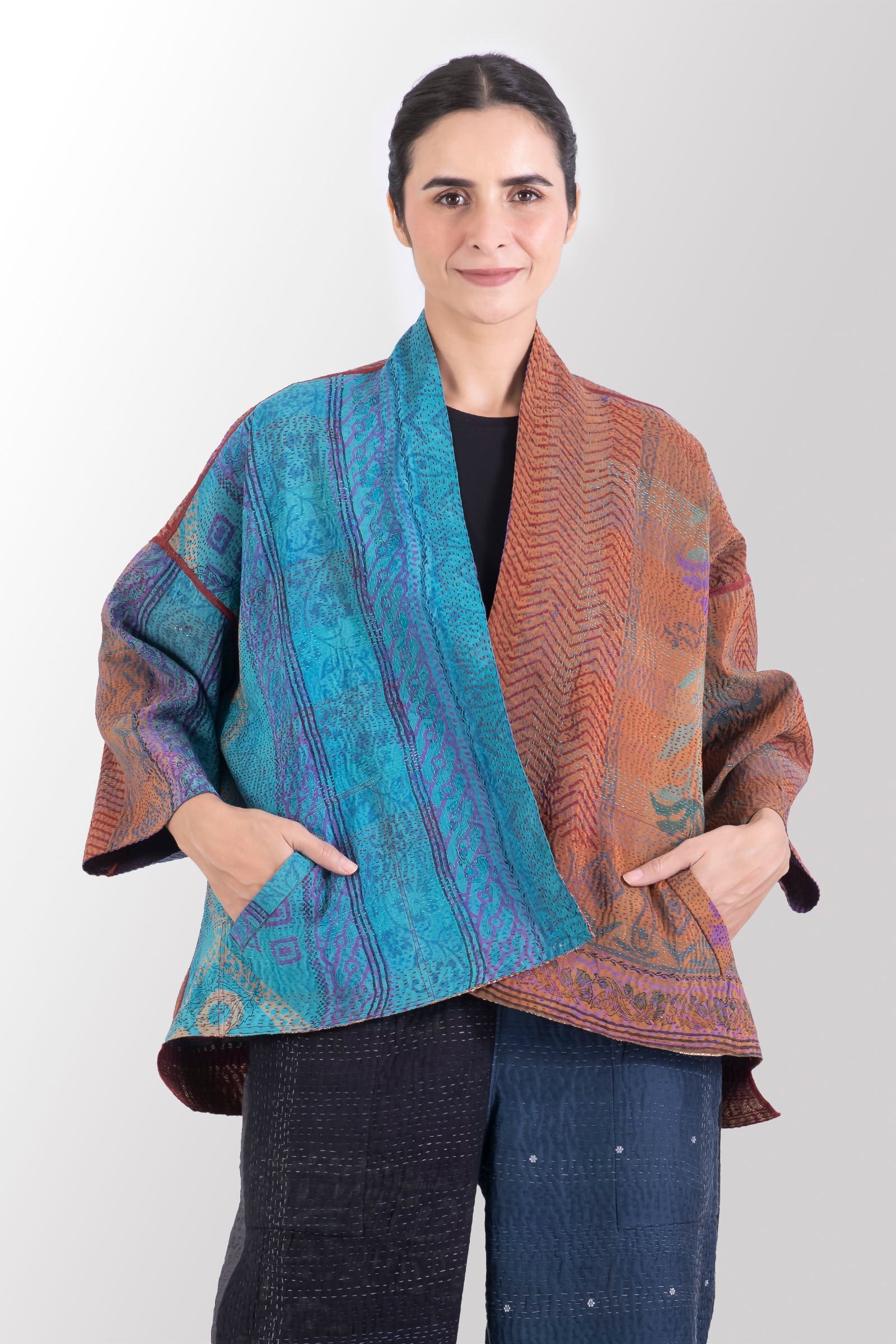 2 Layer Vintage Saris with Hand Stitches on Entire Garment - Reversible