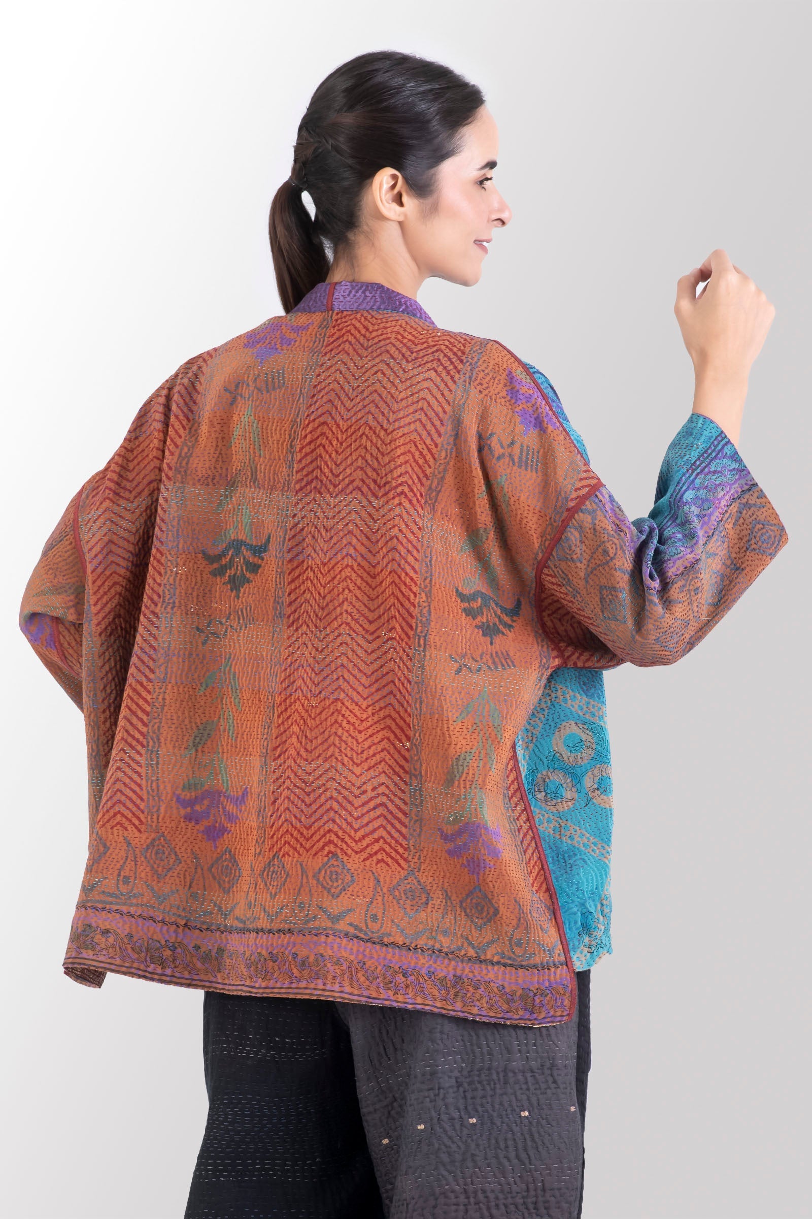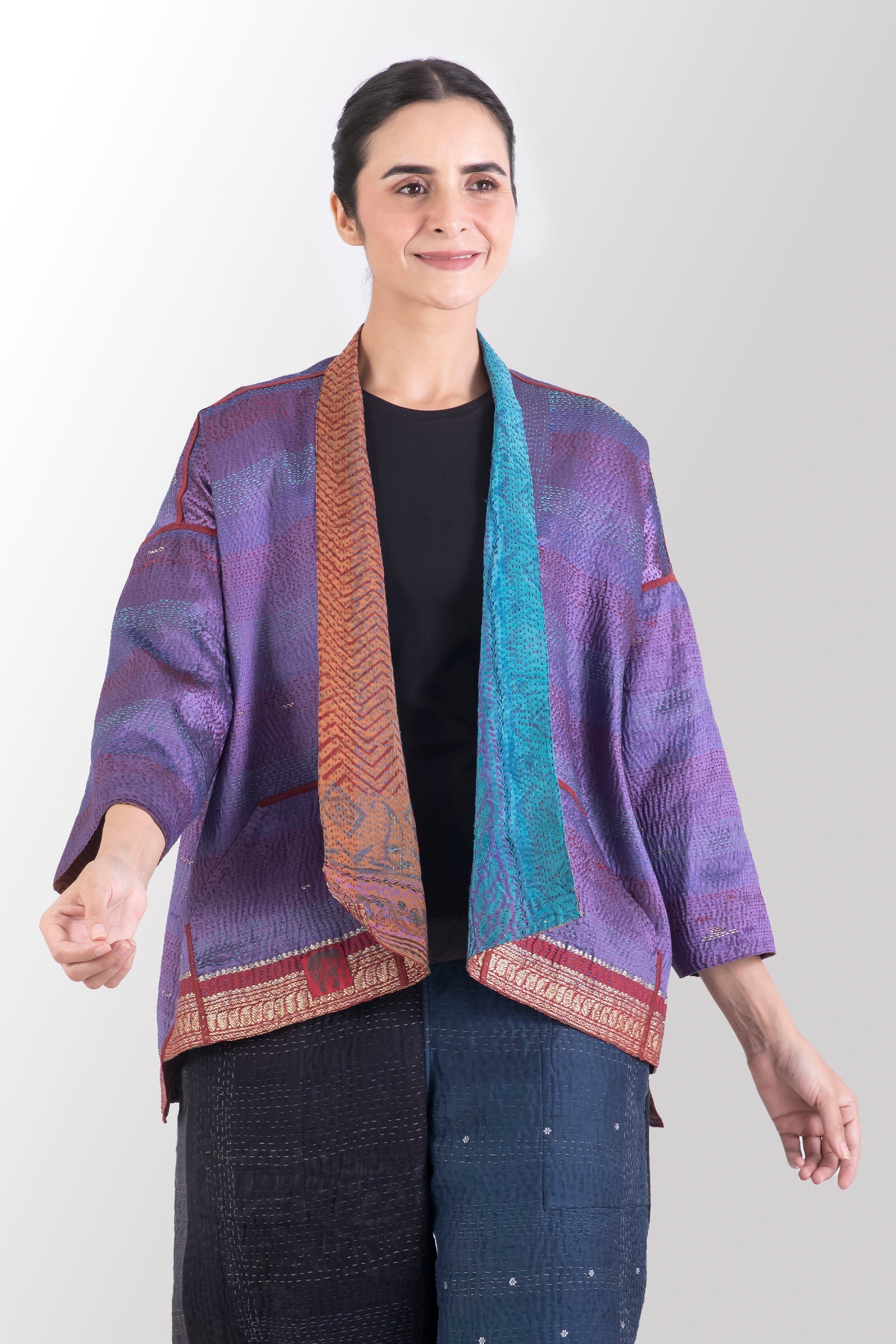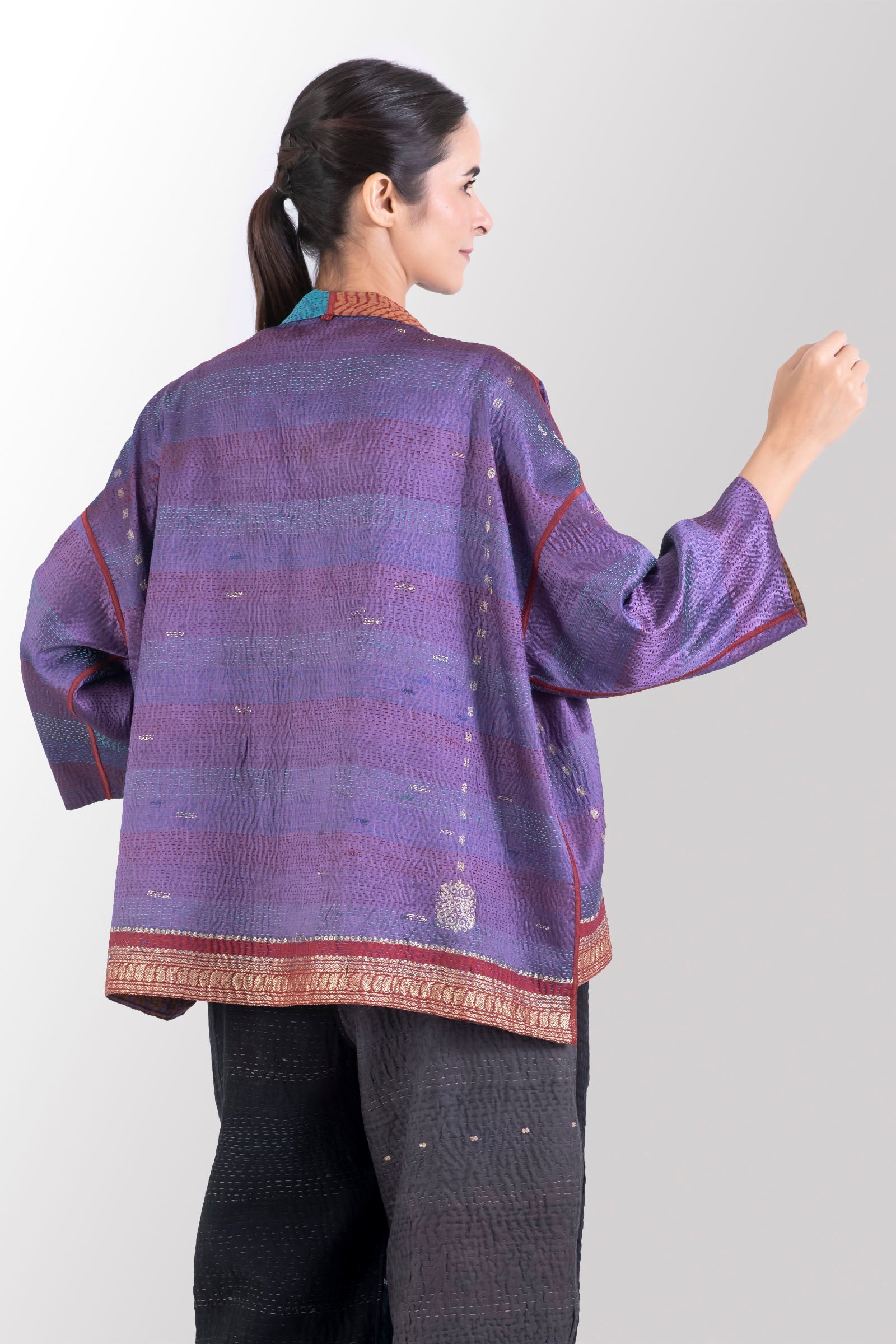 VINTAGE SILK GEORGETTE KANTHA MINI KIMONO JACKET - sg2055-0008a -