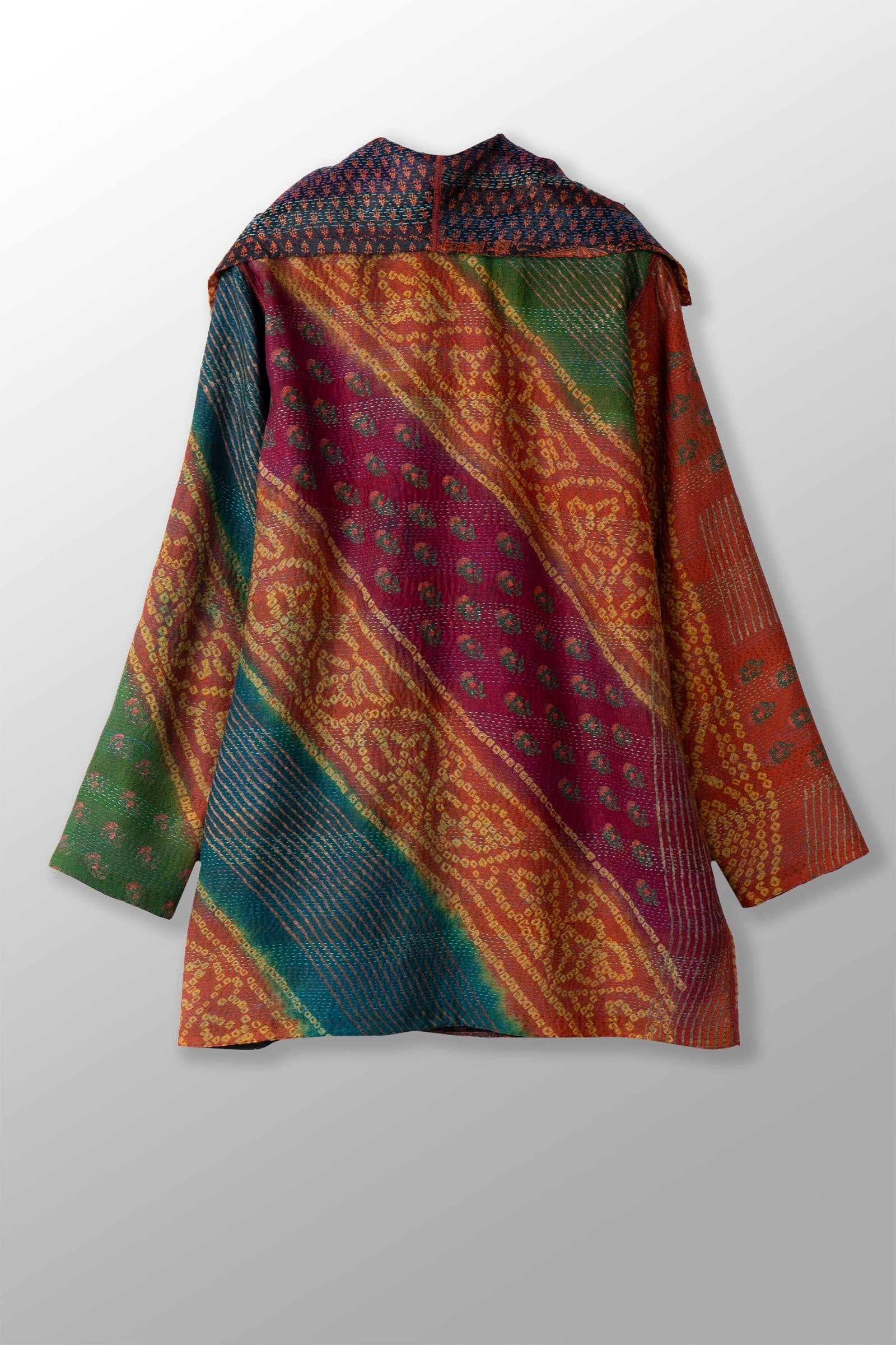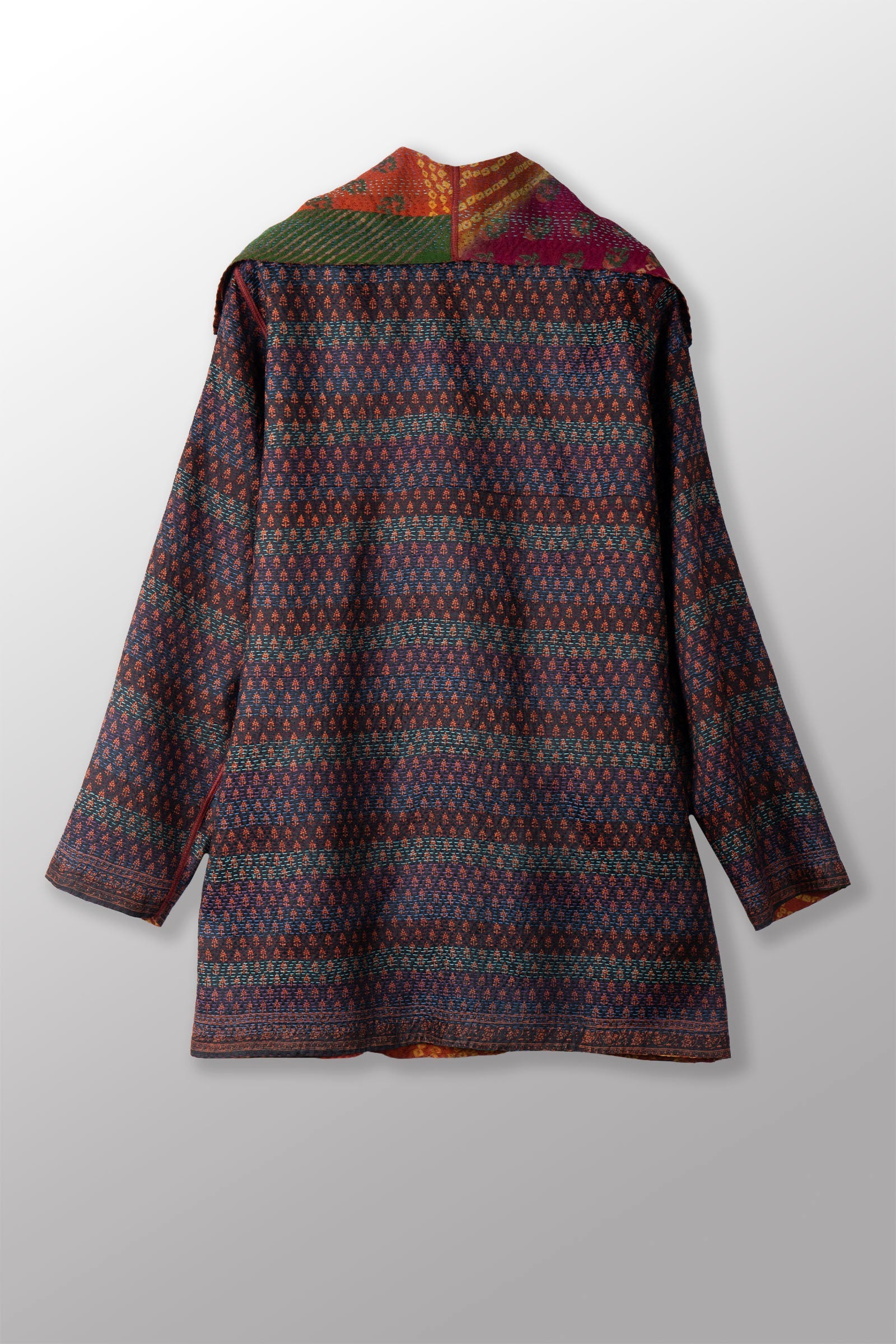 VINTAGE SILK GEORGETTE KANTHA POCKET JACKET - sg2002-0002a -