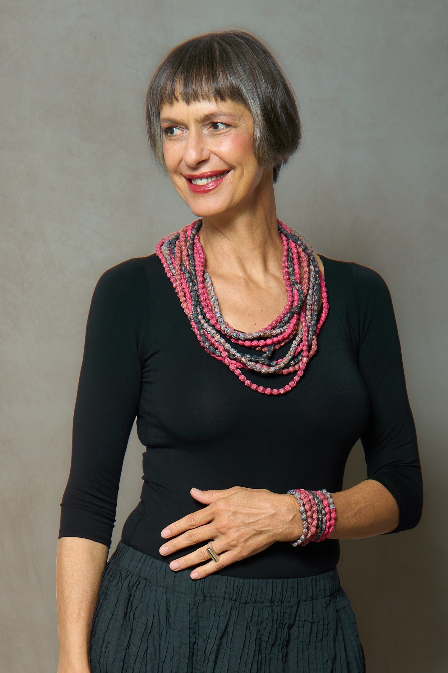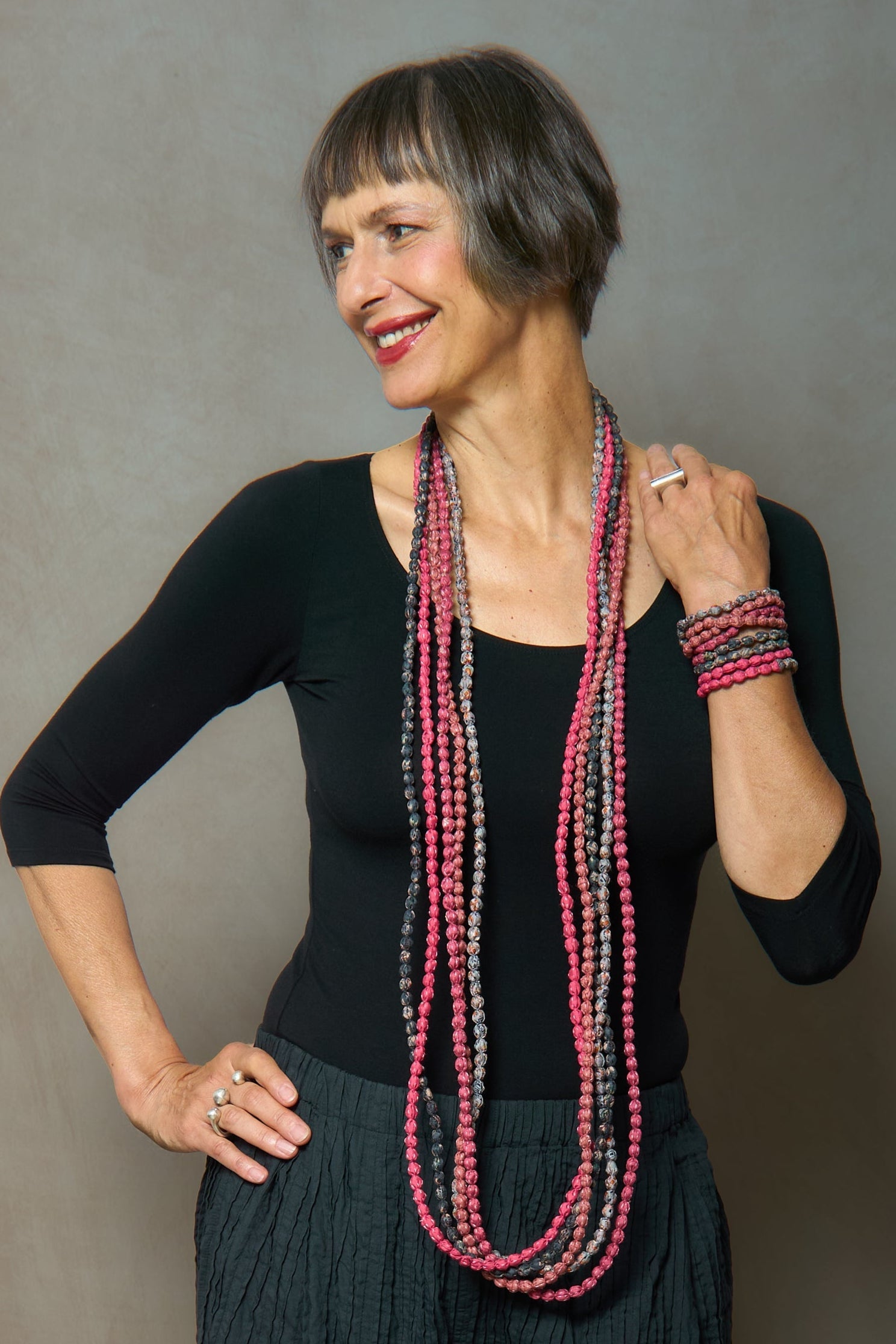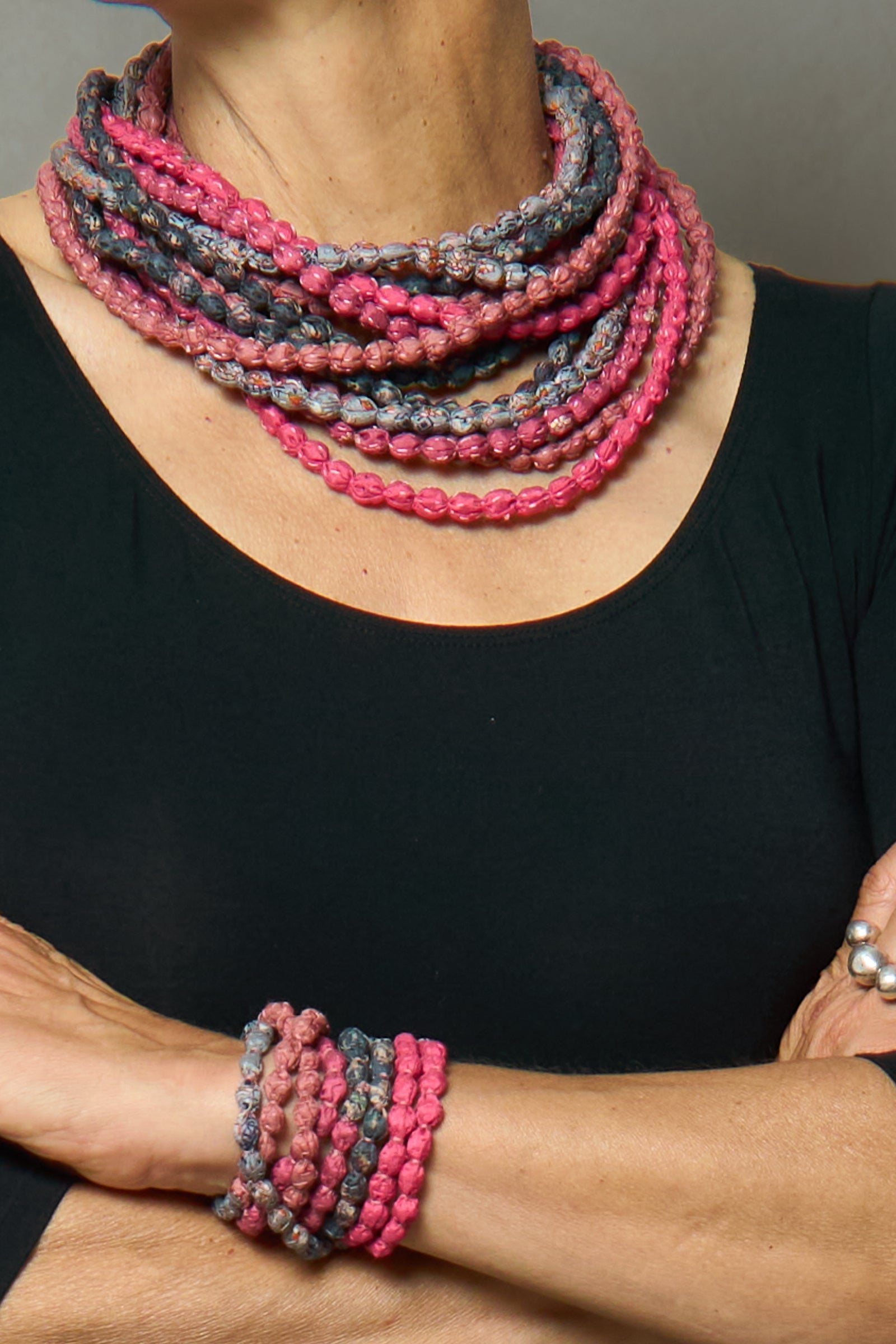 VINTAGE SILK KANTHA 5 STRAND NECKLACE - sv2730-pik -