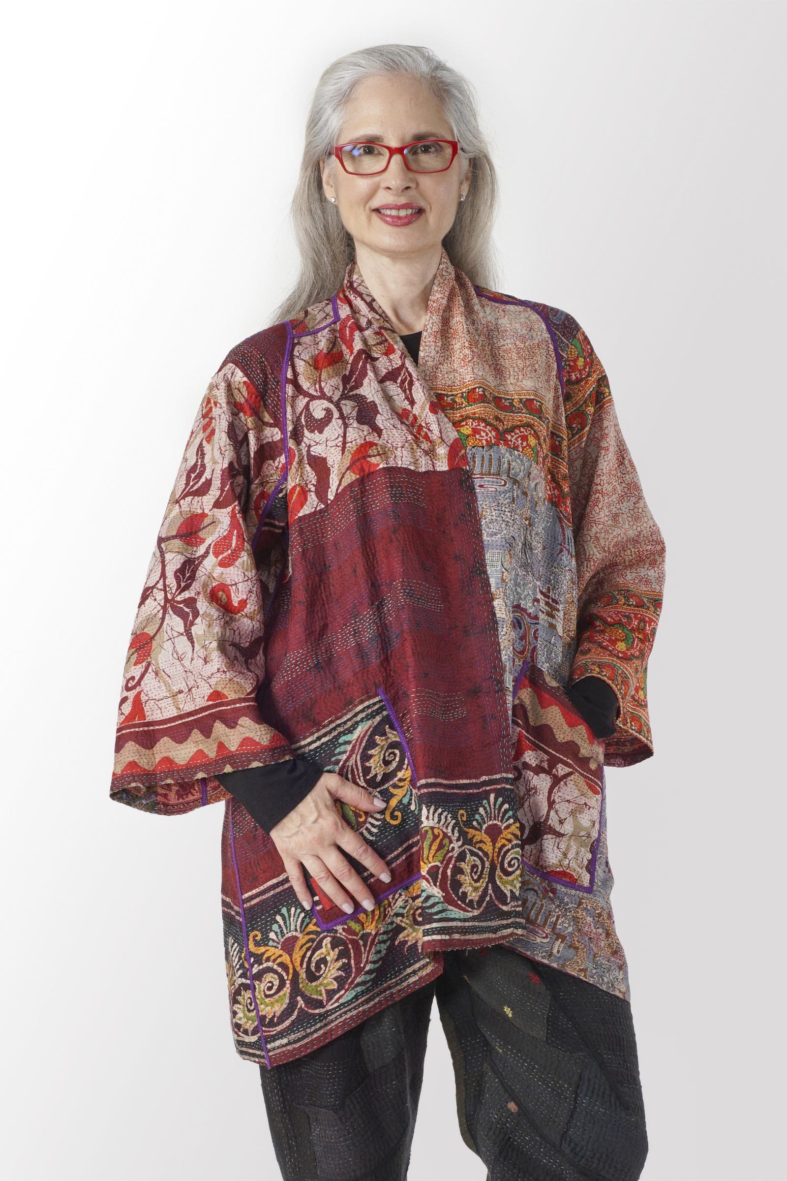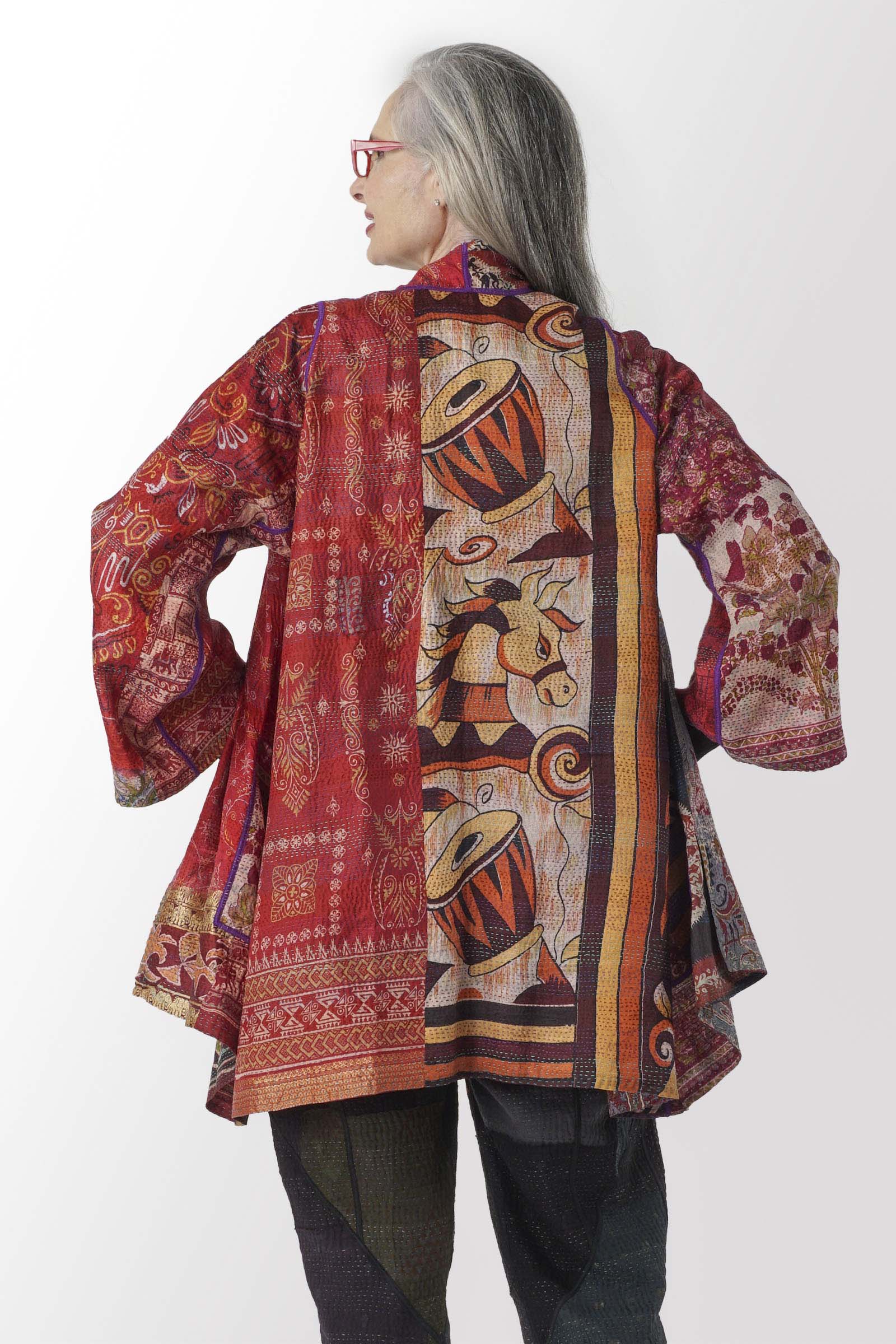 VINTAGE SILK KANTHA A-LINE JKT - sv2003-0359a -