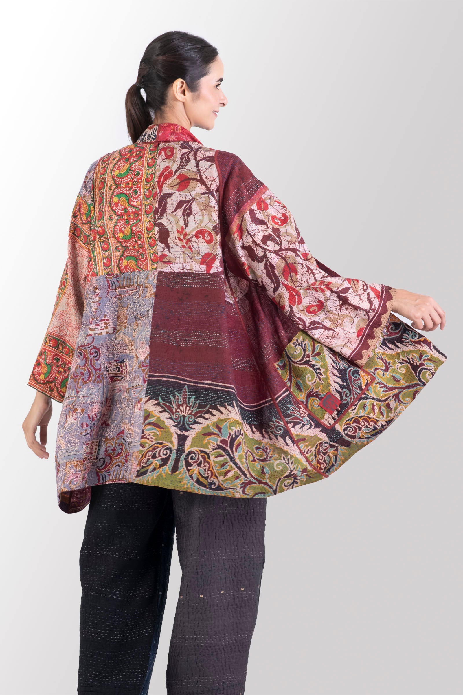 VINTAGE SILK KANTHA A-LINE JKT - sv2003-0365a -
