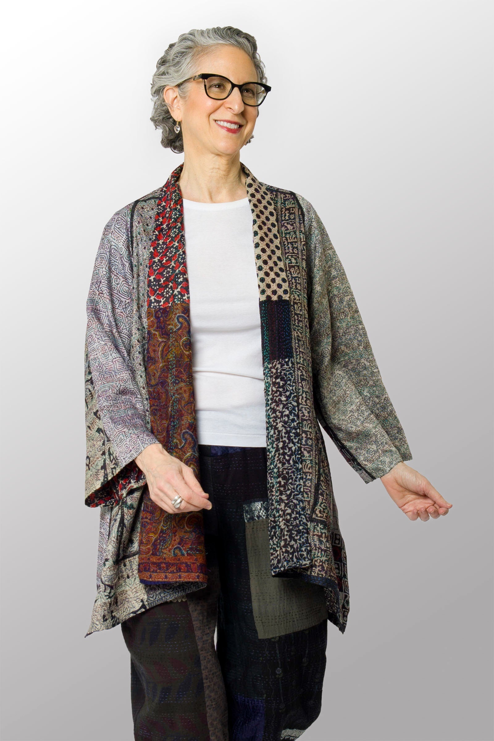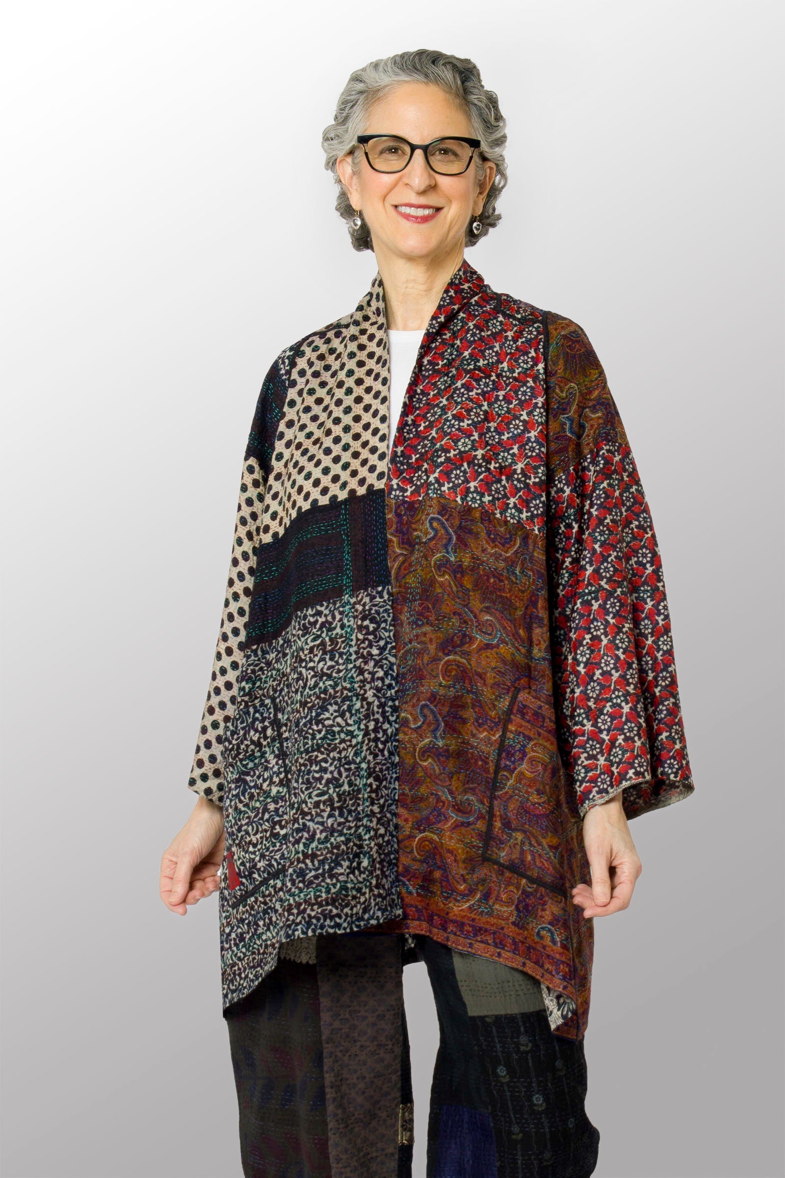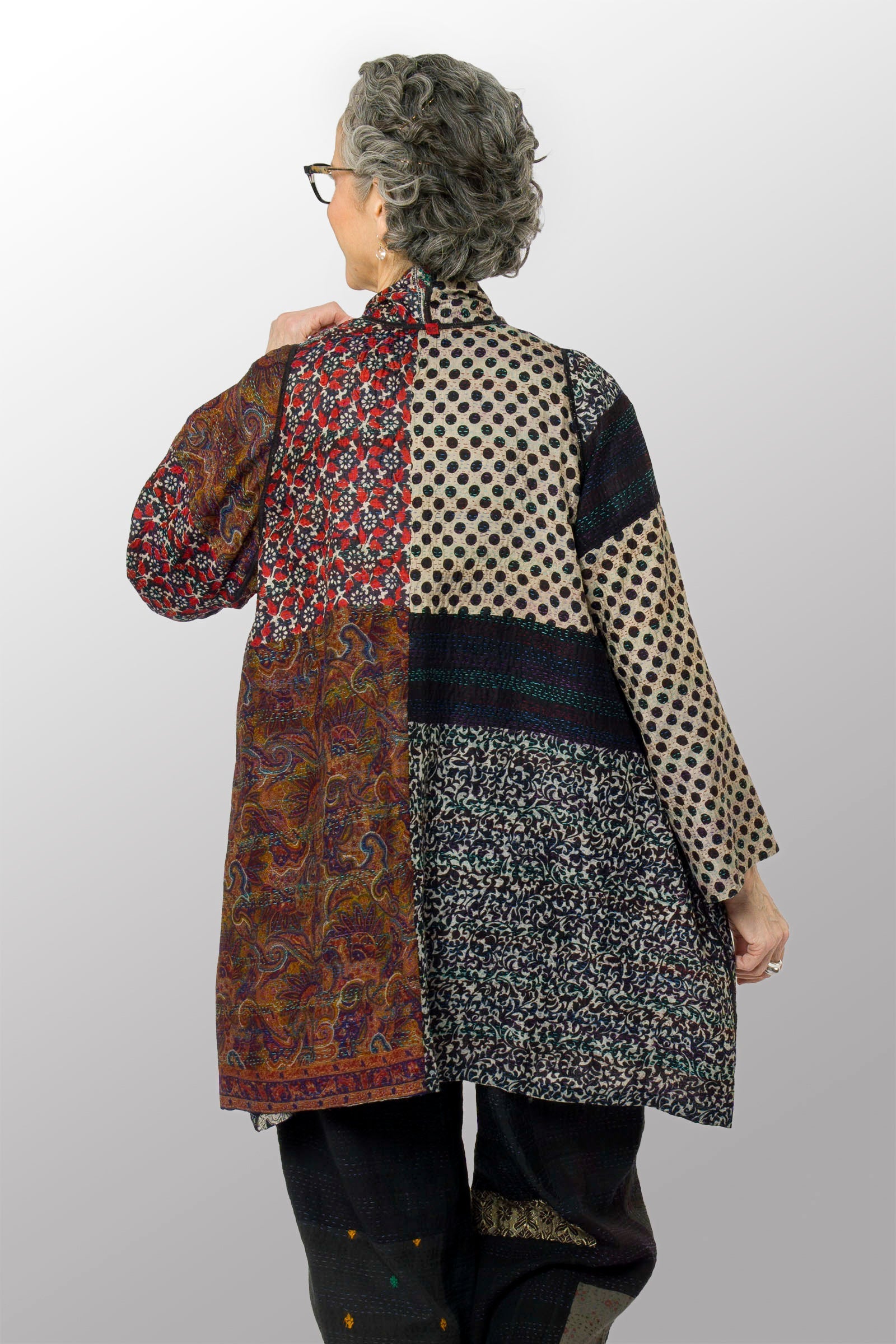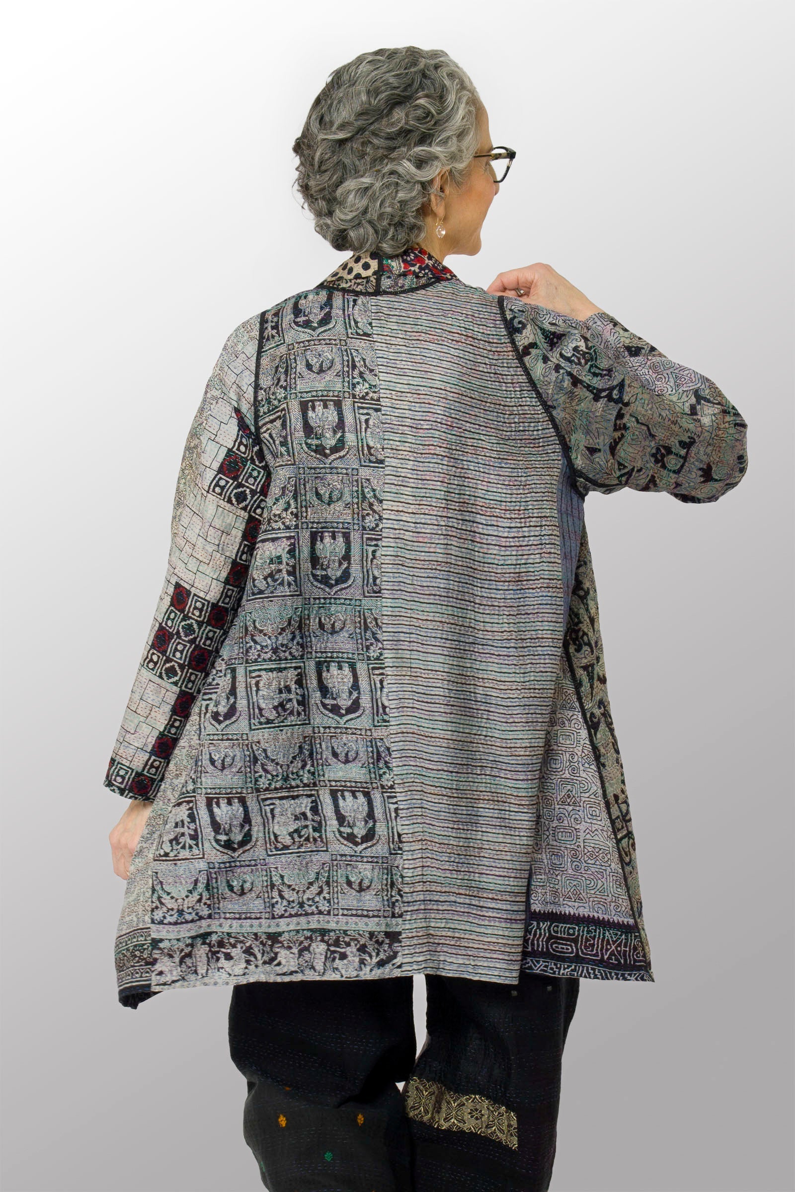 VINTAGE SILK KANTHA A-LINE JKT - sv2003-0390a -