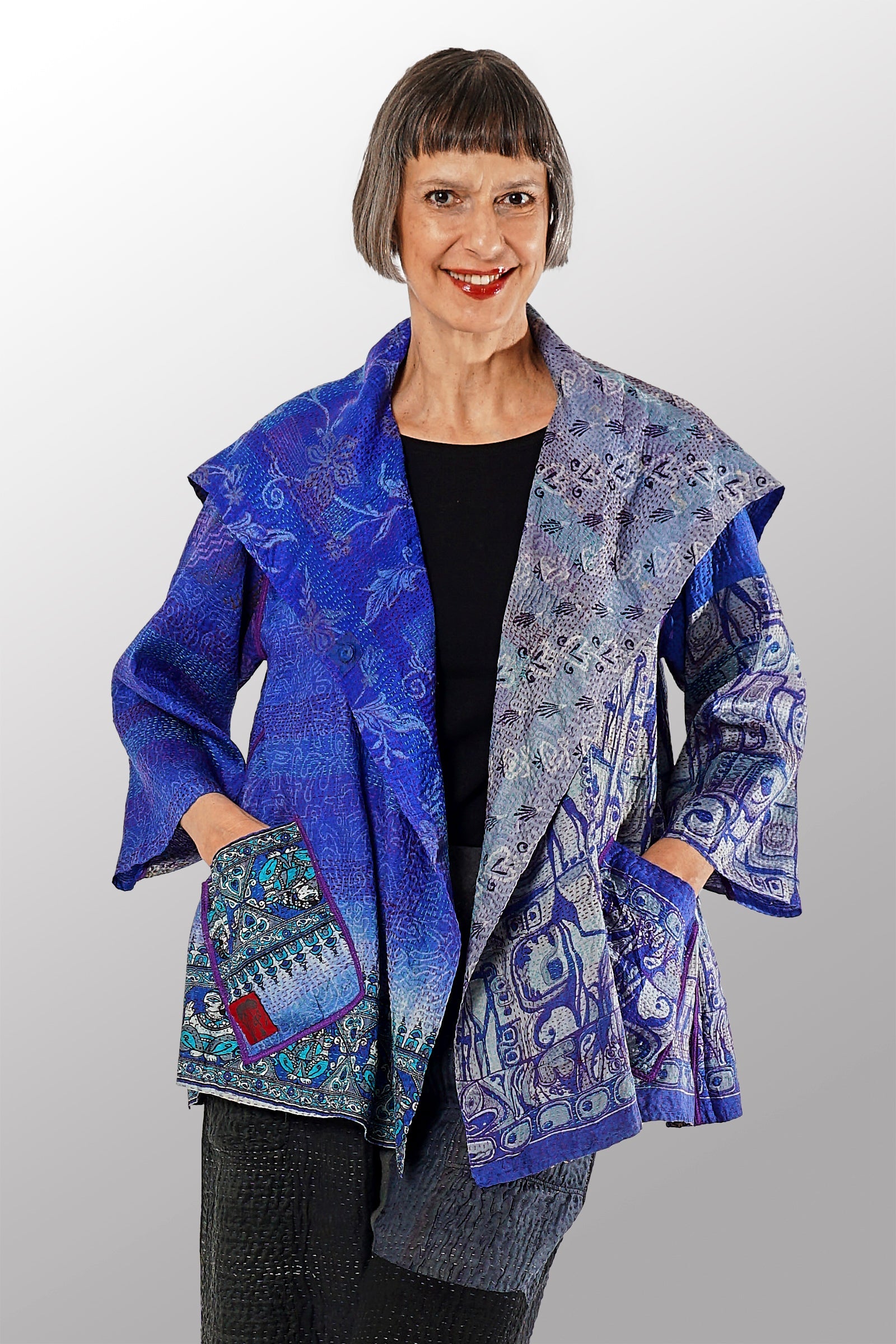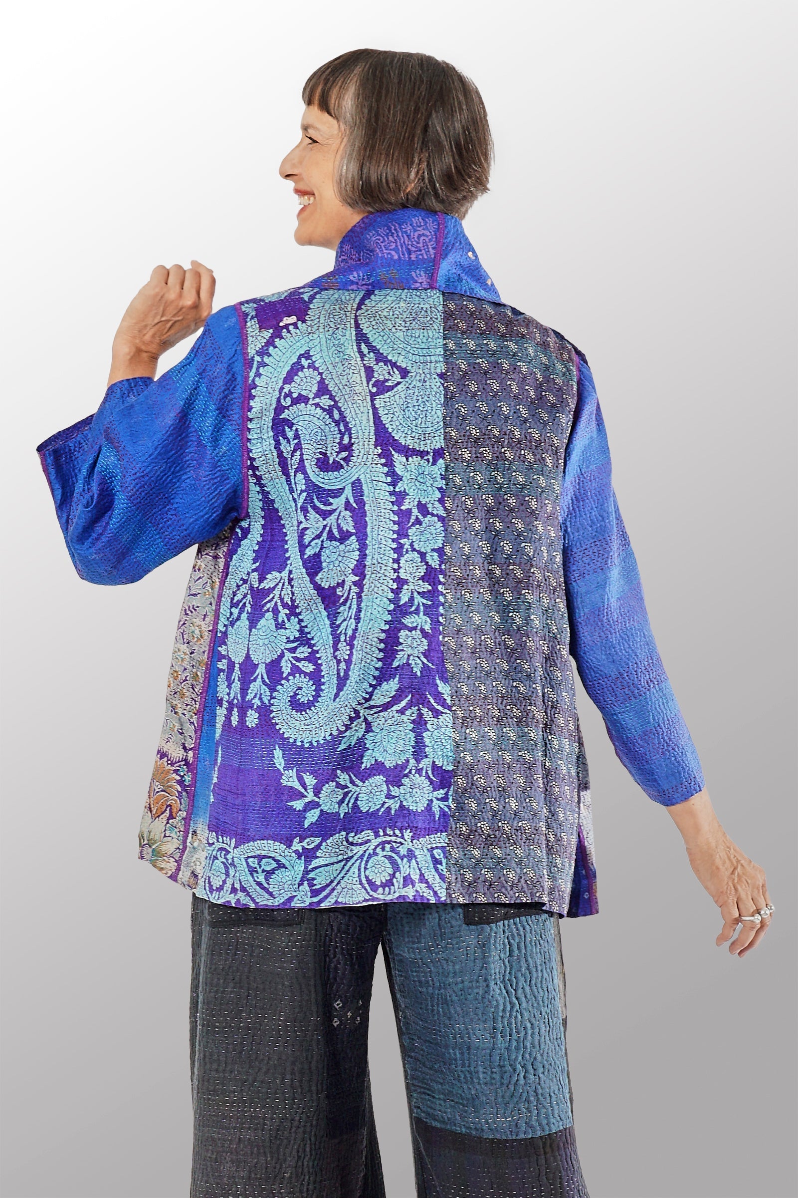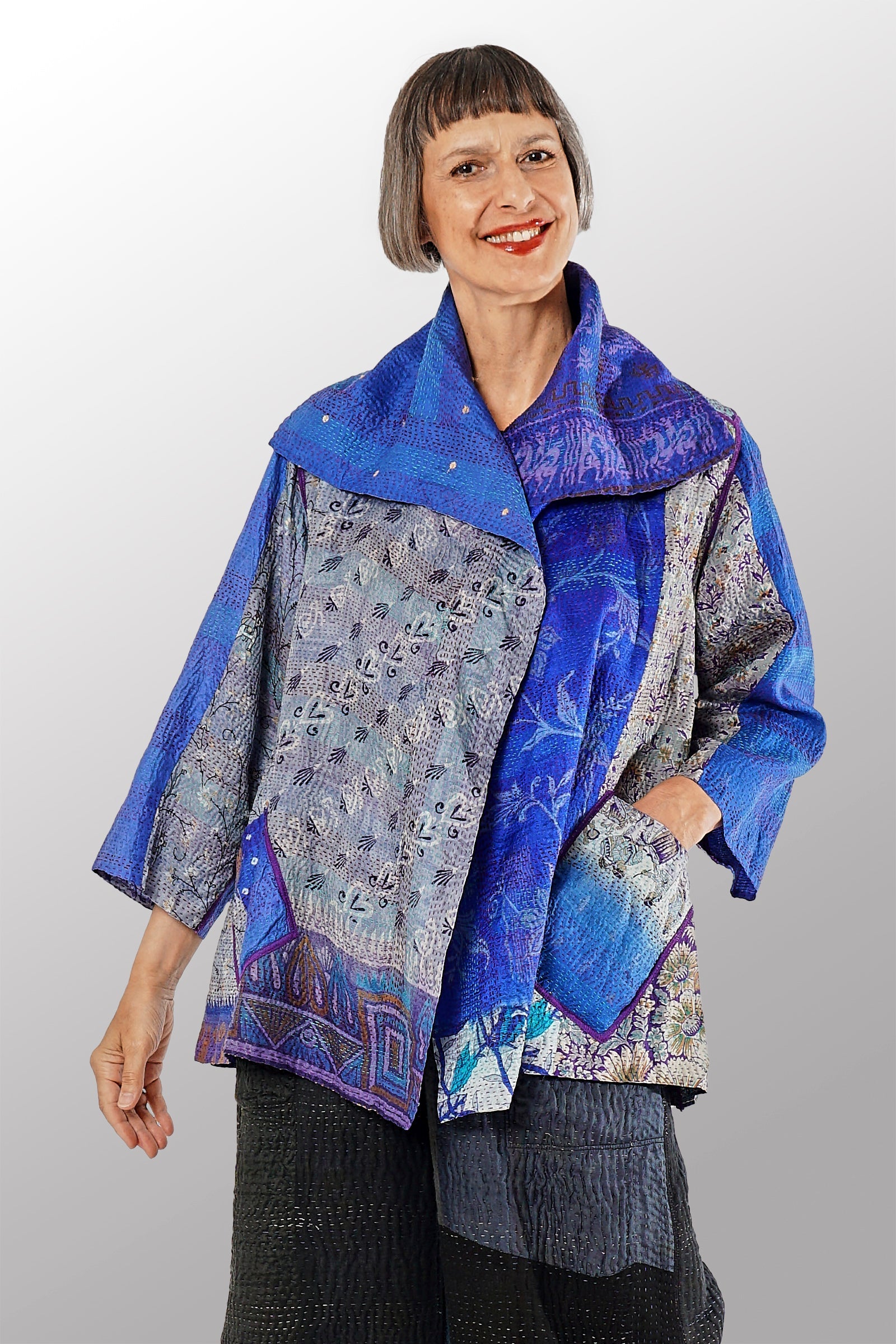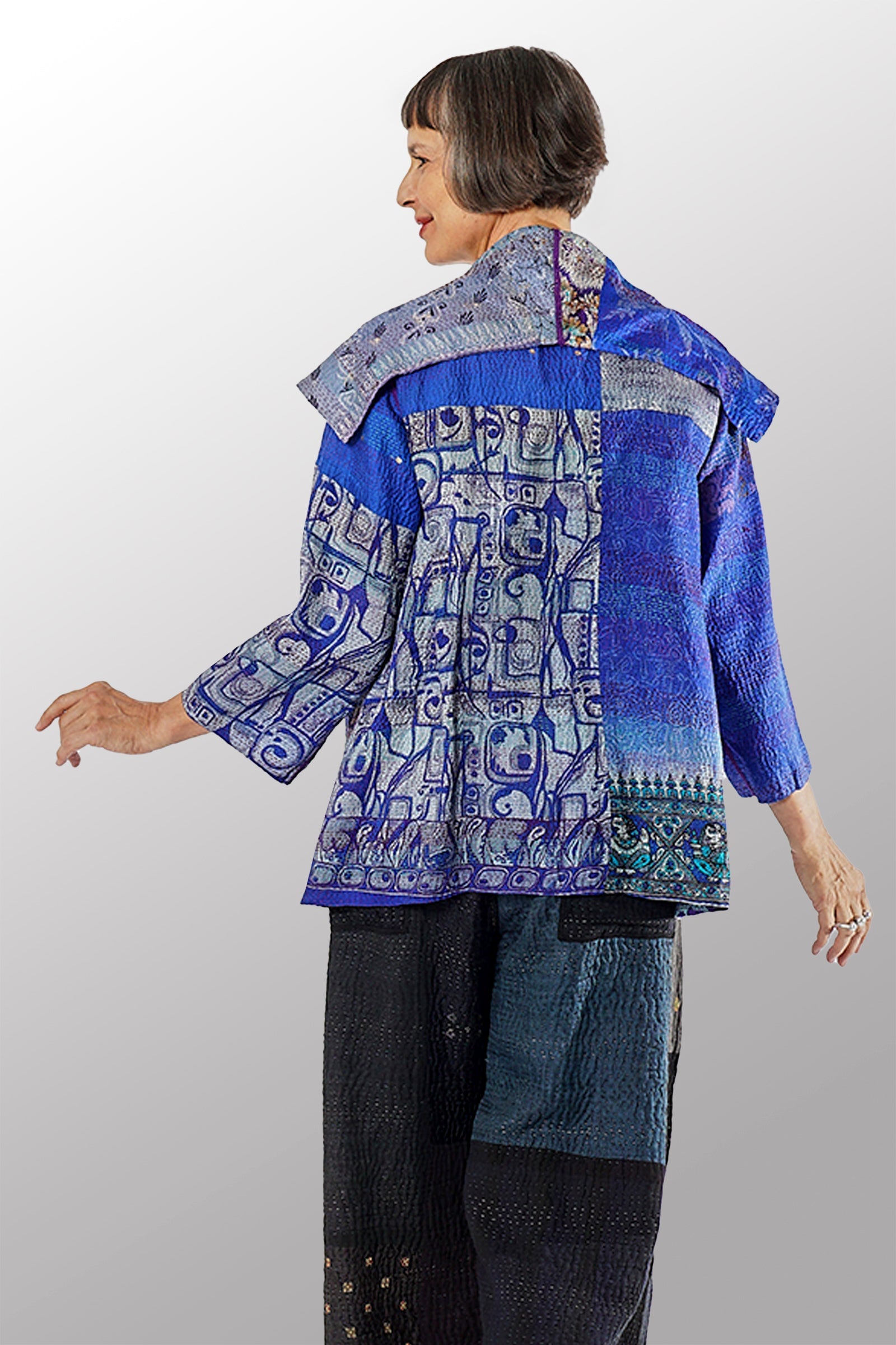 VINTAGE SILK KANTHA FLARE JKT - sv2010-0056a -