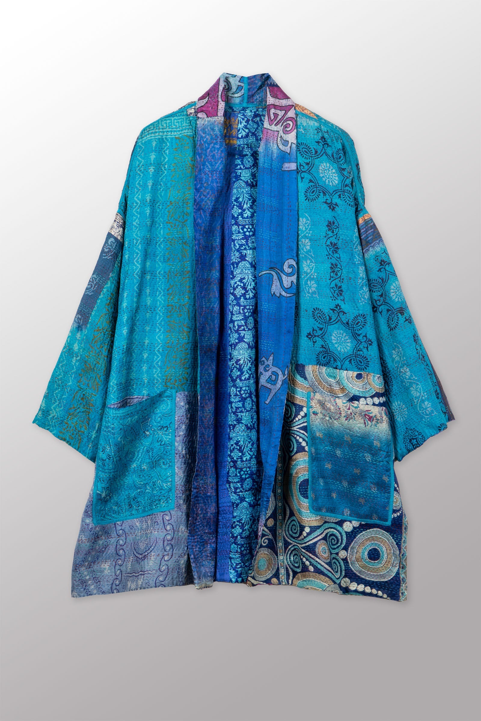 VINTAGE SILK KANTHA HAORI JACKET - sv2068-0005a -