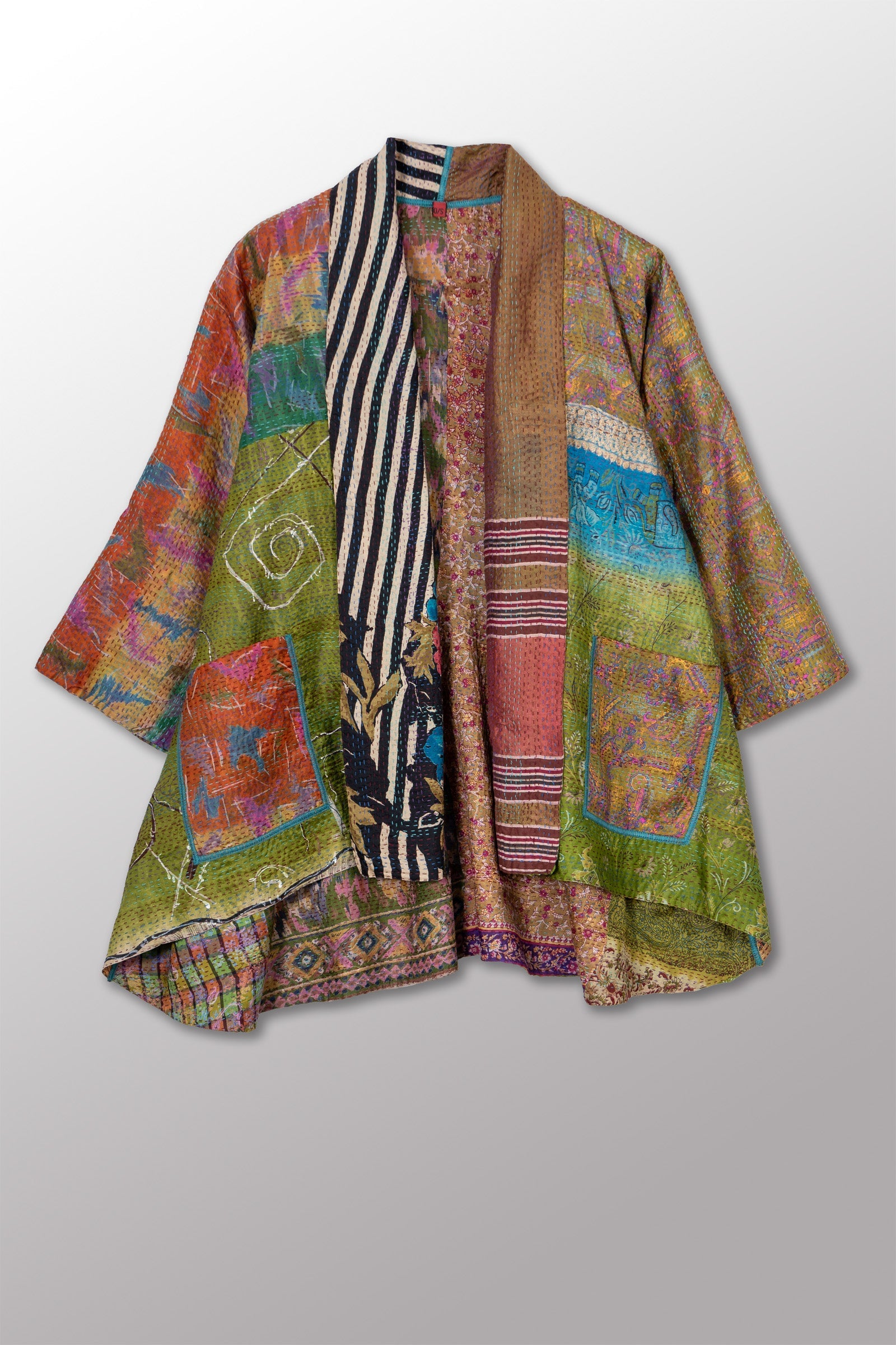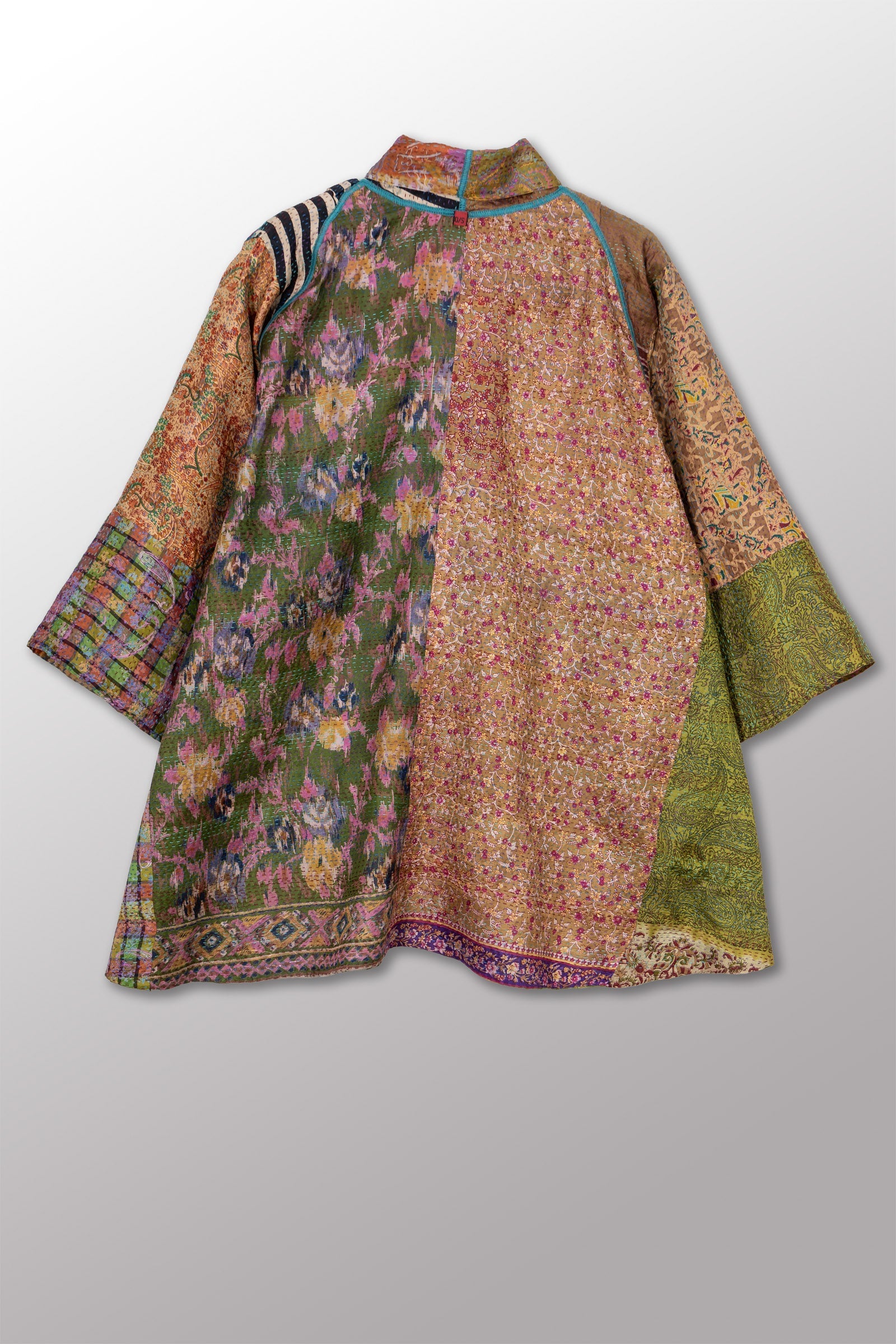 2 Layer Vintage Saris with Hand Stitches on Entire Garment - Reversible