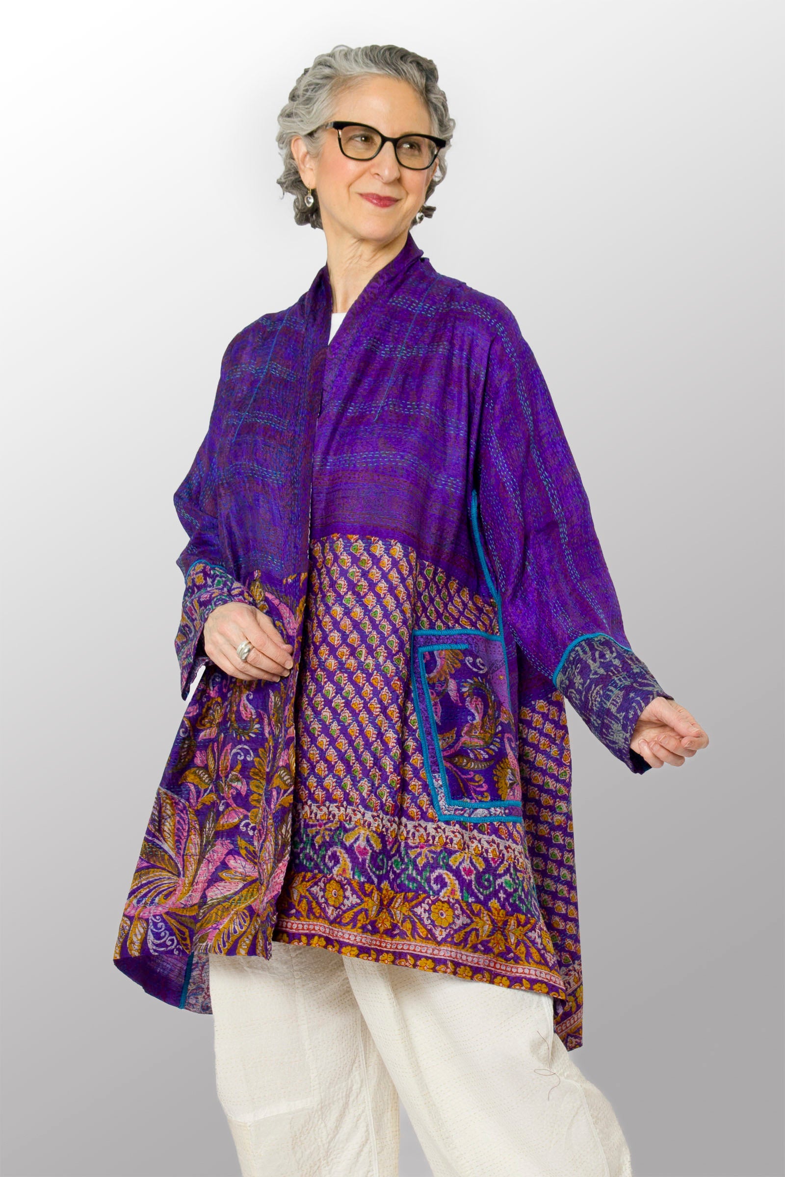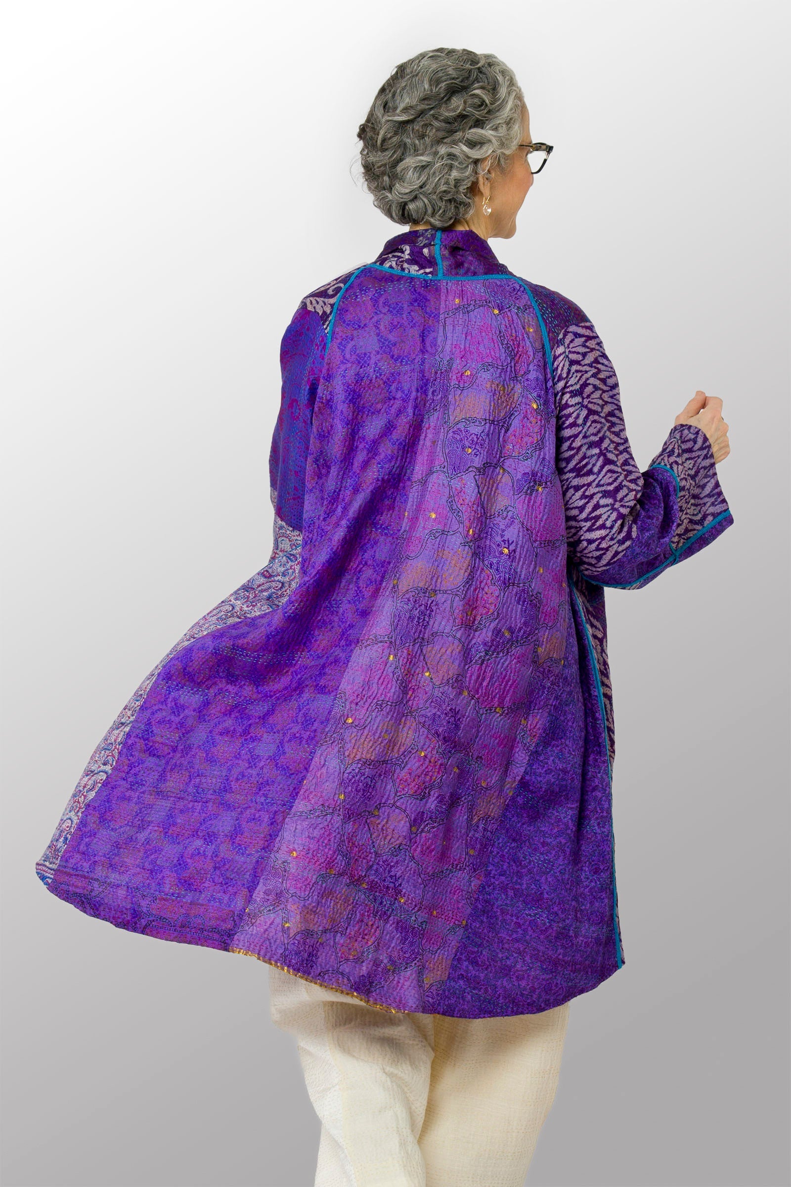 2 Layer Vintage Saris with Hand Stitches on Entire Garment