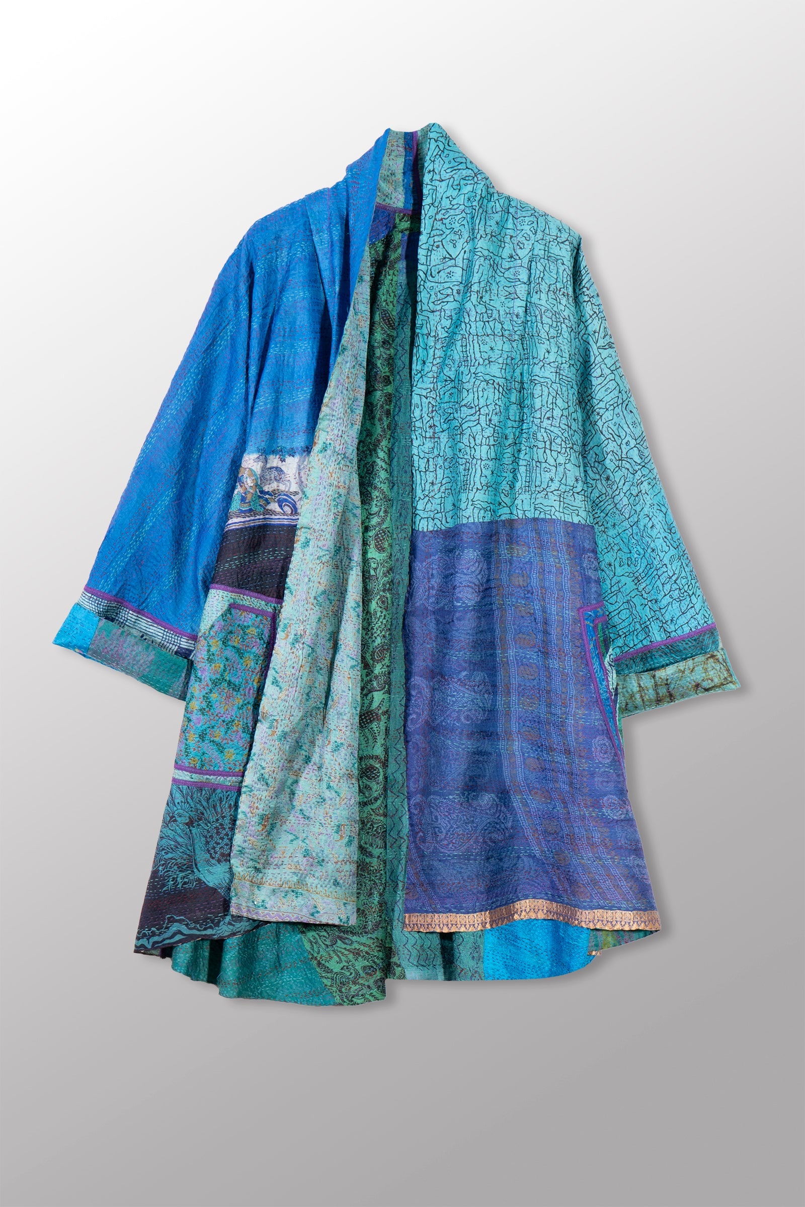 VINTAGE SILK KANTHA KIMONO LONG JKT - sv2005-0080a -