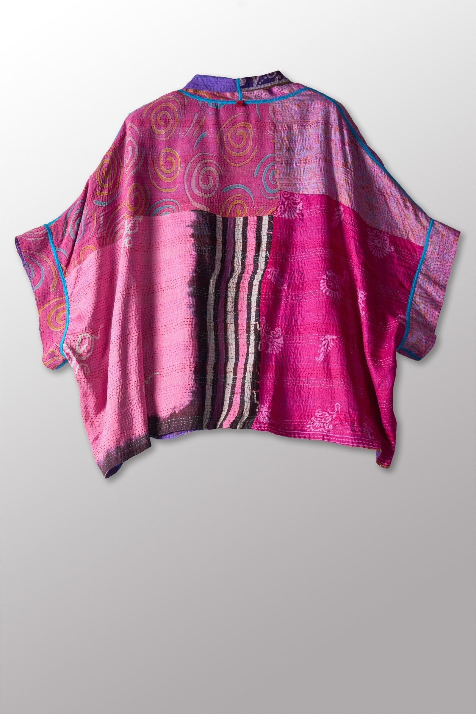 VINTAGE SILK KANTHA MINI PONCHO - sv2060-0007a -