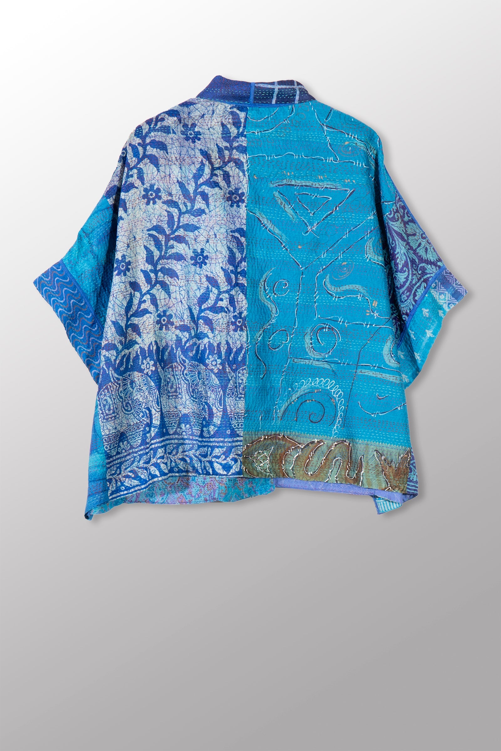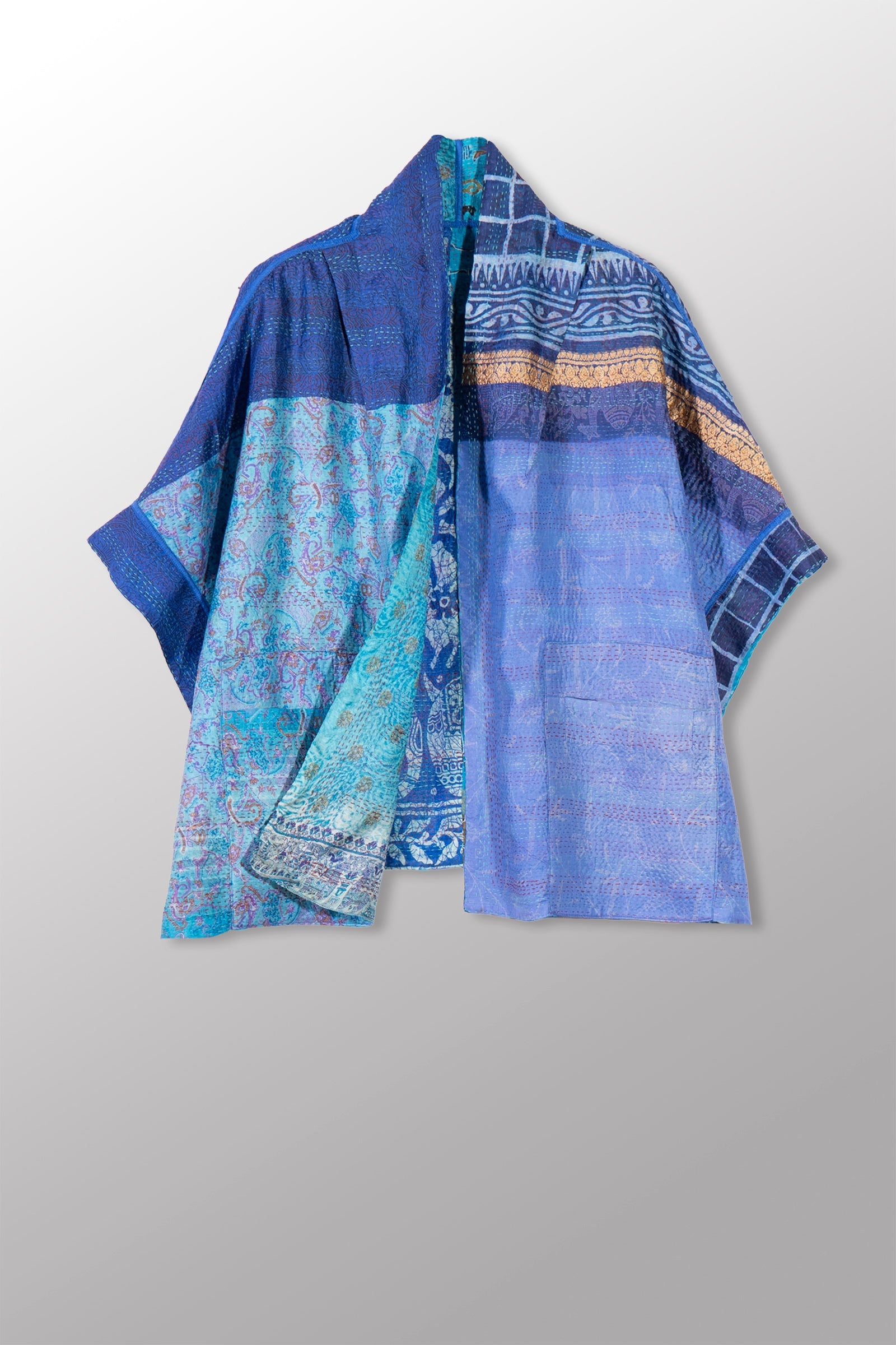 VINTAGE SILK KANTHA MINI PONCHO - sv2060-0010a -