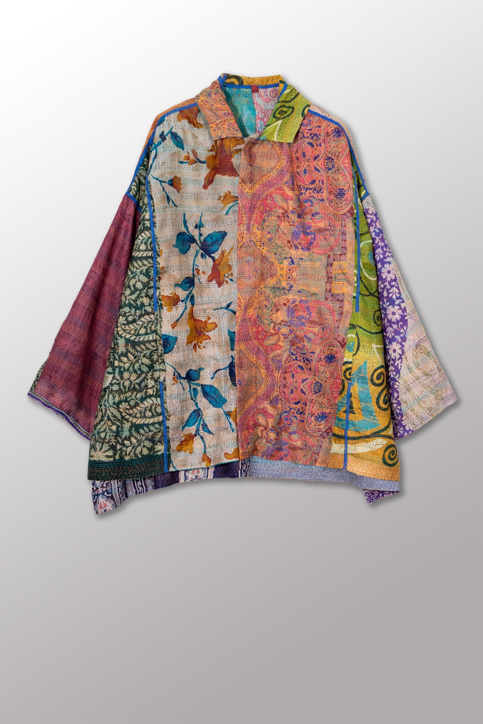VINTAGE SILK KANTHA OVERSIZED MINI COAT - sv2332-0010a -