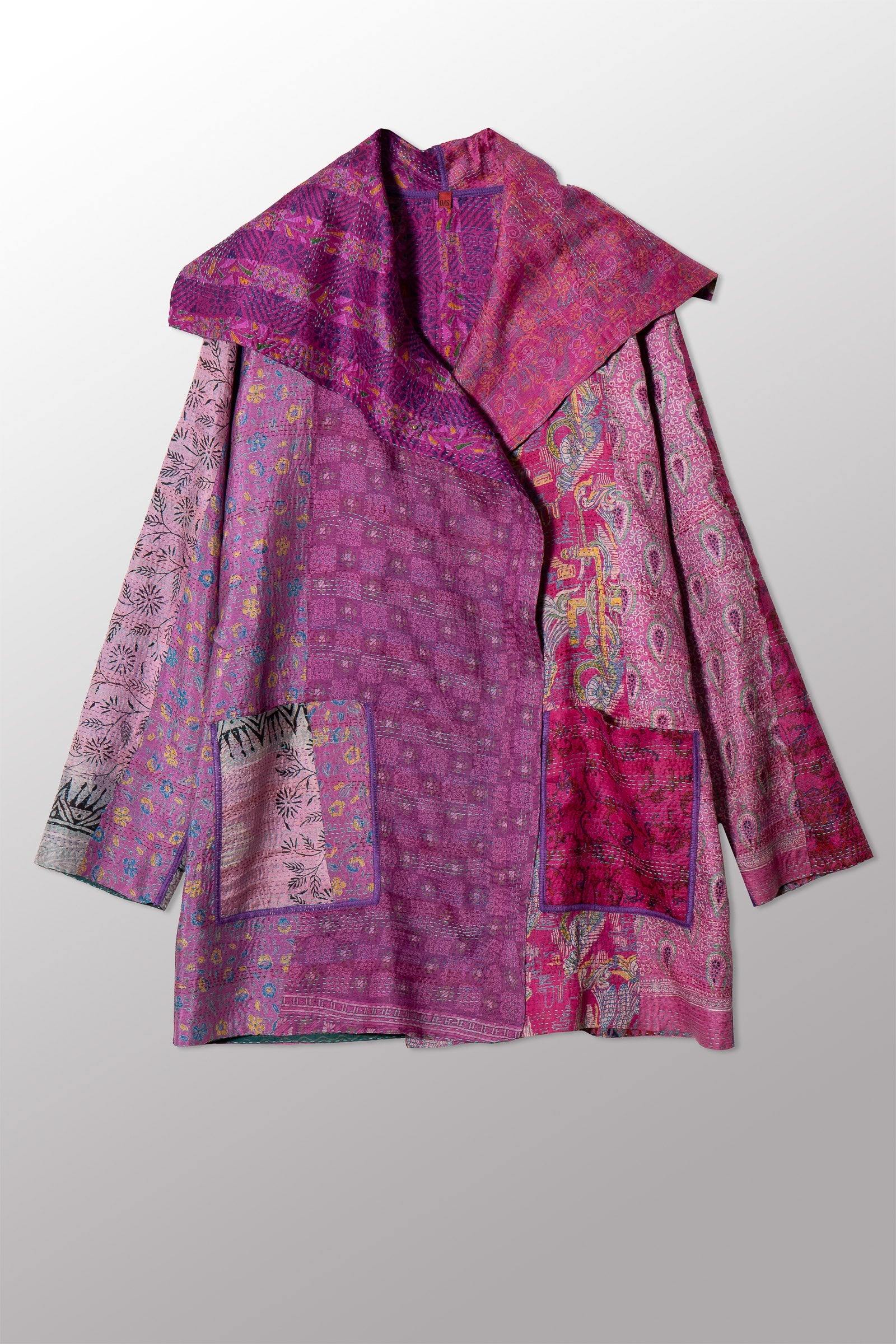 VINTAGE SILK KANTHA POCKET JKT - sv2002-0070a -