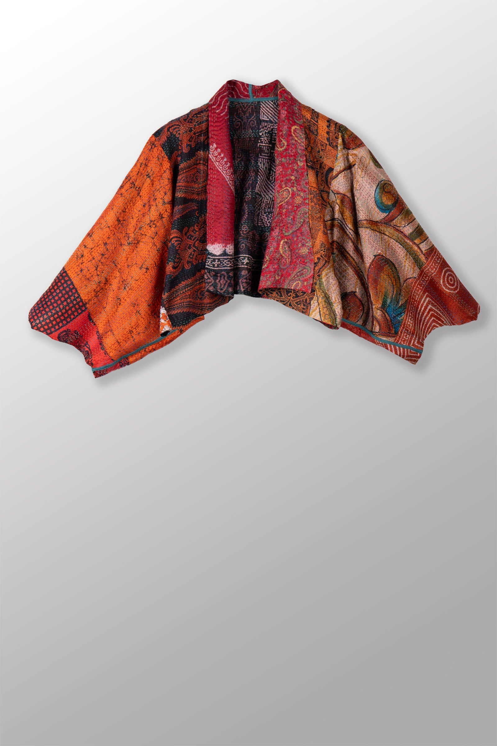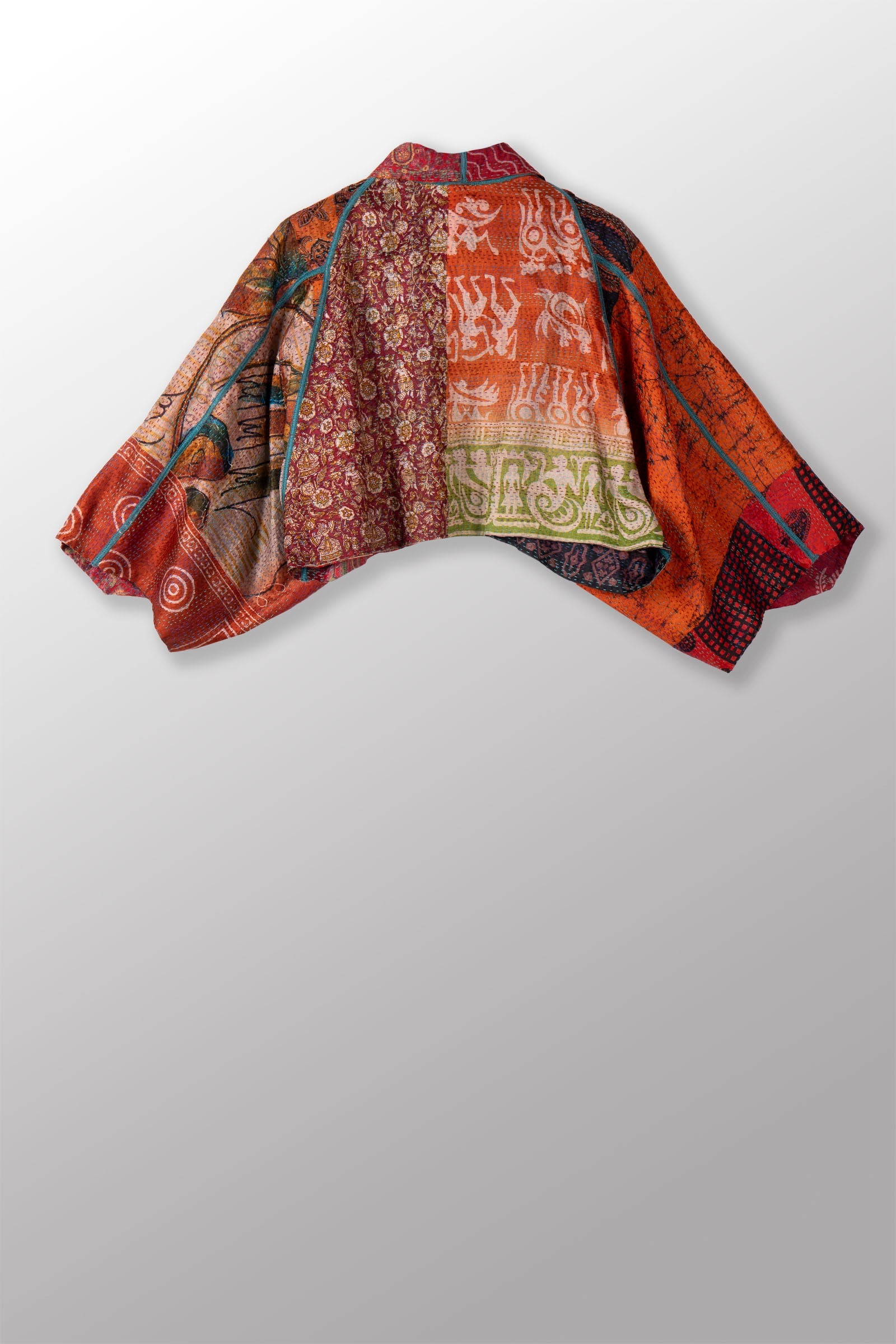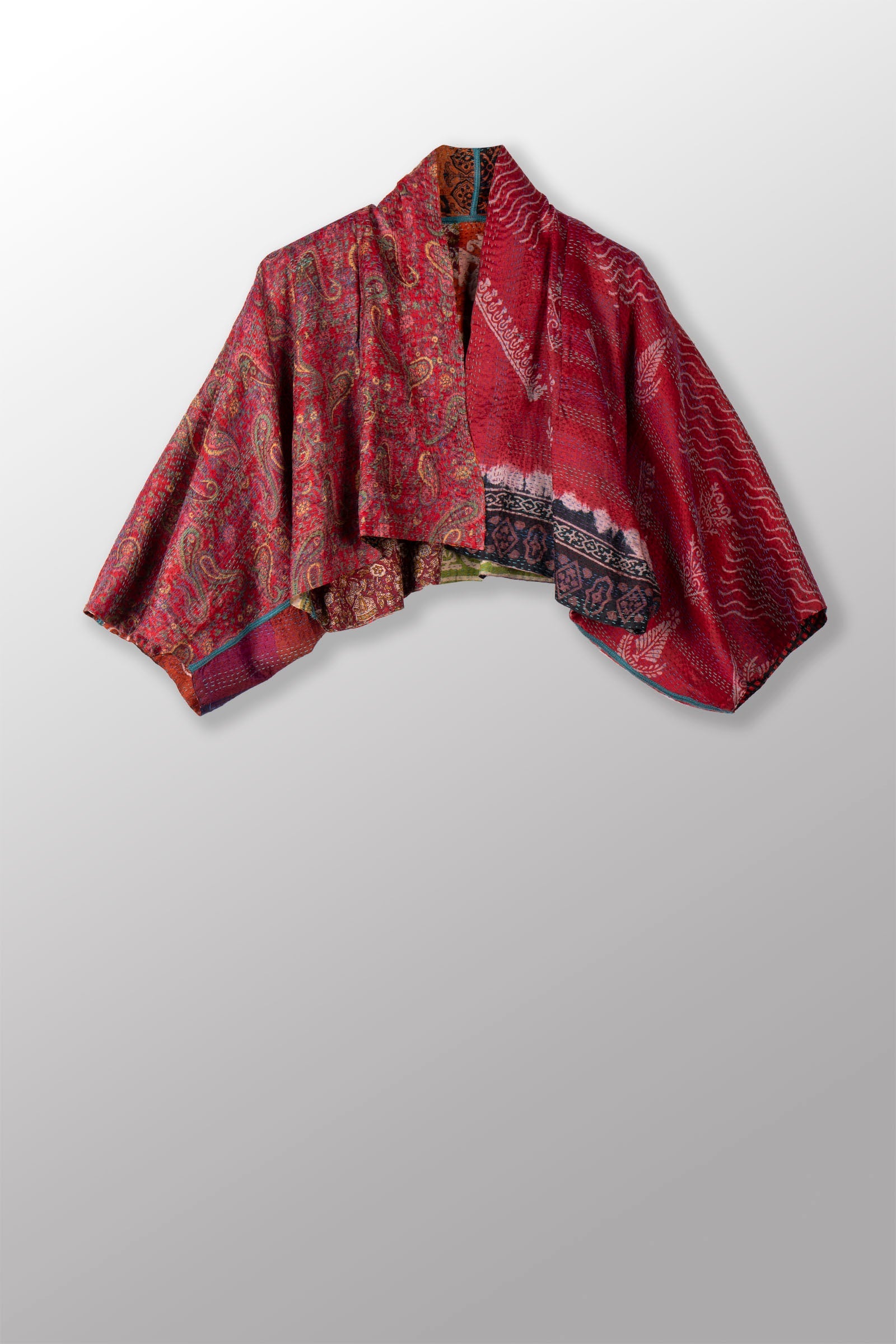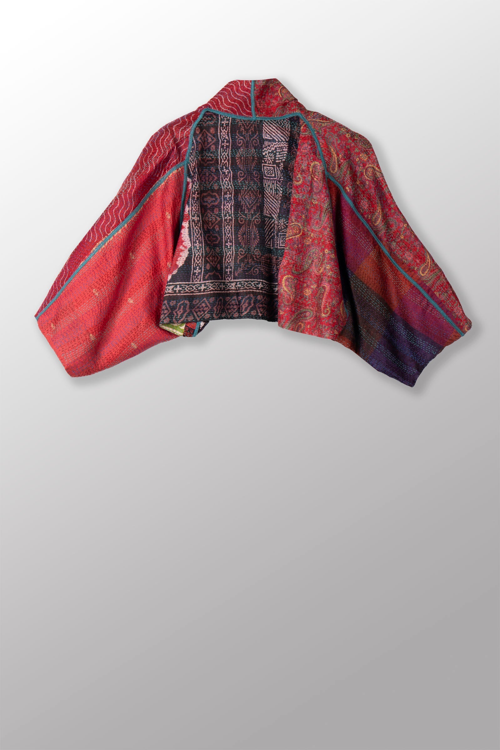 VINTAGE SILK KANTHA PUFF SLV. SHRUG - sv2062-0006a -